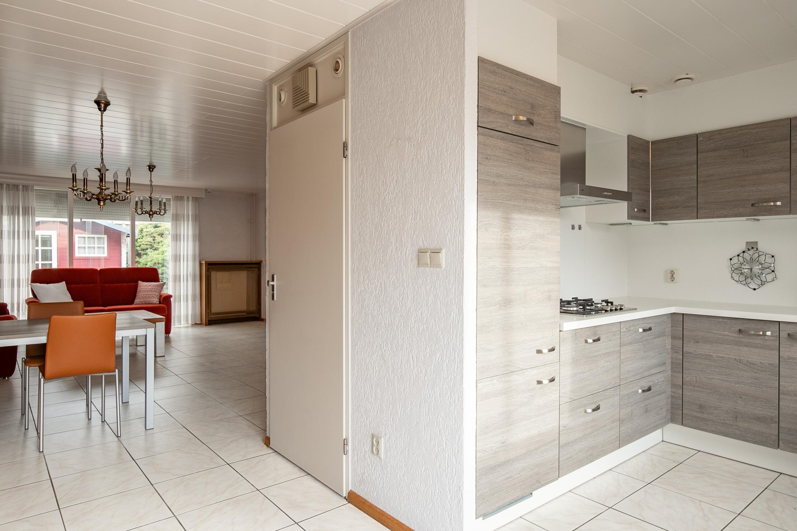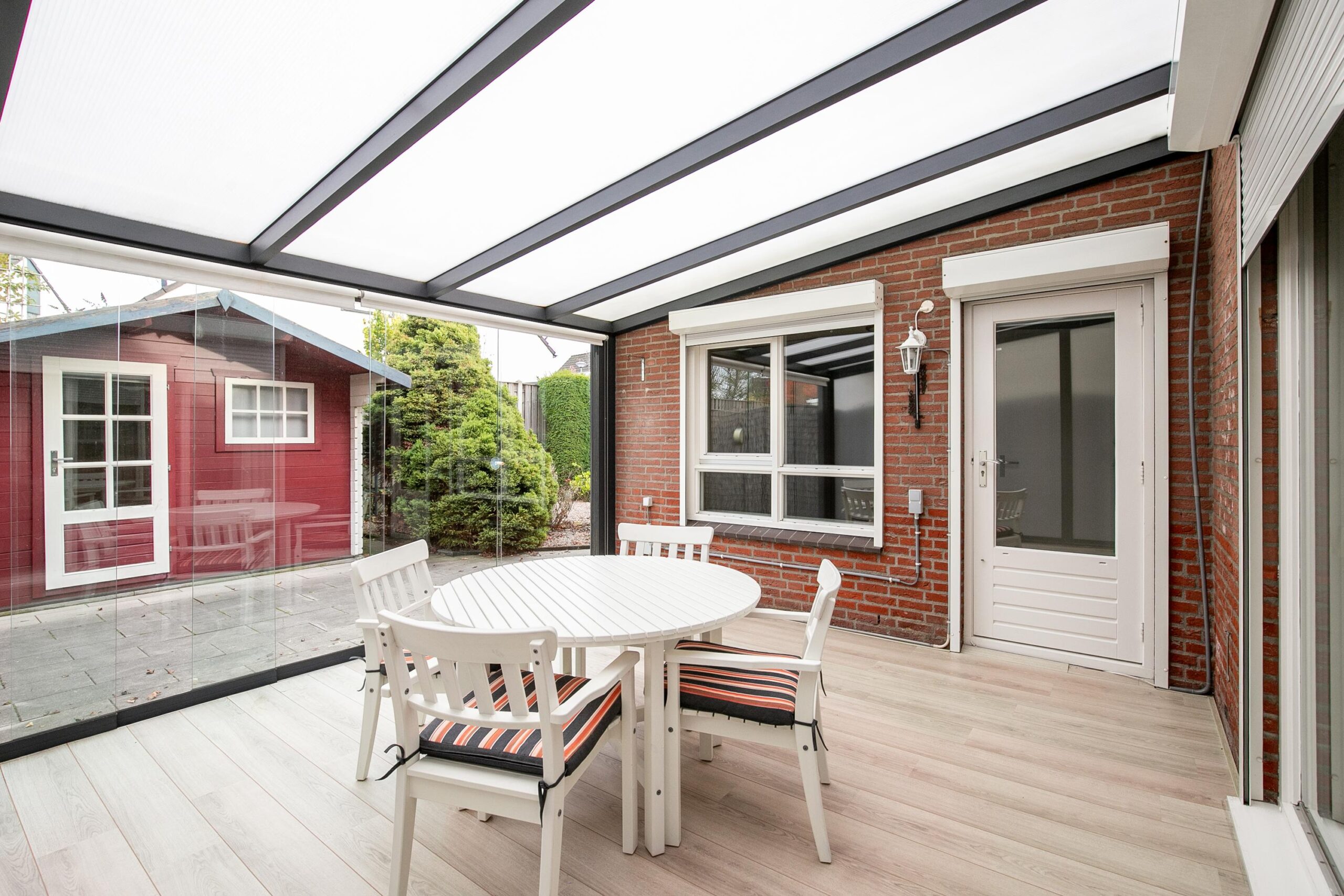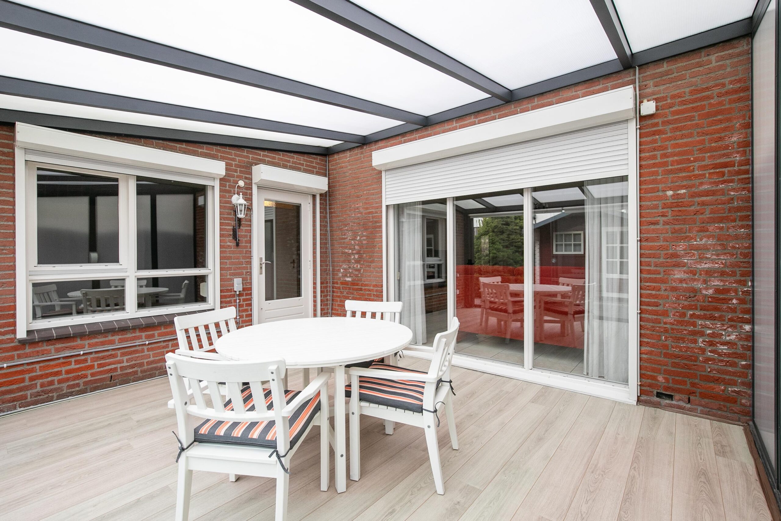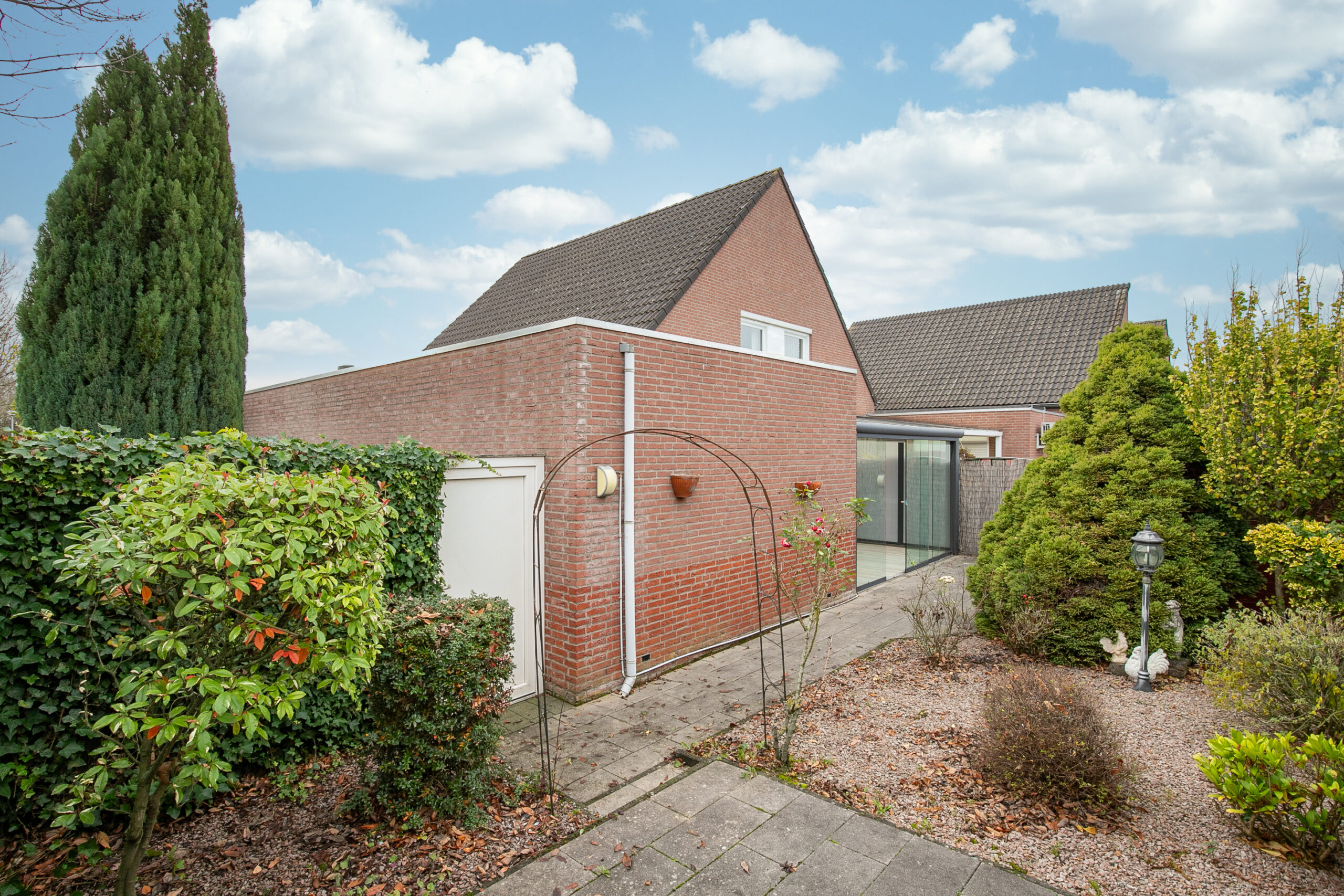 Voortuin met oprit. Entree/hal met tegelvloer, meterkast en half betegelde toiletruimte met toilet en fonteintje. Woonkamer met tegelvloer, schoon metselwerk/behang, trapkast en grote raampartij richting de tuinkamer. Aan de voorzijde ligt de nette L-vormige keukenopstelling met 4-pits gasfornuis, afzuigkap, koelkast en oven/magnetron. Woonkamer en keuken zijn samen ca. 41 m2 groot. Via de tussenhal is er toegang tot de eerste slaapkamer (ca. 14 m2) met laminaatvloer en behang en ook de volledig betegelde badkamer (ca. 6 m2) met ligbad, inloopdouche, toilet en modern wastafelmeubel. Tevens is inpandig toegang tot de garage (ca. 19,5 m2) met betonvloer, elektrische sectionaalpoort, Vaillant combiketel, mechanische ventilatie unit en witgoedaansluitingen. Direct grenzend aan de tussenhal ligt de fijne tuinkamer/serre (ca. 16 m2) met aluminium overkapping, laminaatvloer en schuifwanden richting tuin. De tuin, welke op het oosten is gesitueerd, is grotendeels betegeld/voorzien van kiezel, beschikt over een tuinhuis en diverse aanplant en tevens een poortje om achterom te komen.