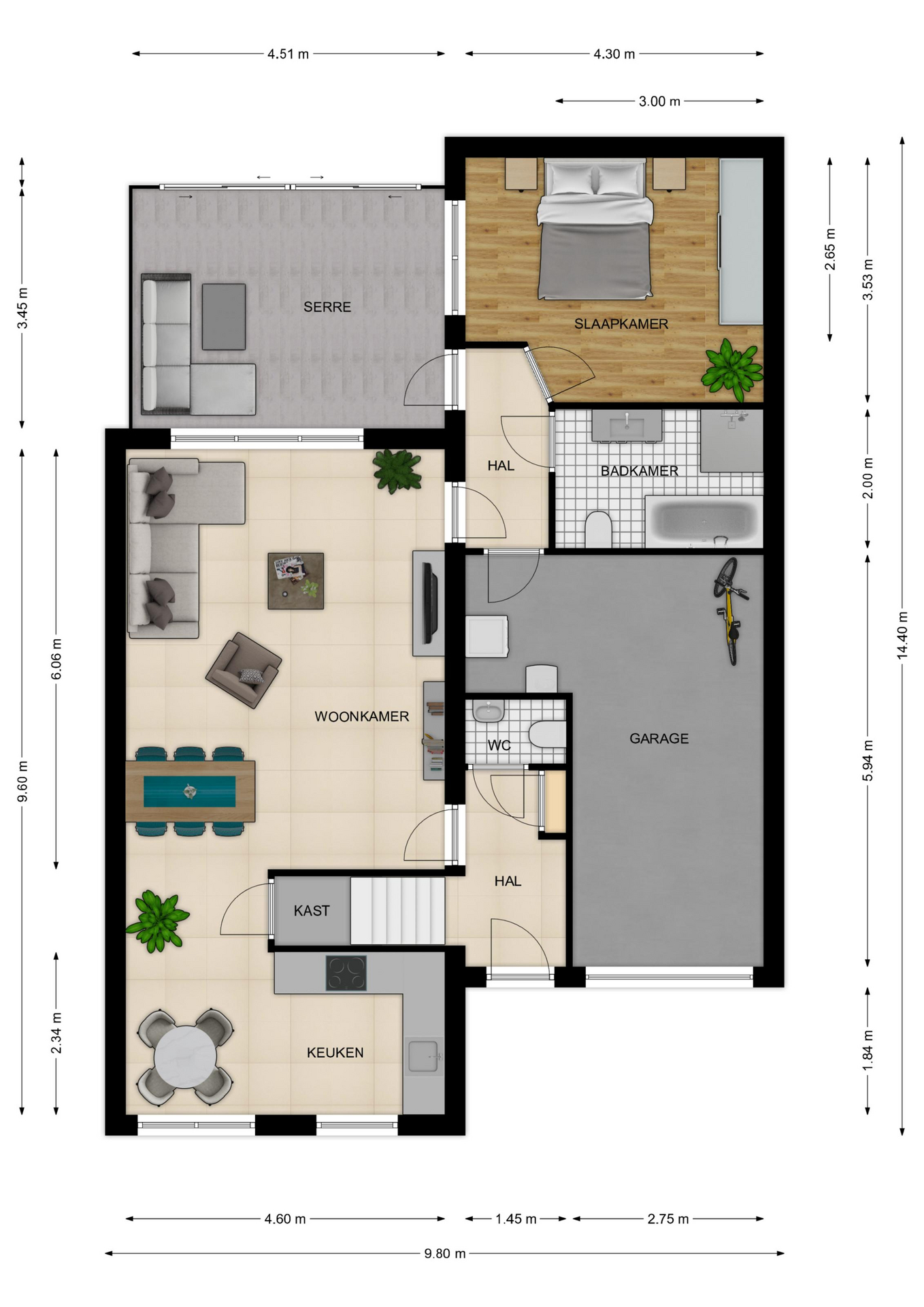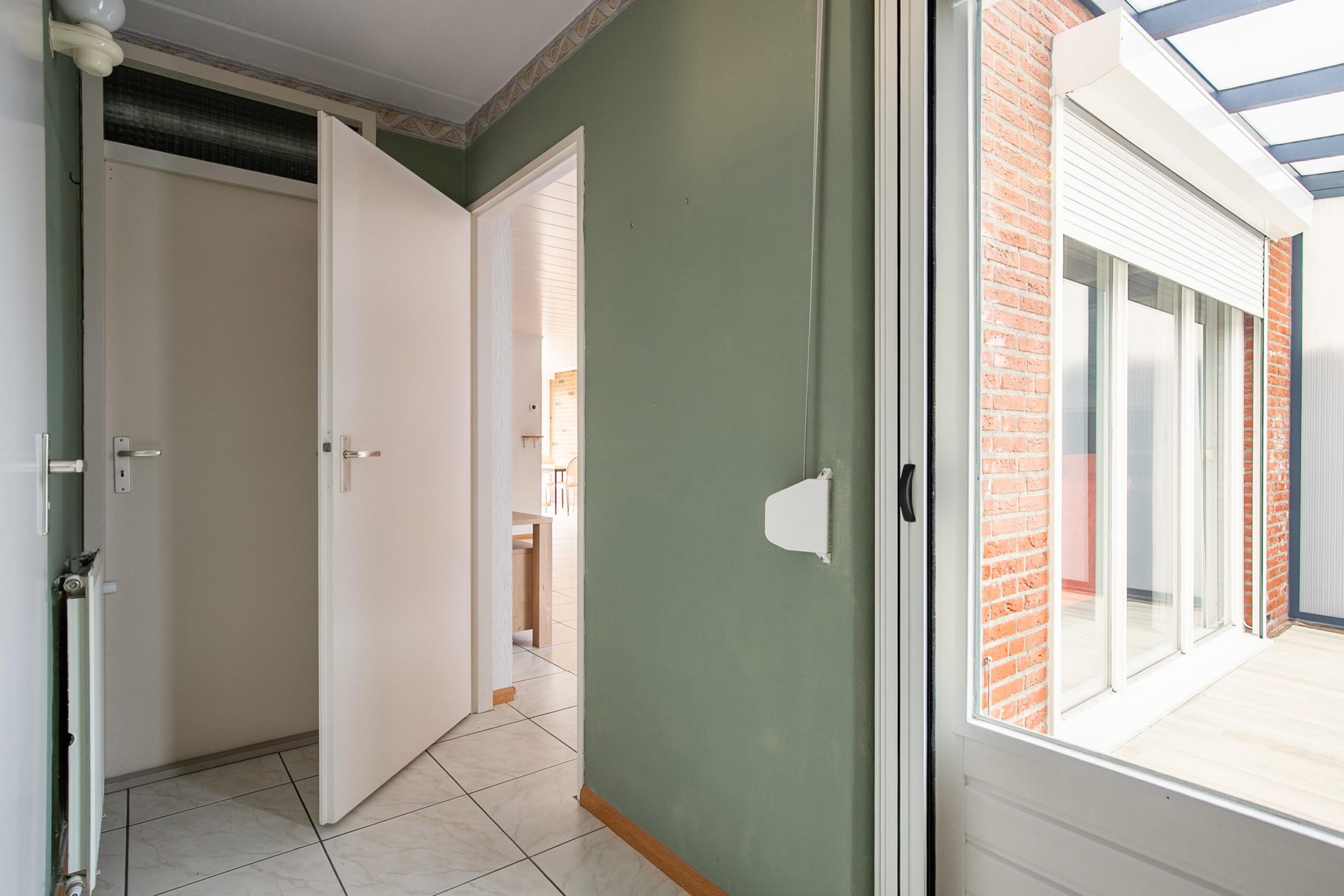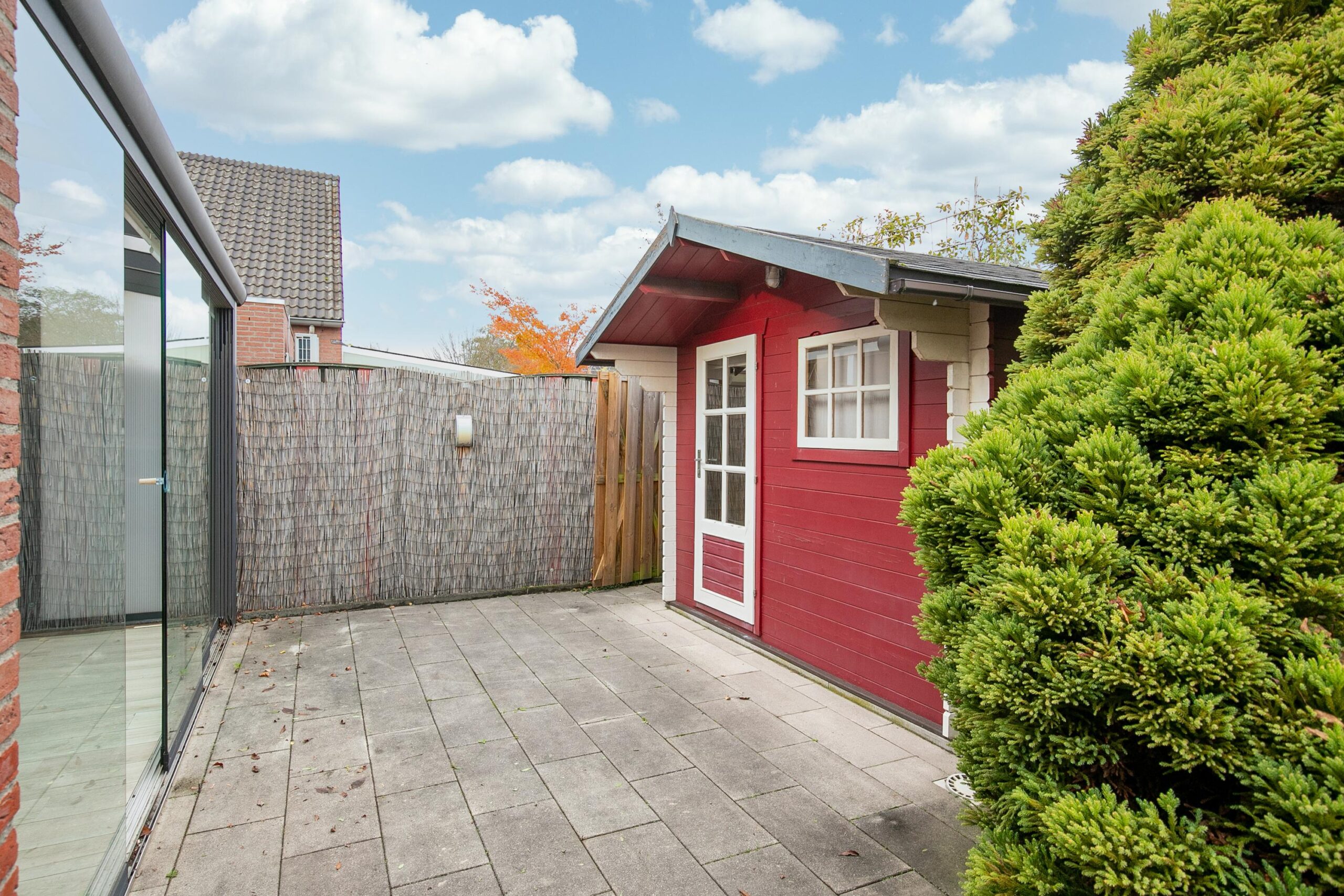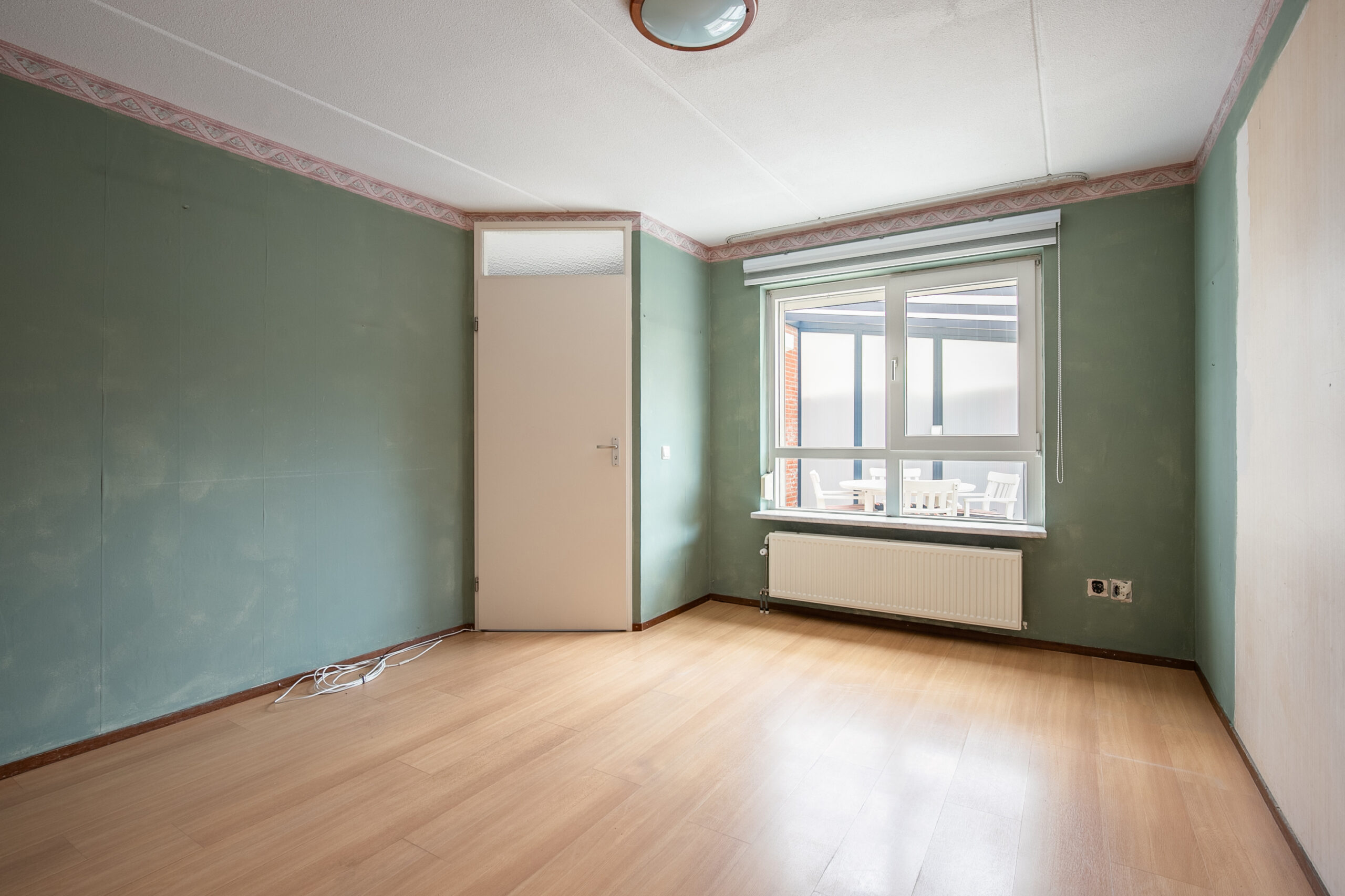 Voortuin met oprit. Entree/hal met tegelvloer, meterkast en half betegelde toiletruimte met toilet en fonteintje. Woonkamer met tegelvloer, schoon metselwerk/behang, trapkast en grote raampartij richting de tuinkamer. Aan de voorzijde ligt de nette L-vormige keukenopstelling met 4-pits gasfornuis, afzuigkap, koelkast en oven/magnetron. Woonkamer en keuken zijn samen ca. 41 m2 groot. Via de tussenhal is er toegang tot de eerste slaapkamer (ca. 14 m2) met laminaatvloer en behang en ook de volledig betegelde badkamer (ca. 6 m2) met ligbad, inloopdouche, toilet en modern wastafelmeubel. Tevens is inpandig toegang tot de garage (ca. 19,5 m2) met betonvloer, elektrische sectionaalpoort, Vaillant combiketel, mechanische ventilatie unit en witgoedaansluitingen. Direct grenzend aan de tussenhal ligt de fijne tuinkamer/serre (ca. 16 m2) met aluminium overkapping, laminaatvloer en schuifwanden richting tuin. De tuin, welke op het oosten is gesitueerd, is grotendeels betegeld/voorzien van kiezel, beschikt over een tuinhuis en diverse aanplant en tevens een poortje om achterom te komen.