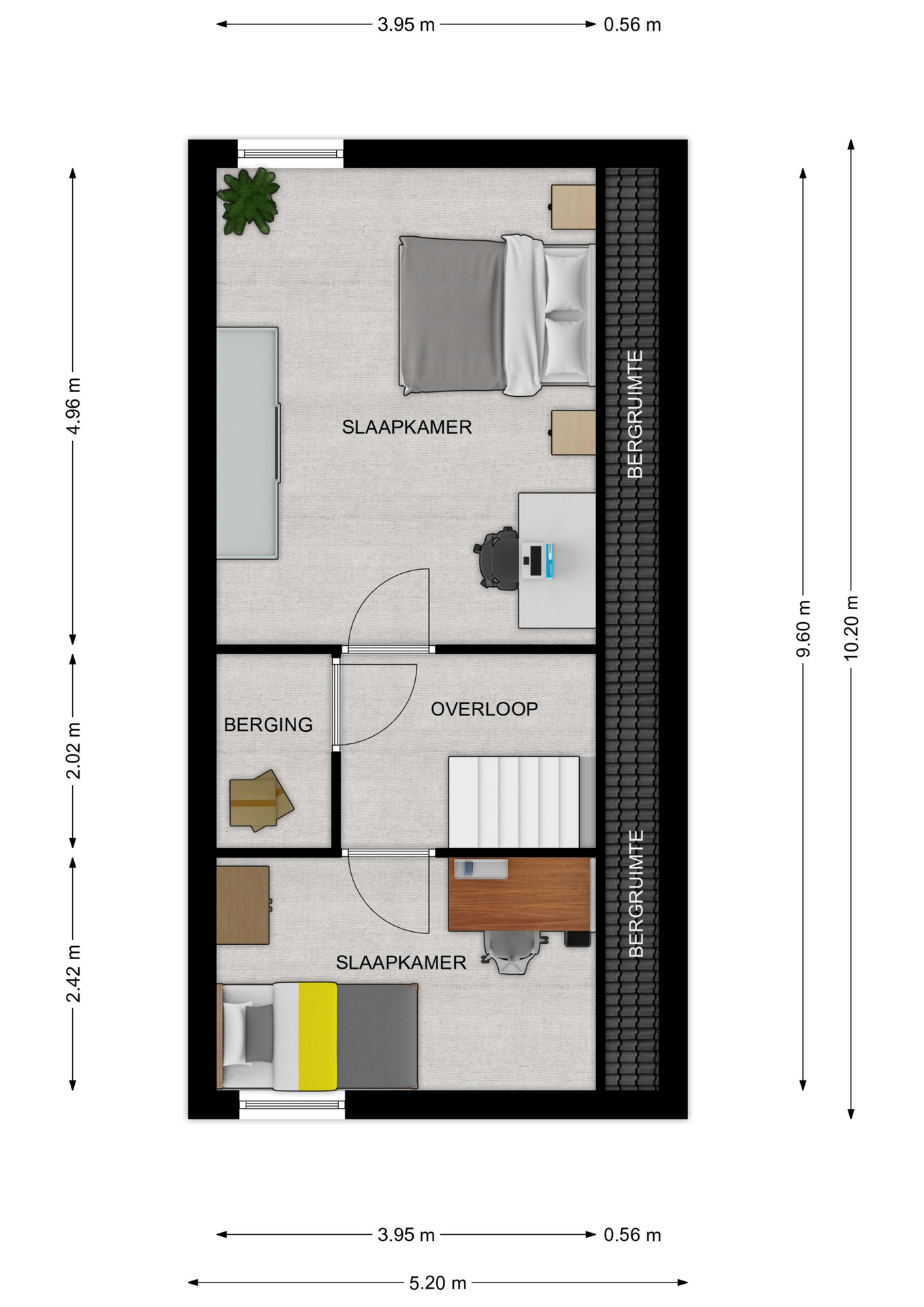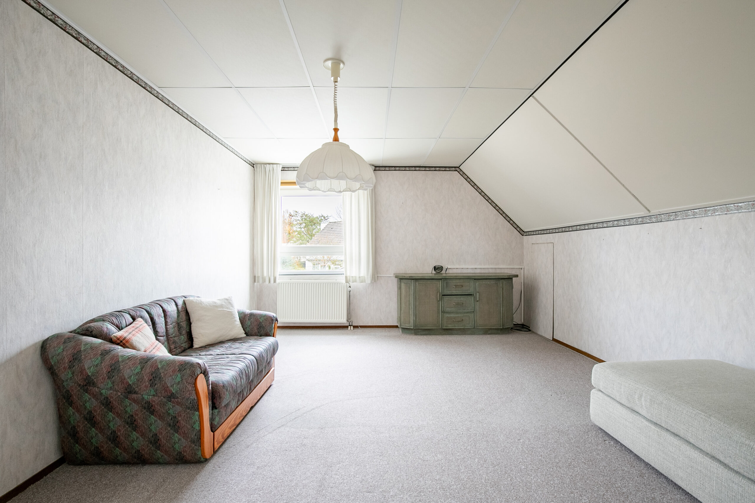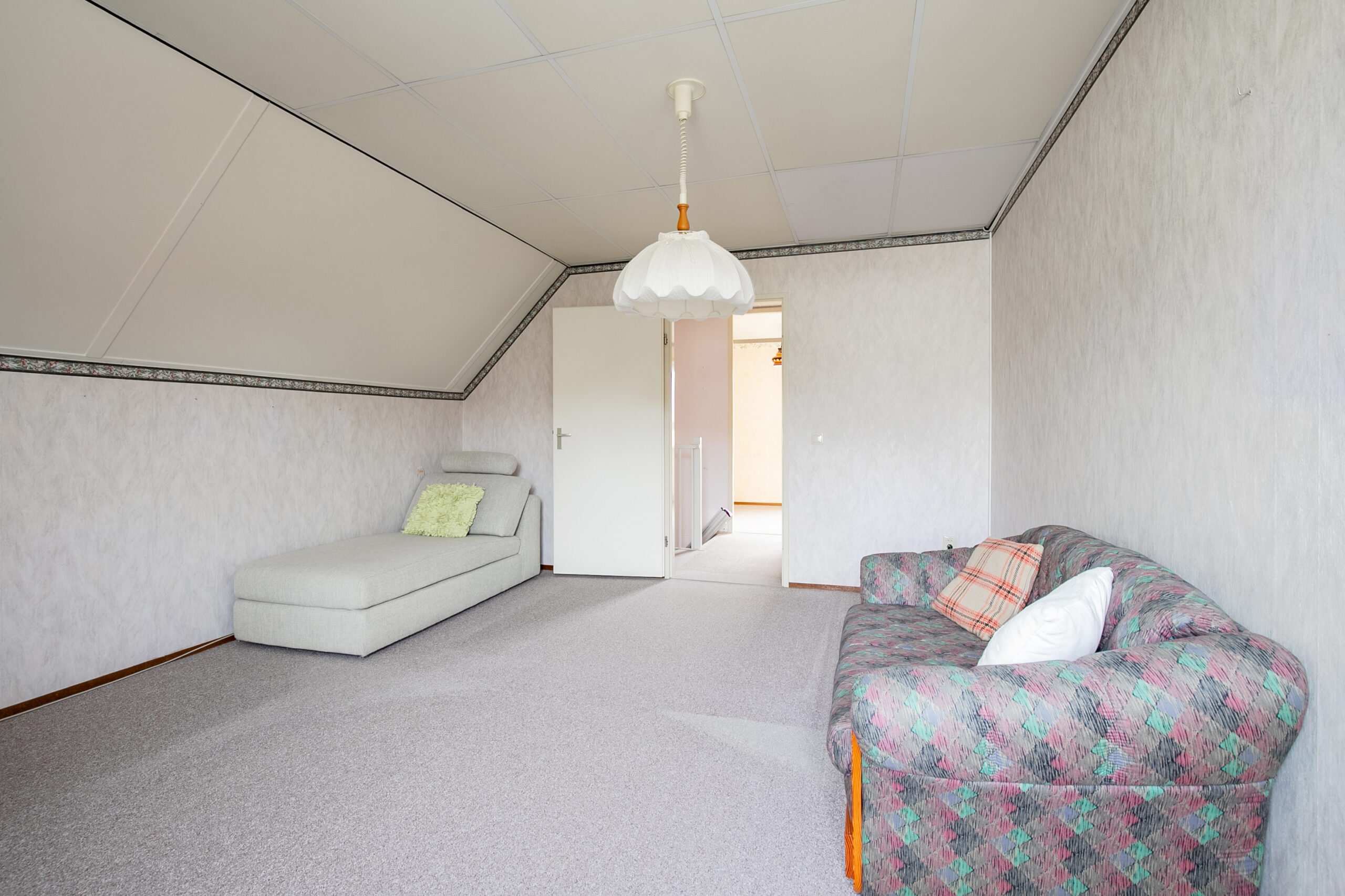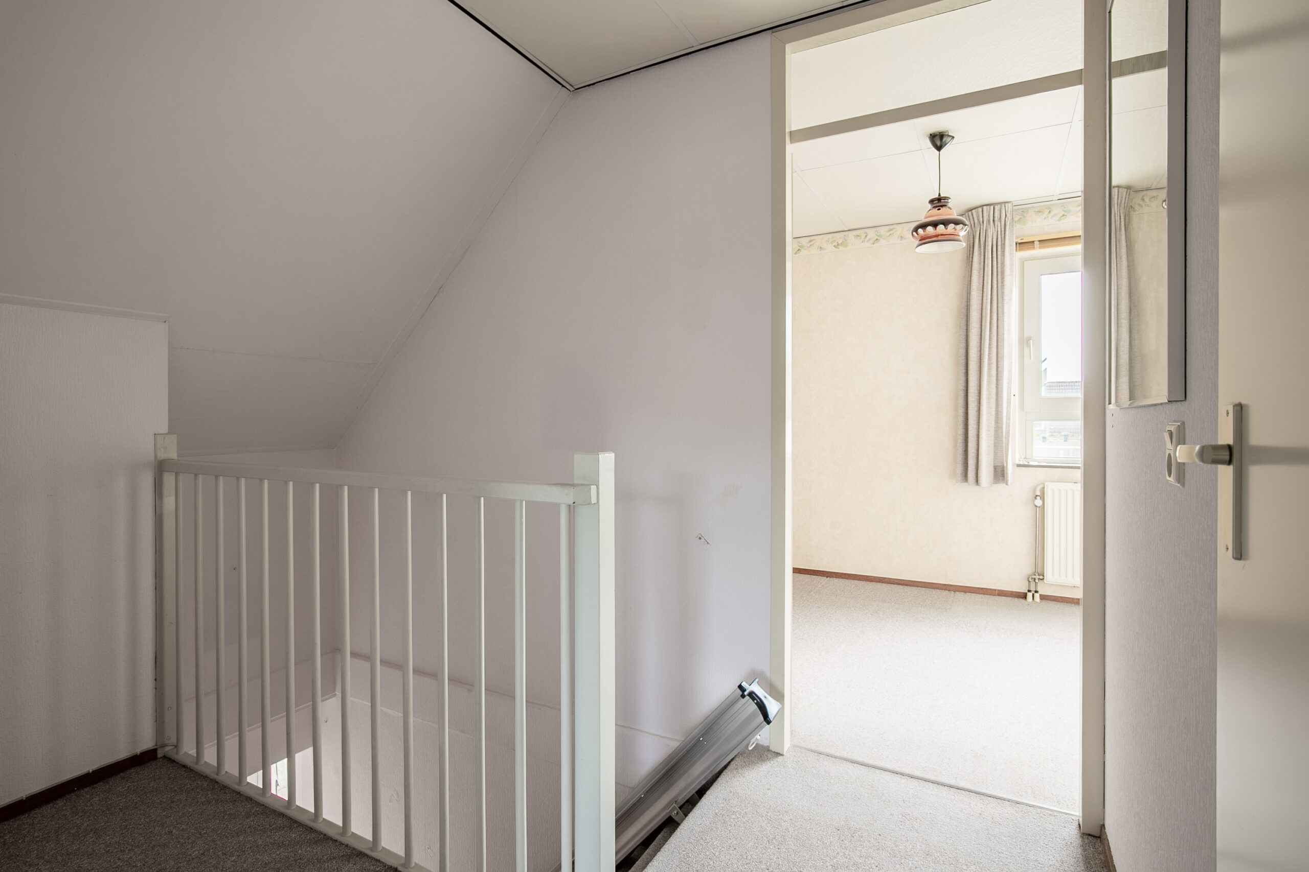 Via rechte en dus goed beloopbare steektrap bereikbare overloop, eveneens te bereiken middels aanwezige traplift. Op de overloop bevindt zich een fijne bergkast. Tevens twee extra slaap-/hobbykamers (resp. ca. 19,5 en 9,5 m2 groot) met vloerbedekking, behang en systeemplafond.