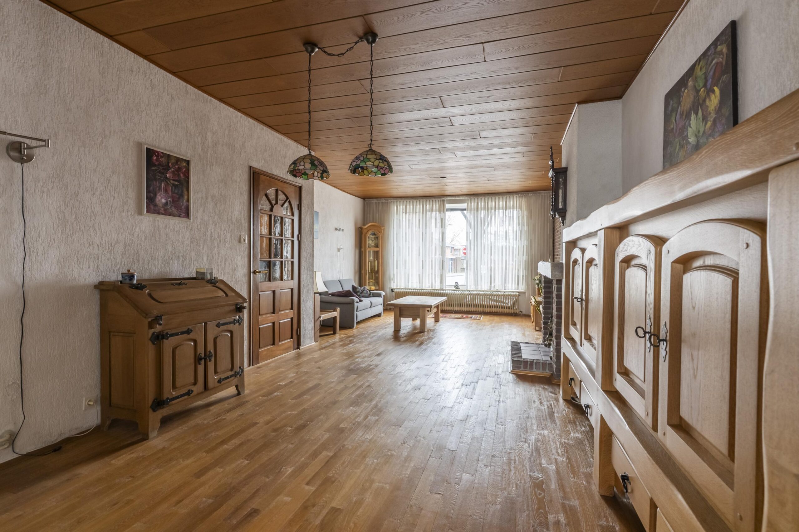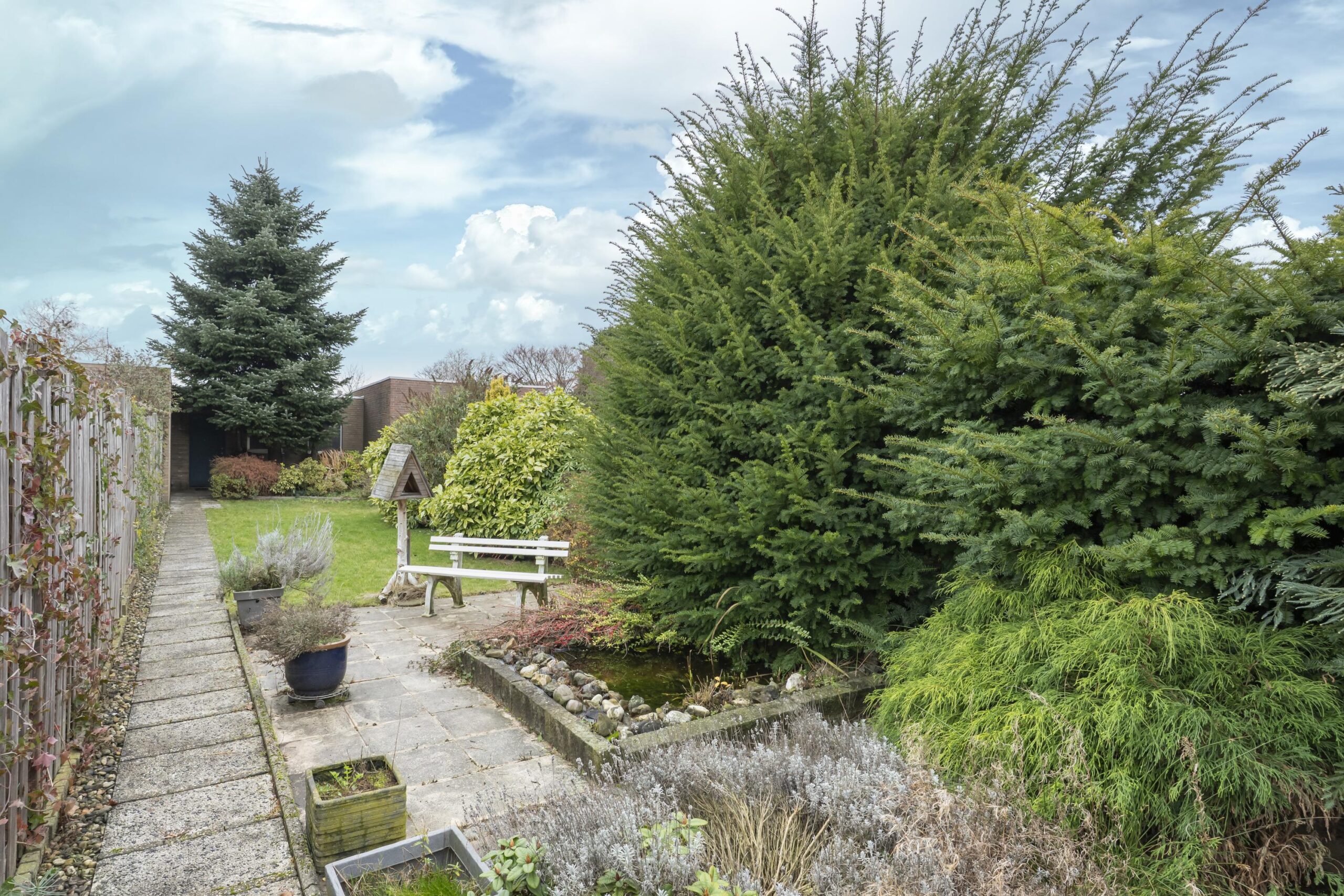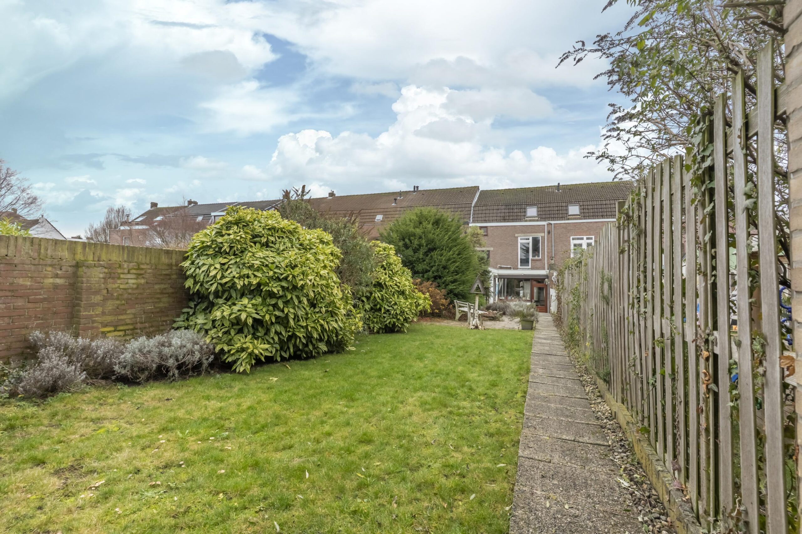 Begane grond: entree, gang, meterkast, betegeld zwevend toilet. Toegang woonkamer met parketvloer en haardpartij in open verbinding met de aangebouwde leefkeuken. De ruime keuken is voorzien van een eikenhouten keukeninstallatie met veel opbergruimte, een 4-pits gaskookplaat, afzuigkap, koelkast en vaatwasser. Achter de keuken is de badkamer gelegen; deze is geheel betegeld en ingericht met een ligbad, separate douchecabine en een badmeubel. Vanuit de keuken is de diep tuin bereikbaar met terras, gazon en borders. Een aangebouwde stenen berging biedt plaats aan de wasmachine, vaste wastafel en C.V.-opstelling. Achter de tuin staat de vrijstaande stenen garage die ruim van opzet is en via een zijstraat te bereiken is.