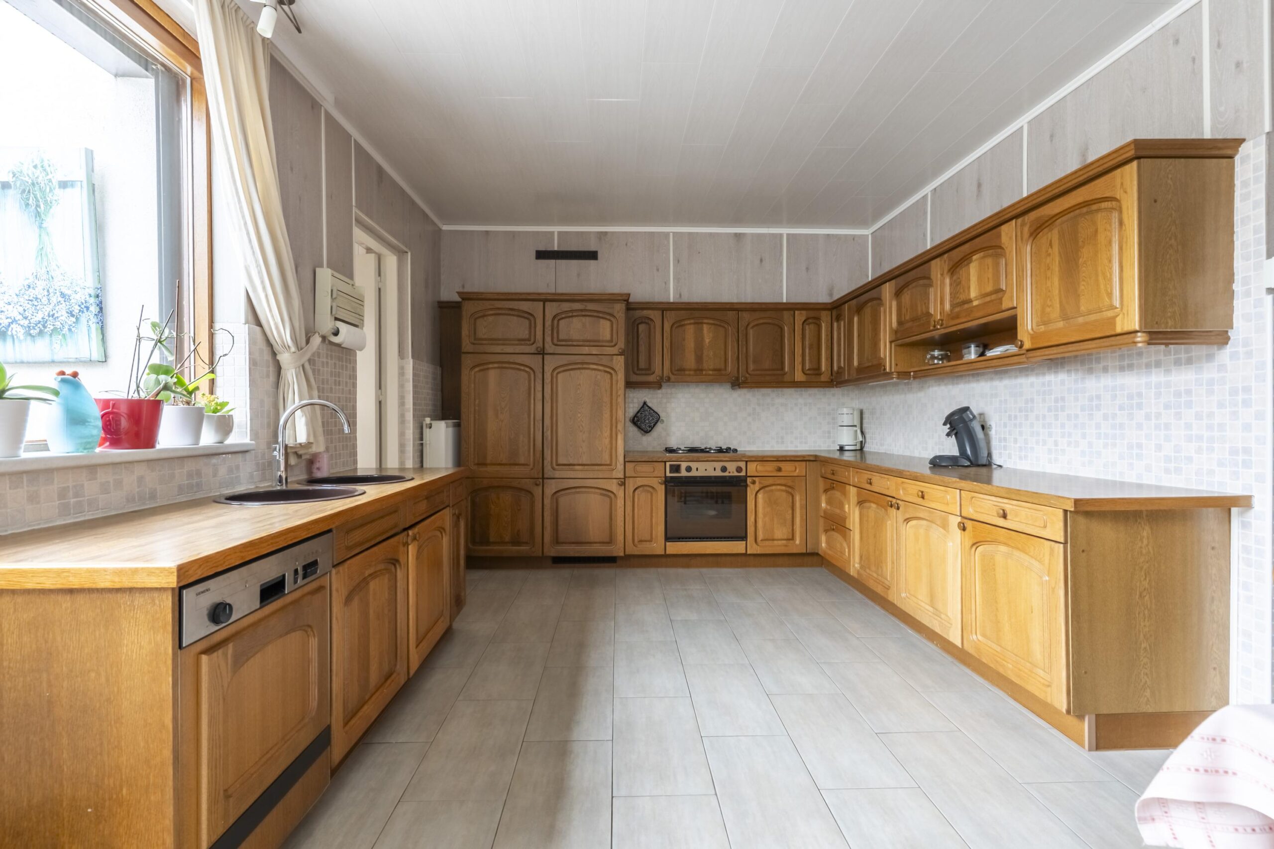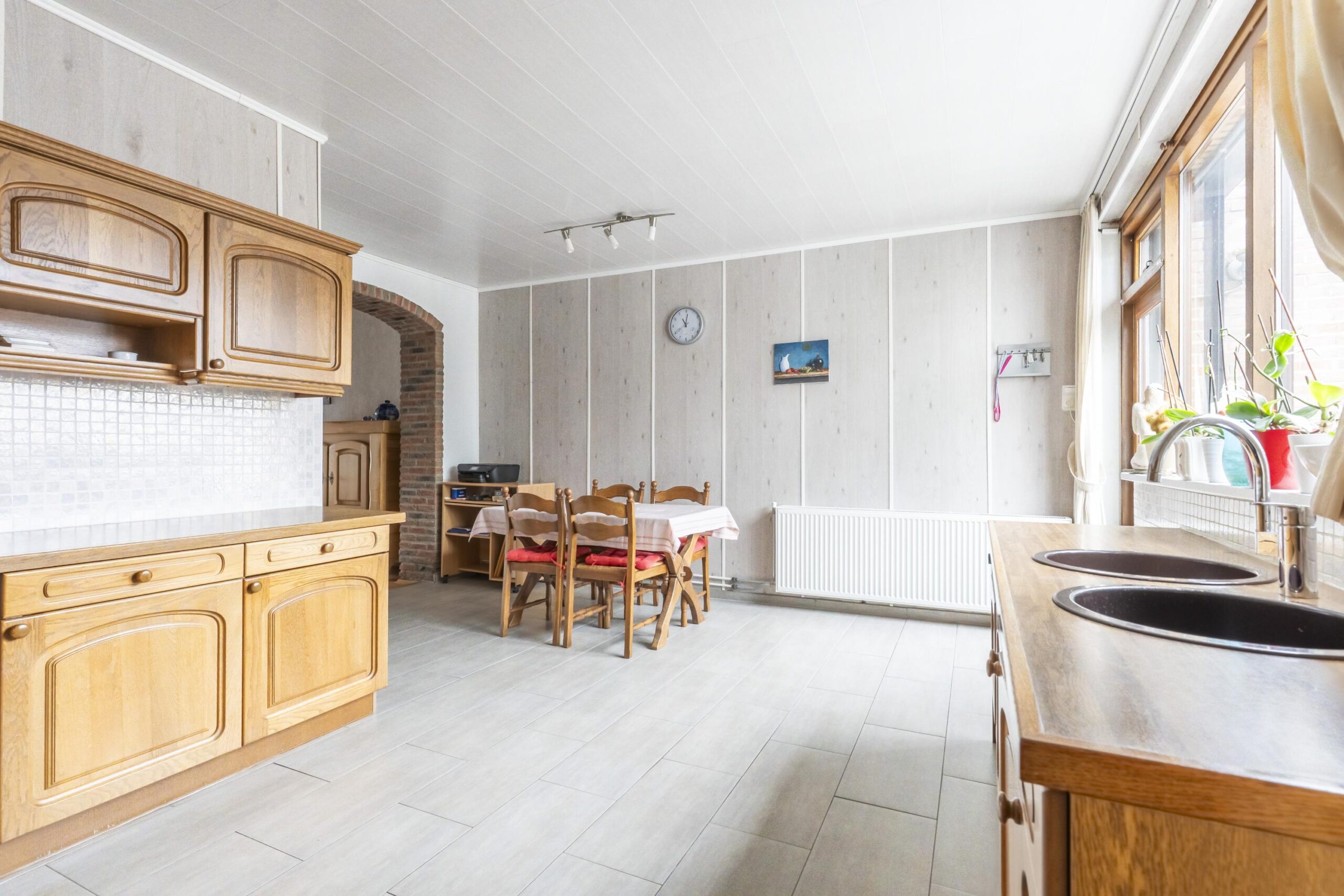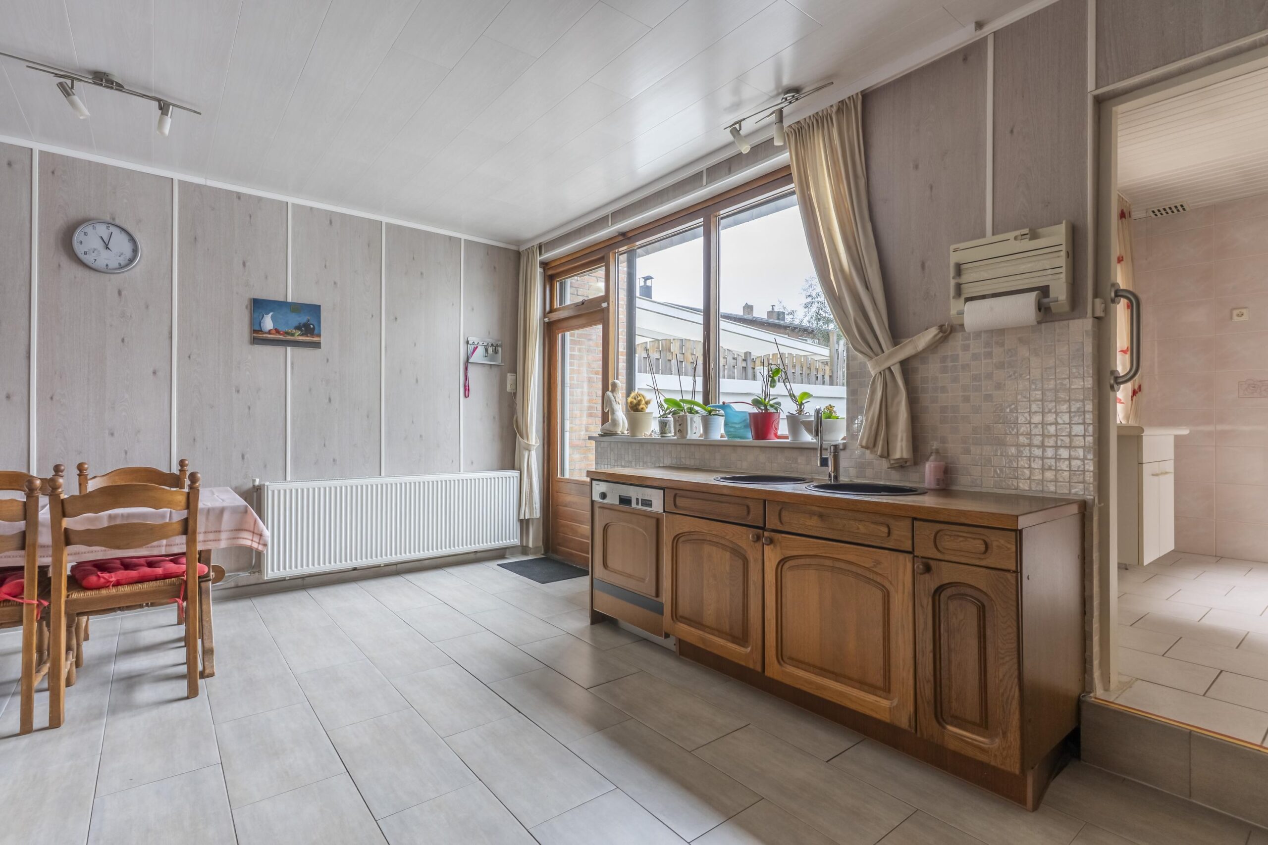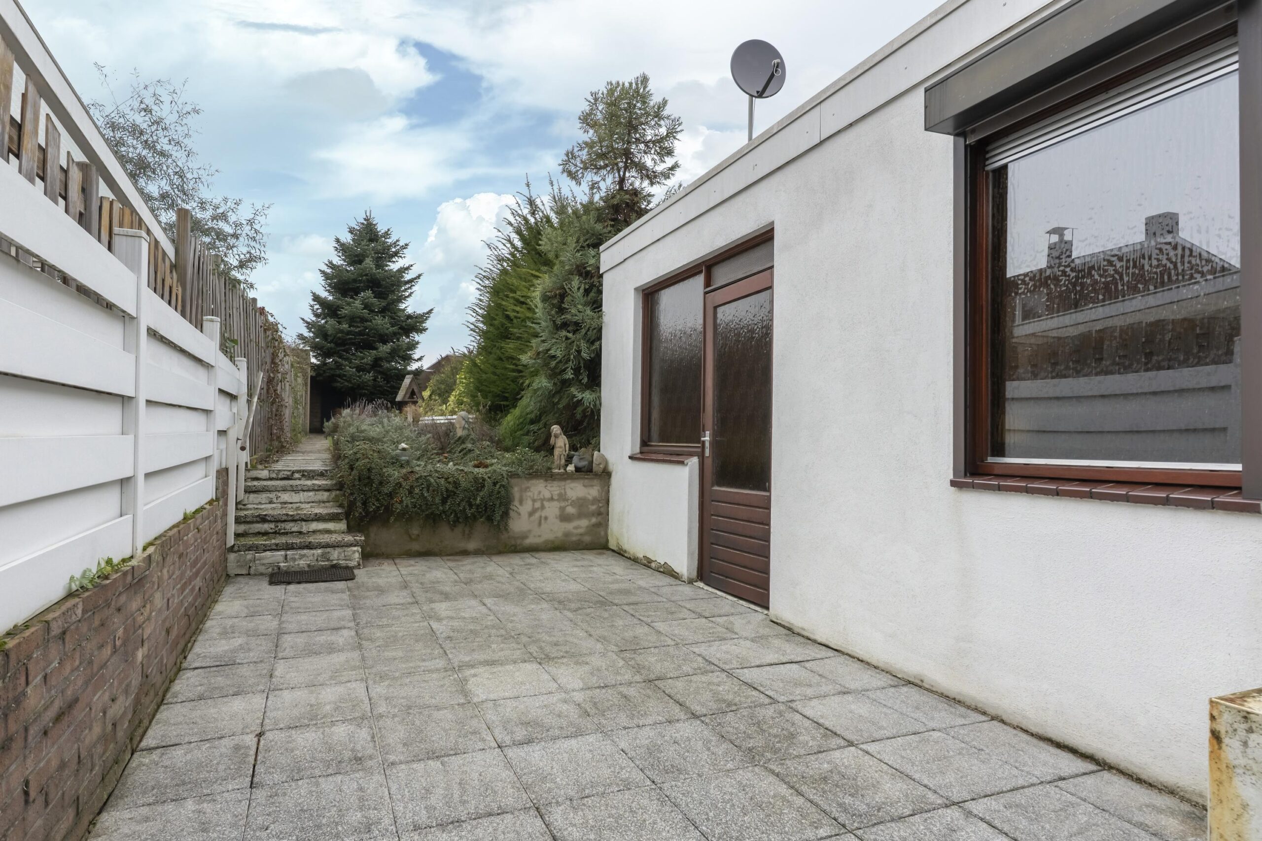 Begane grond: entree, gang, meterkast, betegeld zwevend toilet. Toegang woonkamer met parketvloer en haardpartij in open verbinding met de aangebouwde leefkeuken. De ruime keuken is voorzien van een eikenhouten keukeninstallatie met veel opbergruimte, een 4-pits gaskookplaat, afzuigkap, koelkast en vaatwasser. Achter de keuken is de badkamer gelegen; deze is geheel betegeld en ingericht met een ligbad, separate douchecabine en een badmeubel. Vanuit de keuken is de diep tuin bereikbaar met terras, gazon en borders. Een aangebouwde stenen berging biedt plaats aan de wasmachine, vaste wastafel en C.V.-opstelling. Achter de tuin staat de vrijstaande stenen garage die ruim van opzet is en via een zijstraat te bereiken is.