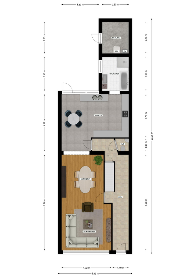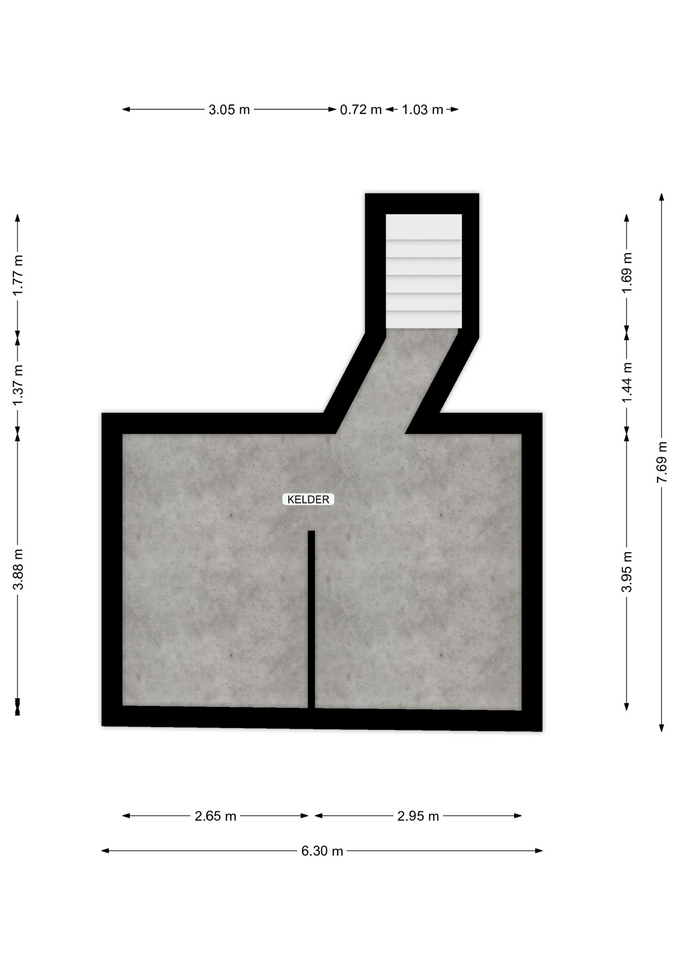 Souterrain: gedeeltelijk onderkelderd verdeeld in twee ruimtes.