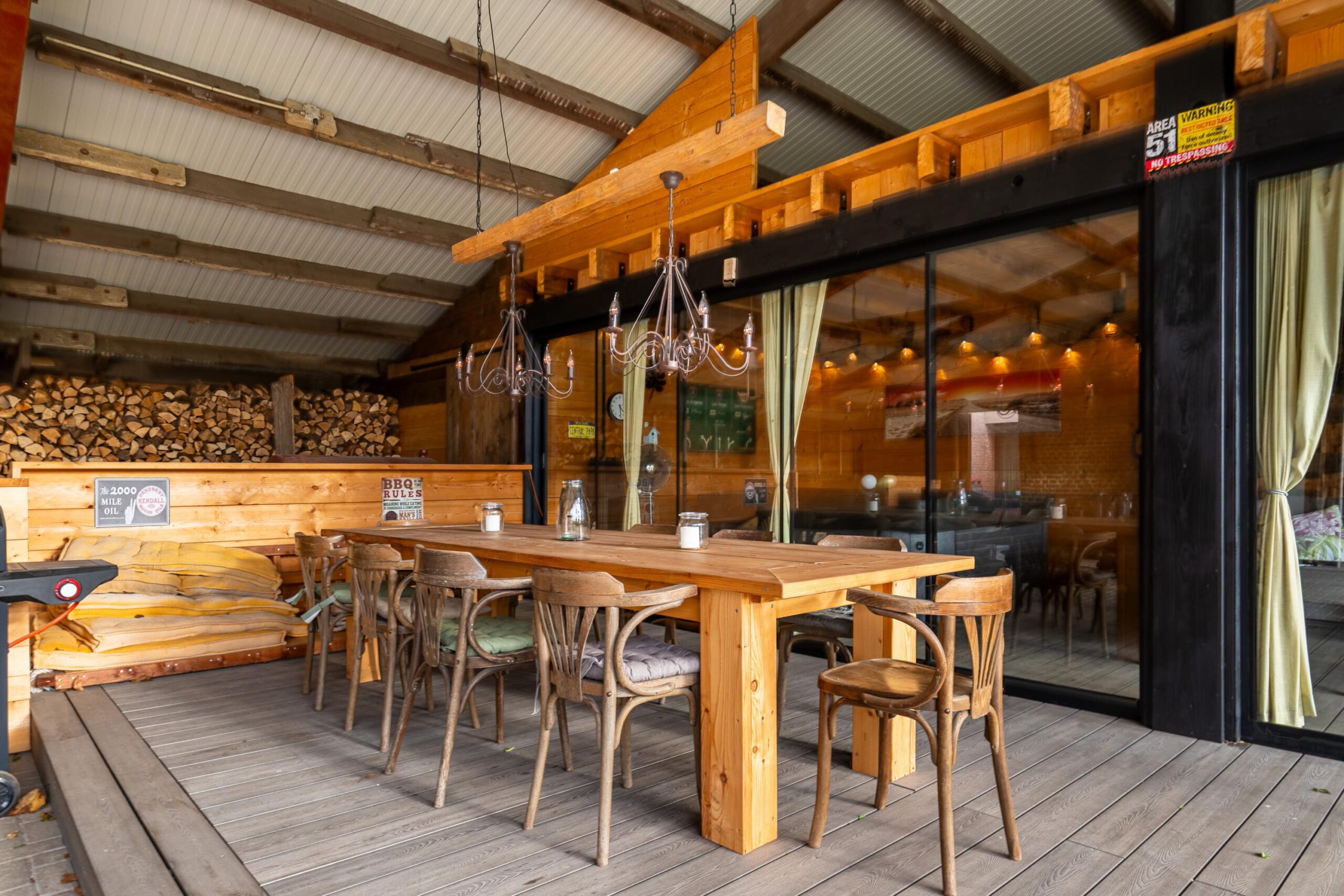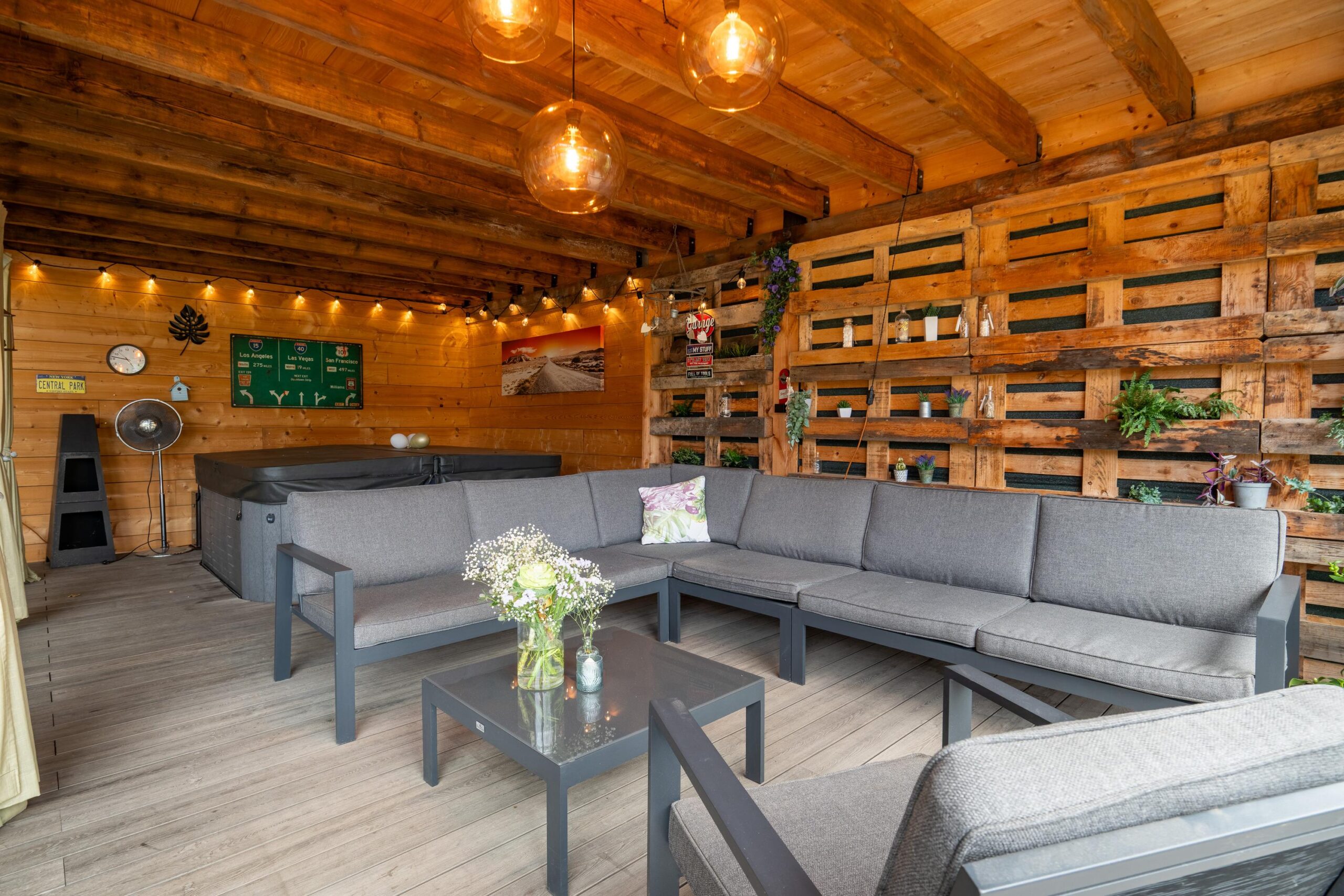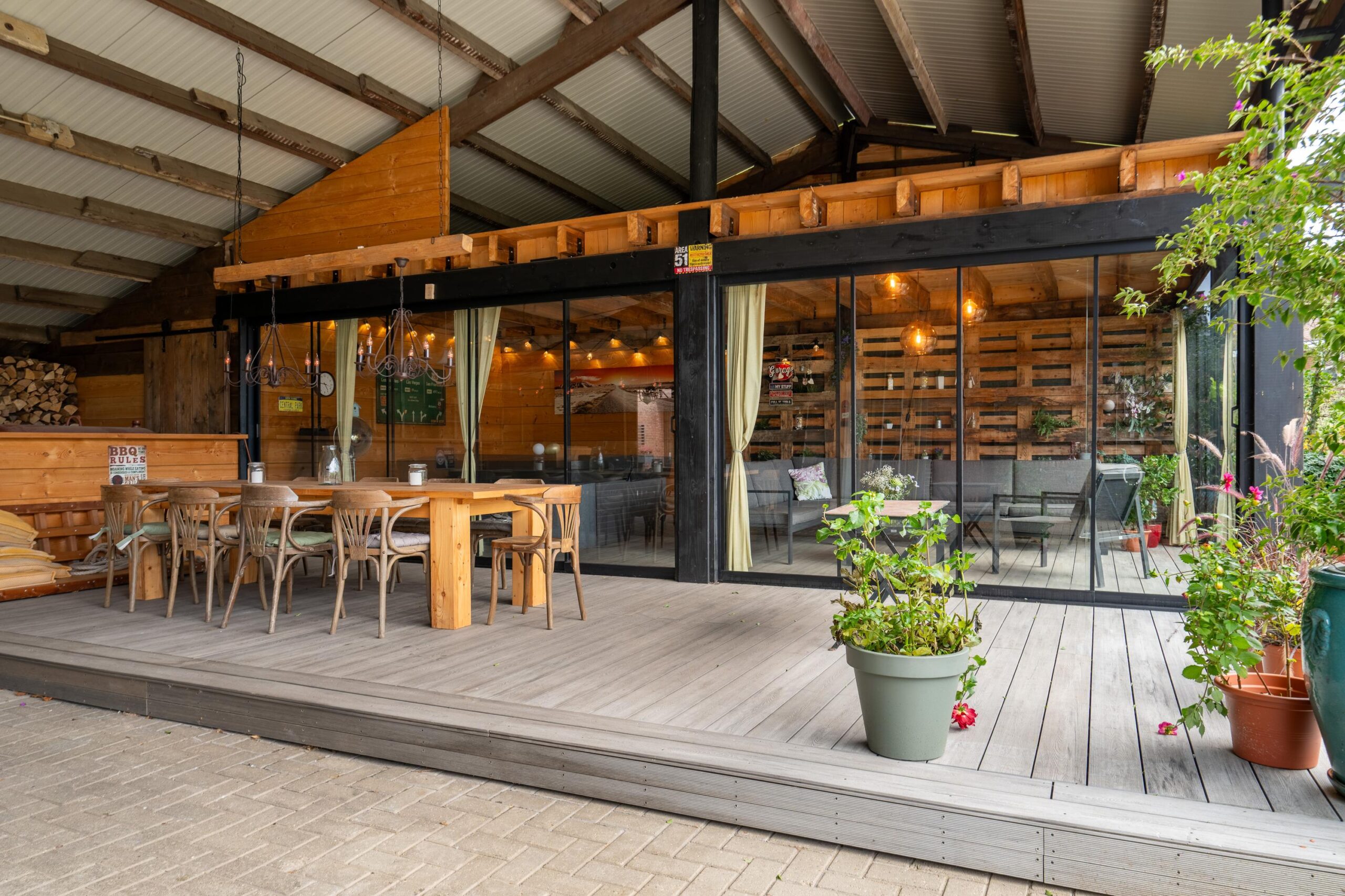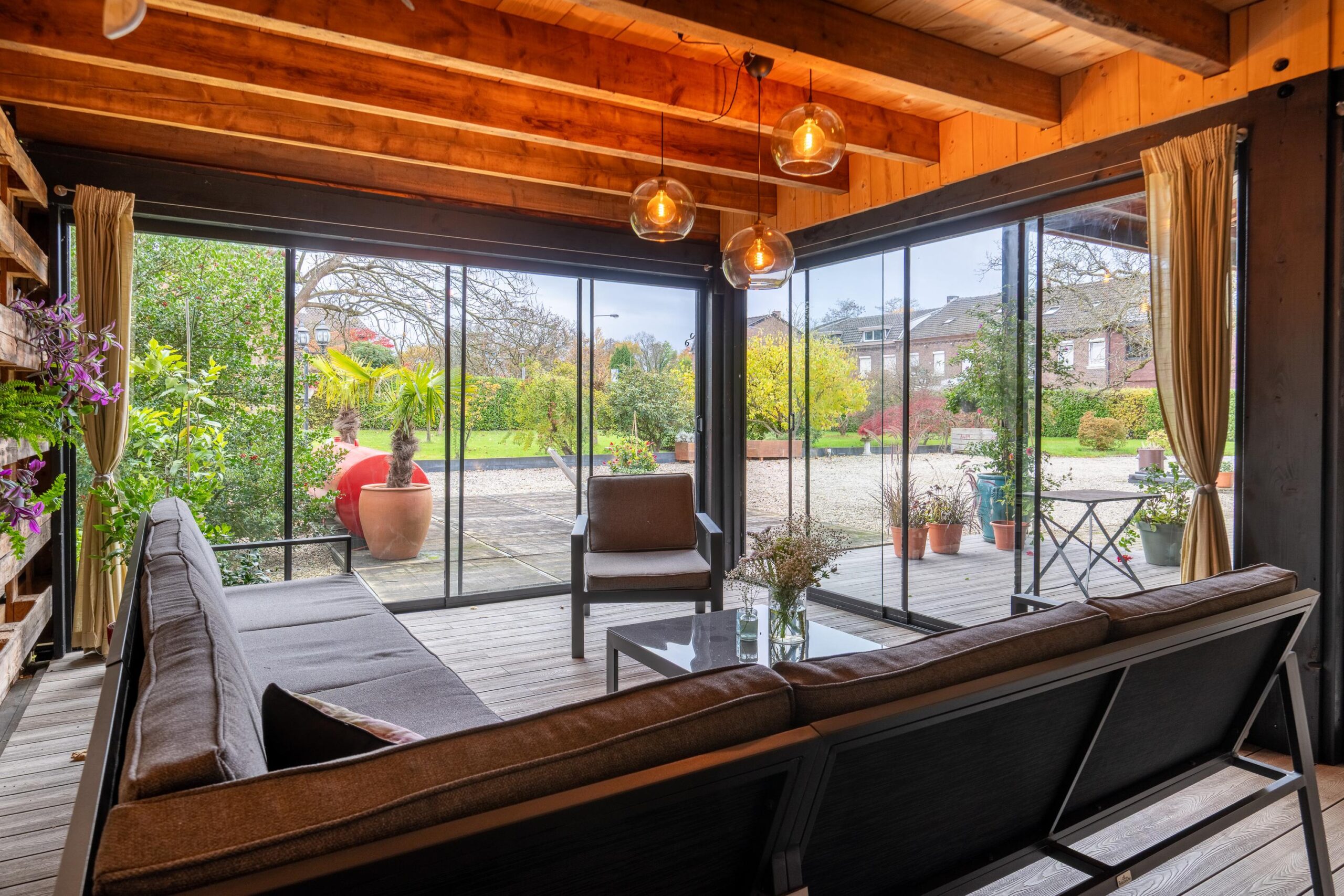 De zonnige, geheel omsloten tuin biedt volop privacy en is toegankelijk middels royale oprijlaan met kunstzinnige stalen poort. Het perceel beschikt over een ruim gazon met oude notenboom, omring door blijvend groene hagen. Naast het woonhuis gelegen oude werkplaats met krachtstroom, aparte groepenkast en authentieke stalen deuren. Ideaal voor zelfstandige of hobbyisten. De achter het woonhuis gelegen schuur met stalen spanten en geïsoleerd met sandwichpanelen biedt ruimte voor het overdekt stallen van meerdere voertuigen. Het composieten terras met sfeervolle wintertuin, voorzien van glazen schuifdeuren en een jacuzzi, vormt de ideale plek om te ontspannen.
