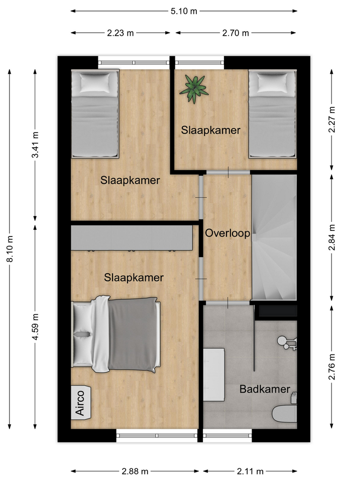 – Twee airco’s, één in de woonkamer en één op de ouderslaapkamer;