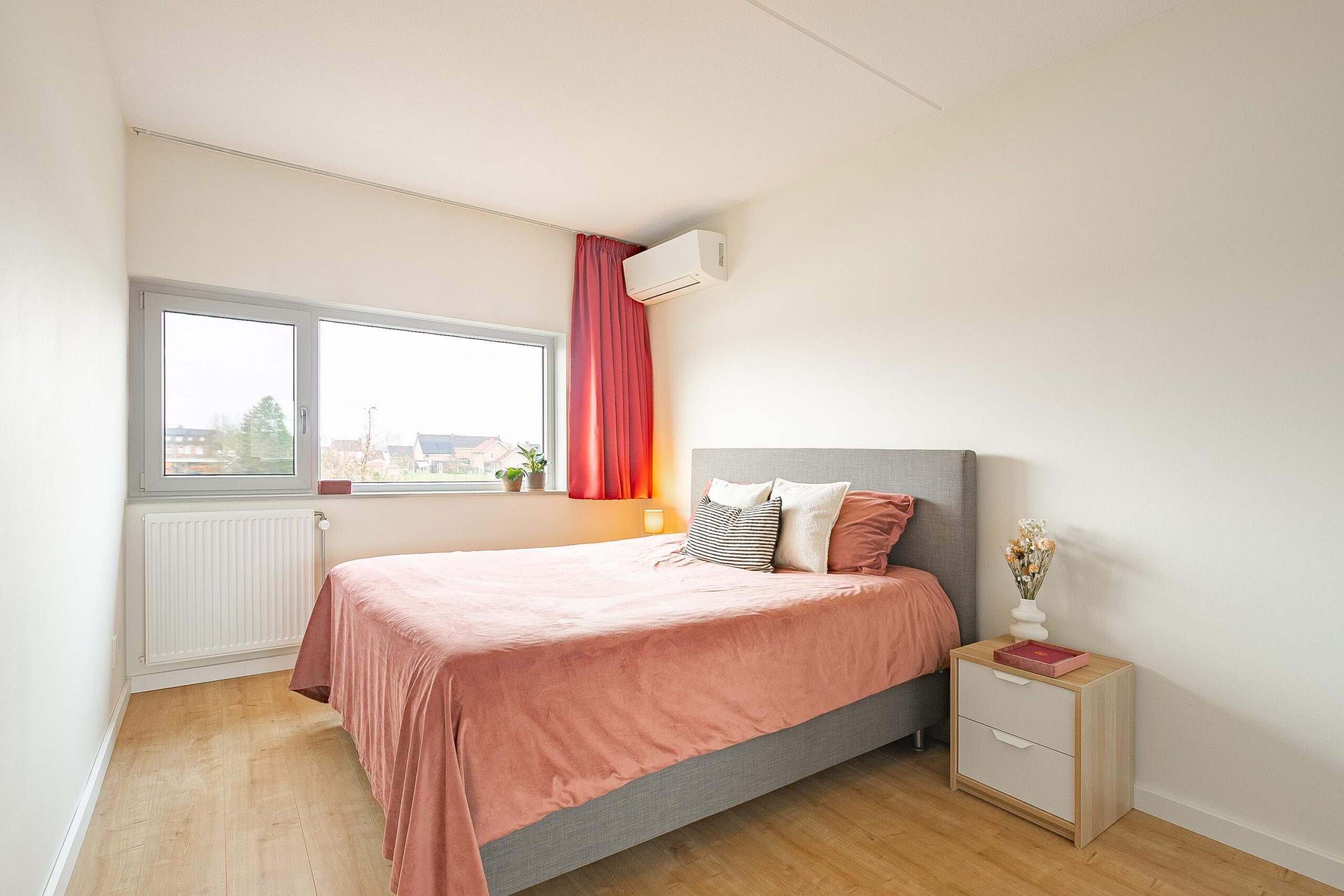 Overloop. Drie slaapkamers (resp. ca. 13.2m², 8.3m² en 6.3m²), allen afgewerkt met laminaatvloeren. Op de ouderslaapkamer is een airco geplaatst. Moderne badkamer (ca. 6m²) met inloopdouche, wandcloset en wastafel met twee mengkranen.