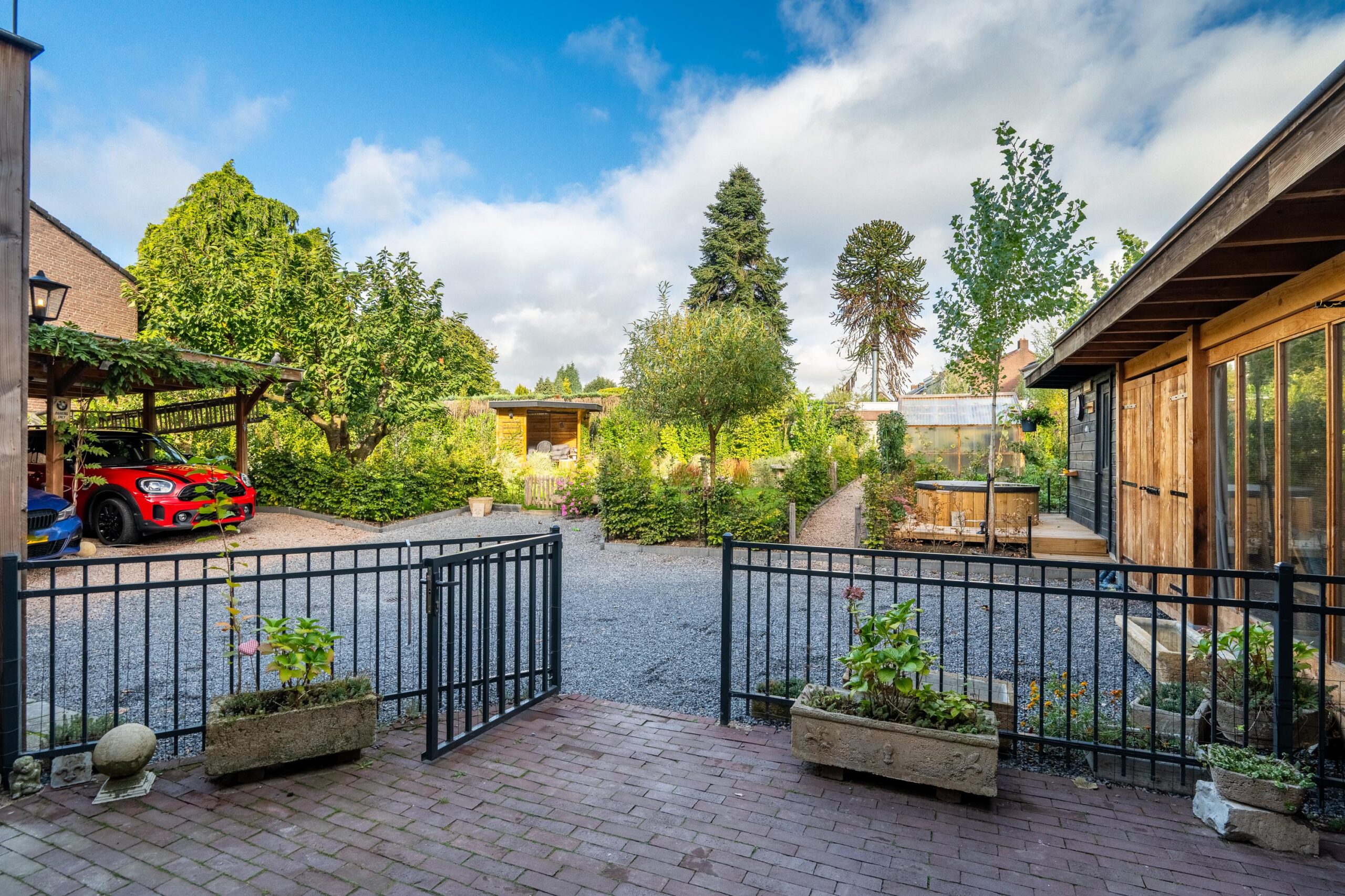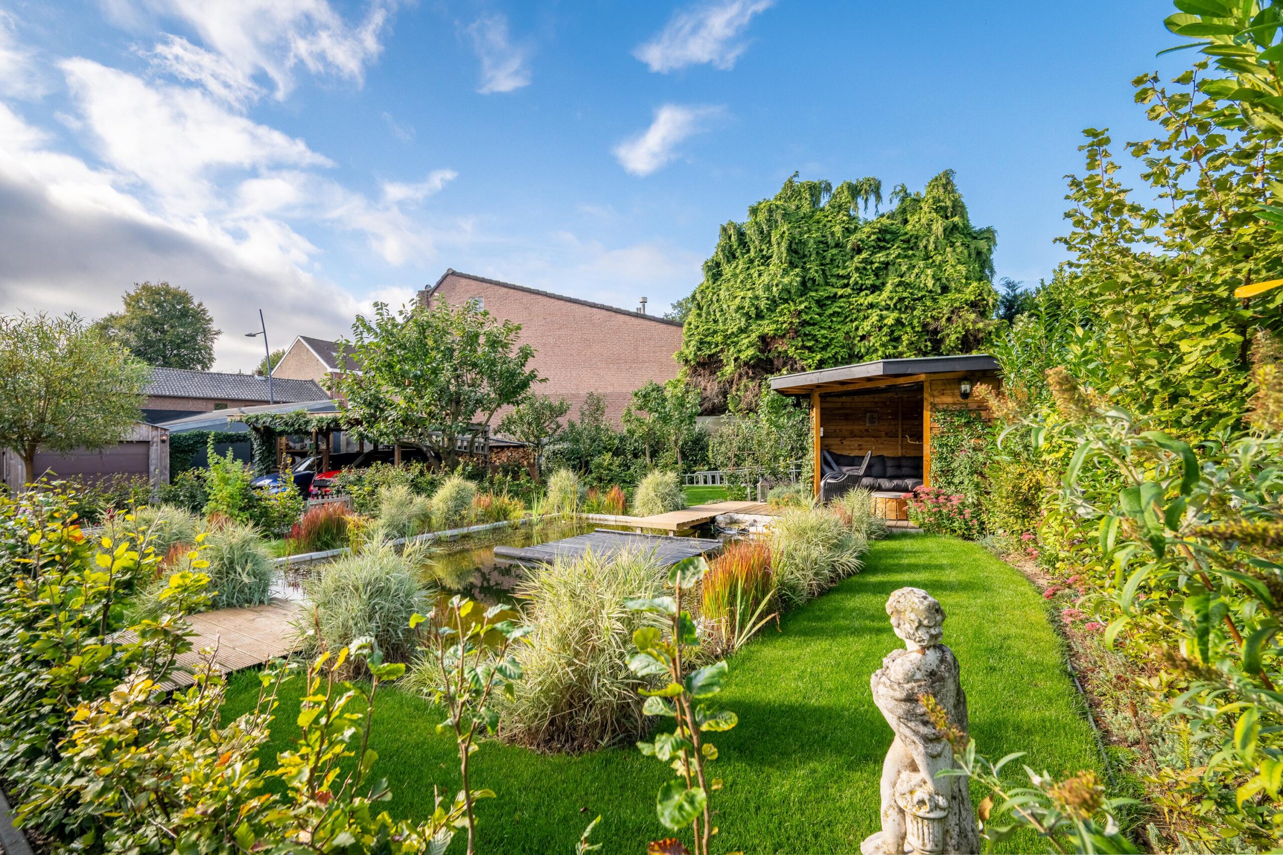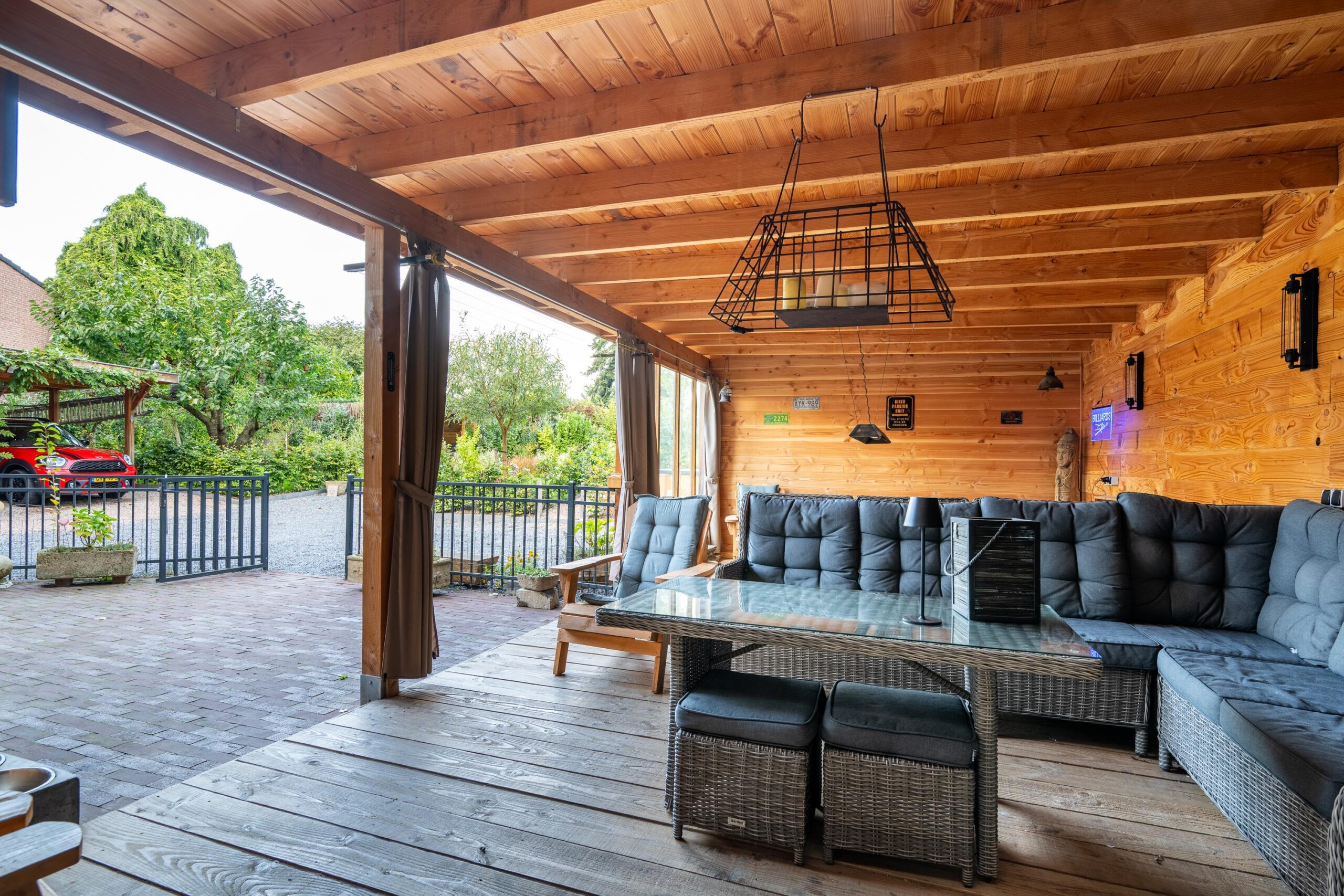De prachtig aangelegde tuin is bereikbaar vanuit de woonkamer, de hal en de garage en is een waar paradijs voor de natuurliefhebber. Hier vindt u een eigen moestuin met broeikas en diverse fruit- en kruidenplanten (o.a. frambozen, aardbeien, appel-, peren- en pruimenbomen, tomaten). Verder beschikt de tuin over een natuurlijke zwemvijver met vlonder, een overdekte loungehoek met fraaie buitenkeuken (BBQ), een fraai gazon en een hottub die is aangesloten op een warmtepomp. De tuin is parkachtig aangelegd en voorzien van alle gemakken om te ontspannen. De fraai ingedeelde overkapping biedt drie heerlijke zones: een ruime zithoek om te ontspannen, een praktische carport met dubbele deuren en een wellnesshoek met elektrische sauna direct naast de hottub.