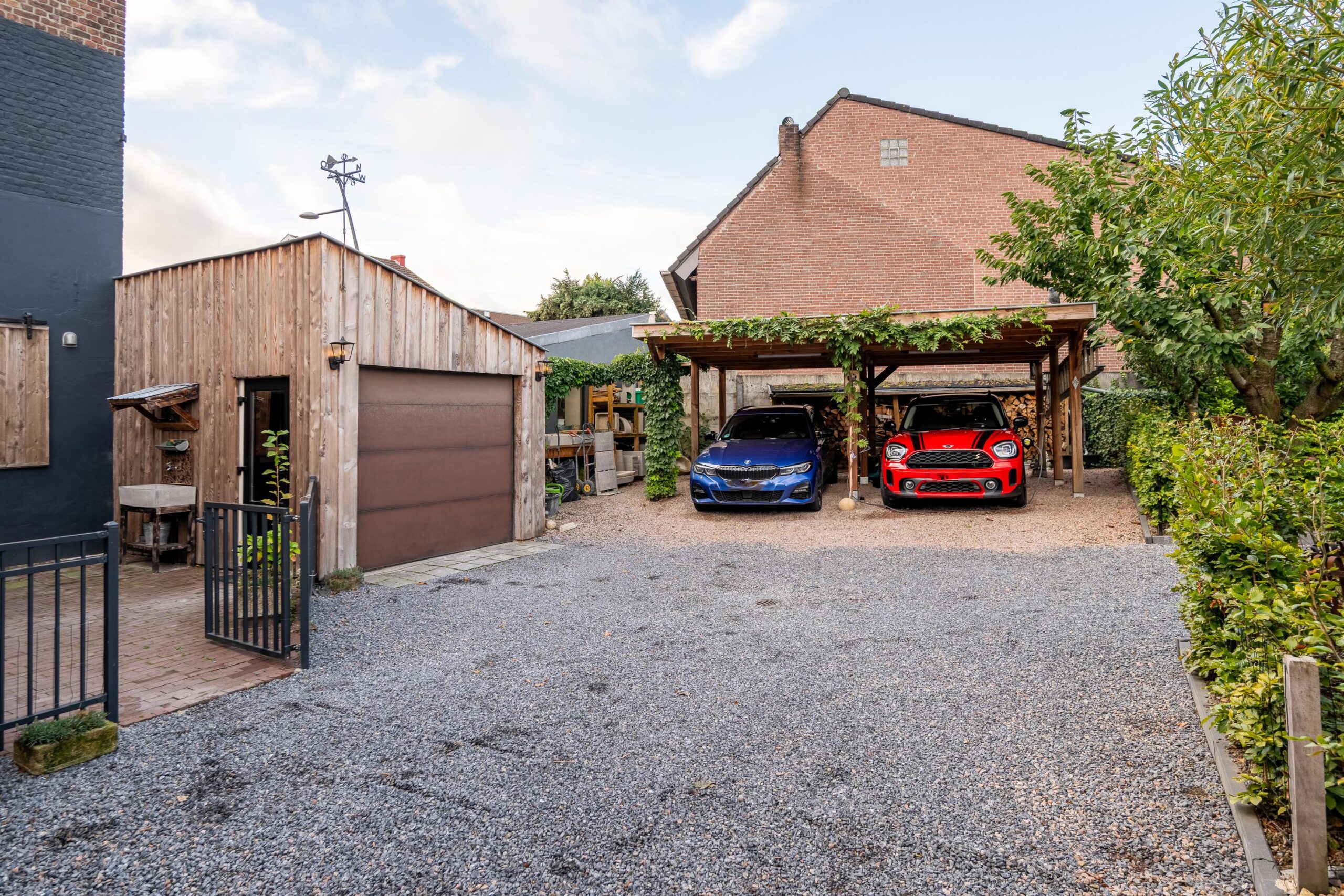 Parkeren is hier geen probleem: de woning beschikt namelijk over een eigen oprit, een garage met dubbele sectionaalpoort en toegang tot het binnenterrein met een dubbele carport, waardoor er comfortabel plaats is voor zeker zes auto’s.
