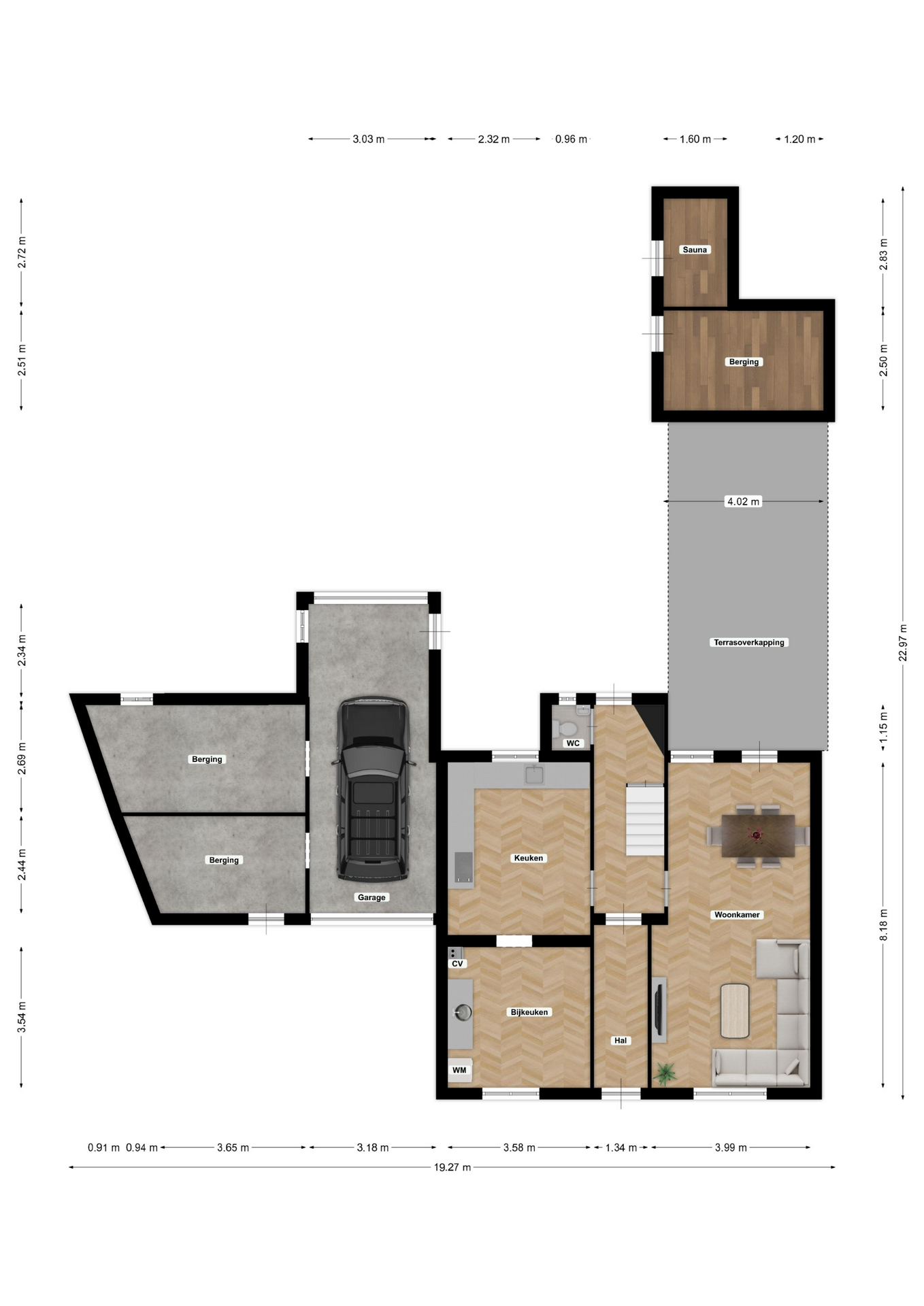 – Houtopslag achter de carport, ideaal voor de houtkachel;