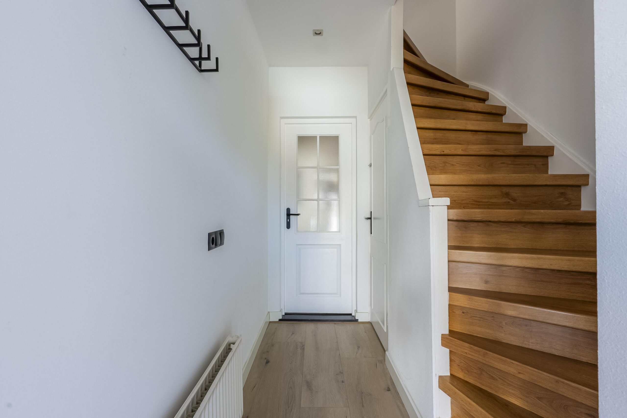 Via de moderne, onderhoudsvrije voortuin bereik je de overdekte entree. In de ontvangsthal bevinden zich de garderobe, een geheel betegeld vrijhangend toilet en de vernieuwde meterkast.