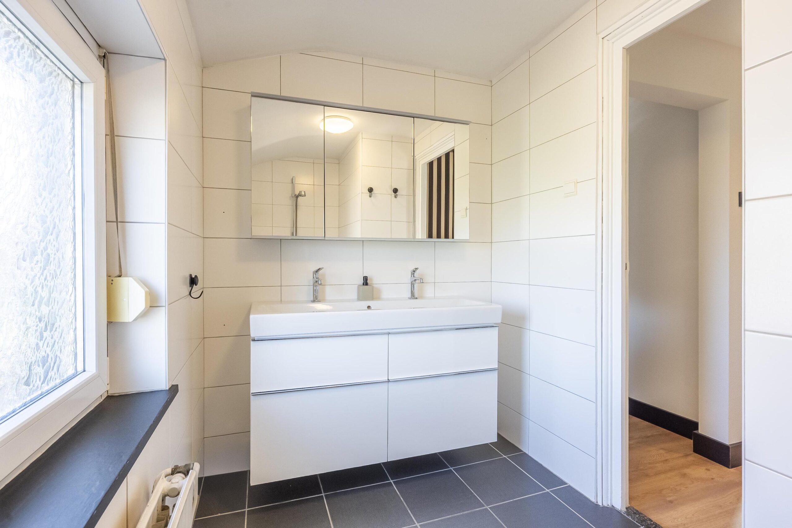 - Badkamervoorzieningen Dubbele wastafel, wastafelmeubel, inloopdouche