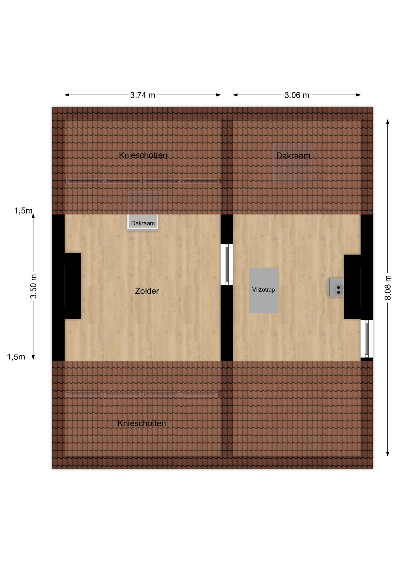 – Vaste trap naar zolder mogelijk;