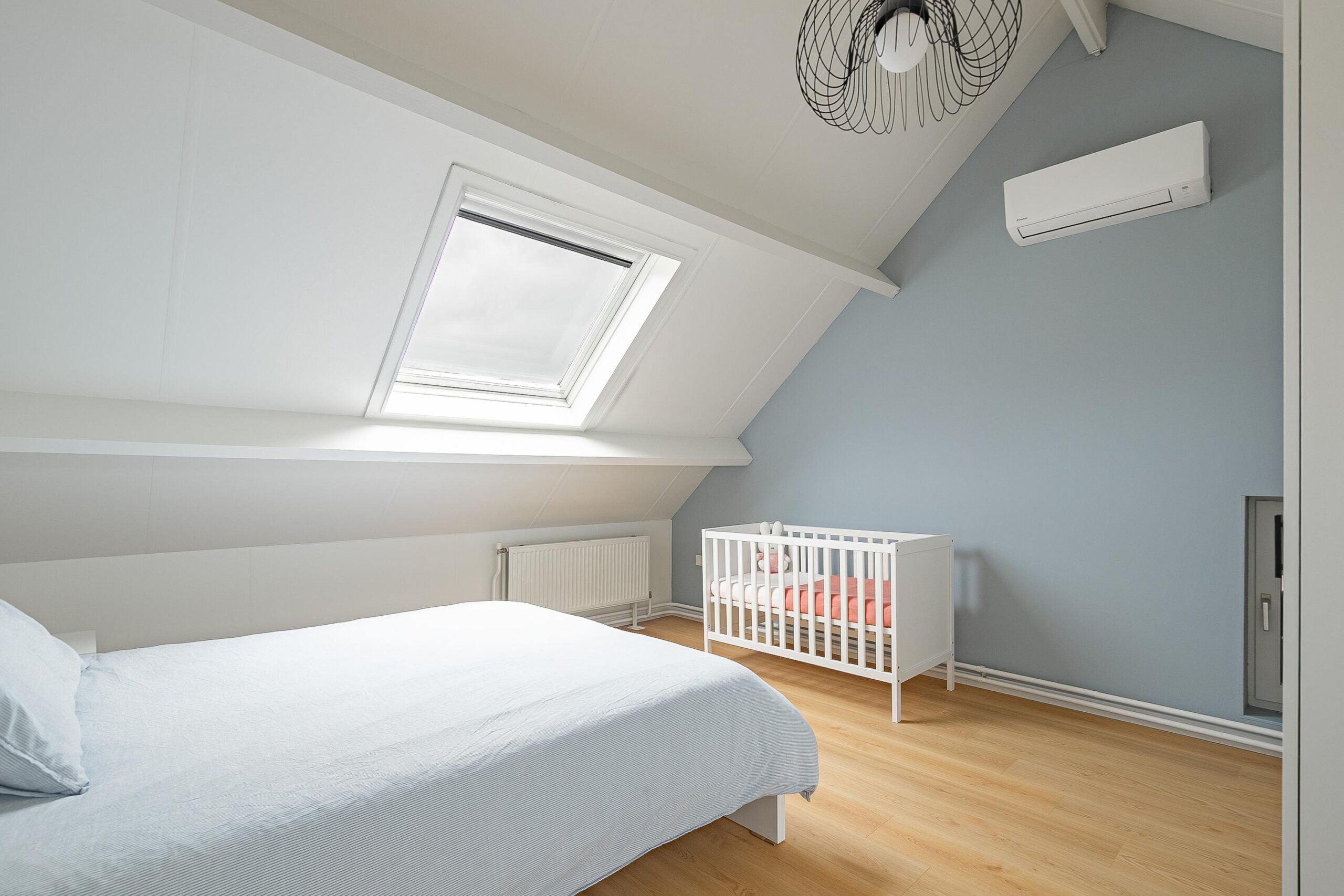 Via de trap in de woonkamer bereikt u de tweede verdieping. De ruime overloop biedt toegang tot twee slaapkamers. Deze verdieping is netjes afgewerkt en biedt extra ruimte dankzij het hoge plafond en de dakkapel. De master bedroom is bovendien voorzien van airconditioning.