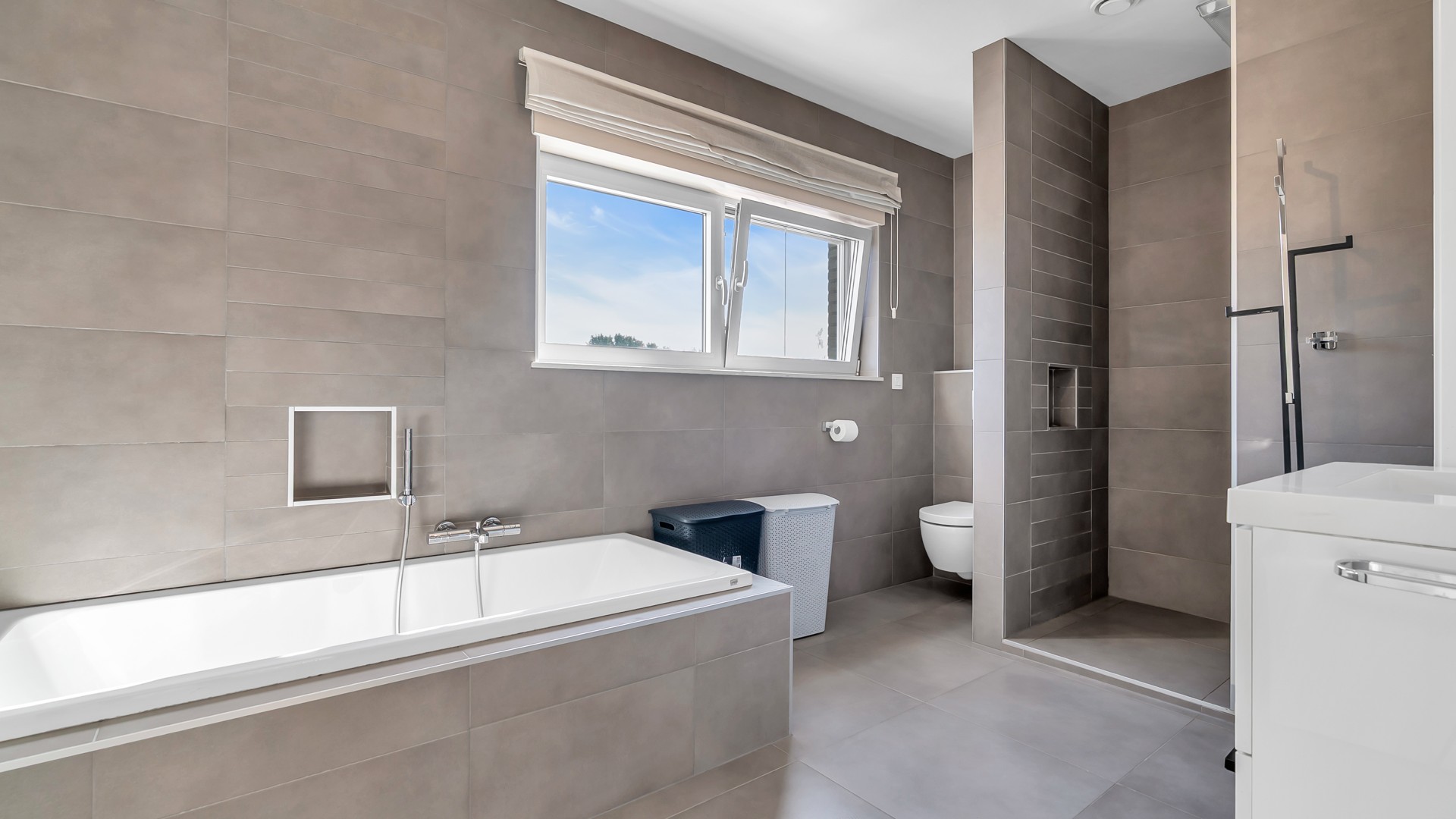 - Badkamervoorzieningen Ligbad, toilet, douche, wastafel, wastafelmeubel