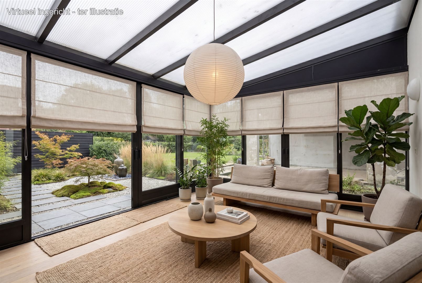 Tuinkamer (16 m2) met 2 dubbele schuiframen zodat u in de zomer optimaal kunt genieten van de tuin