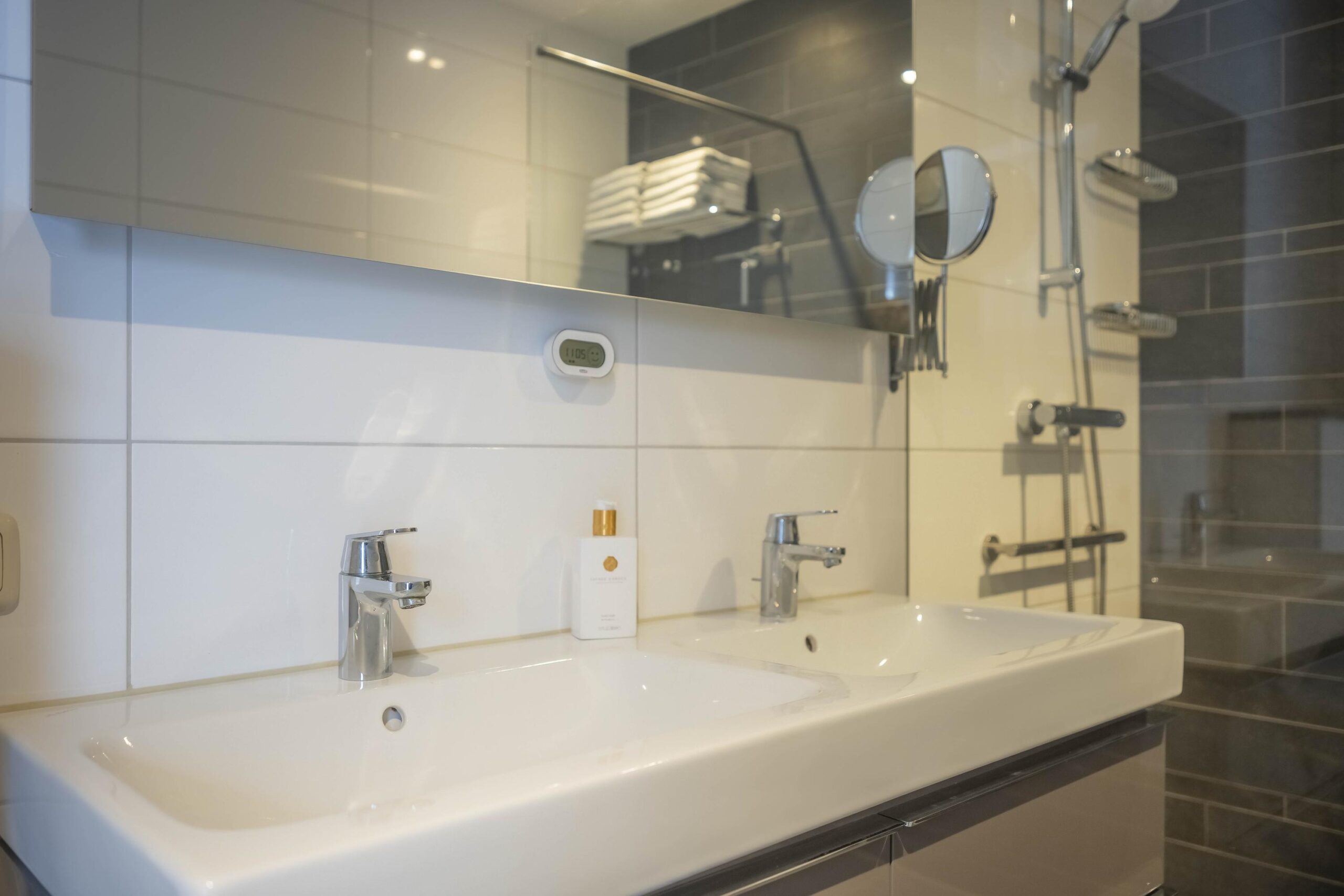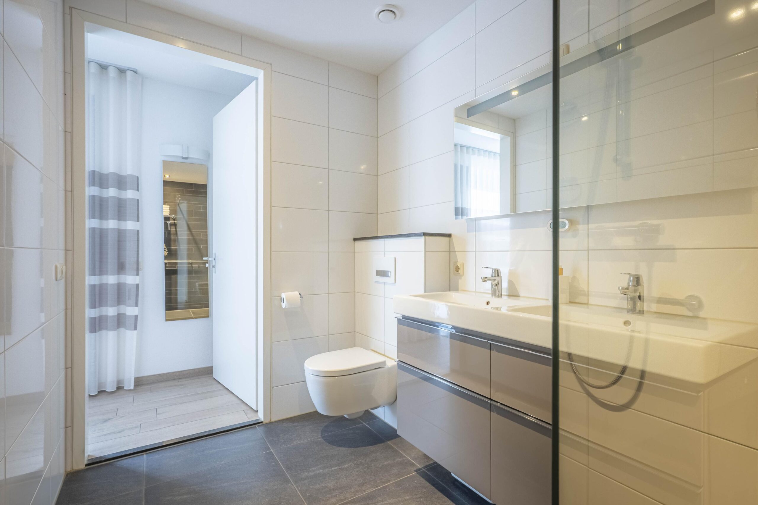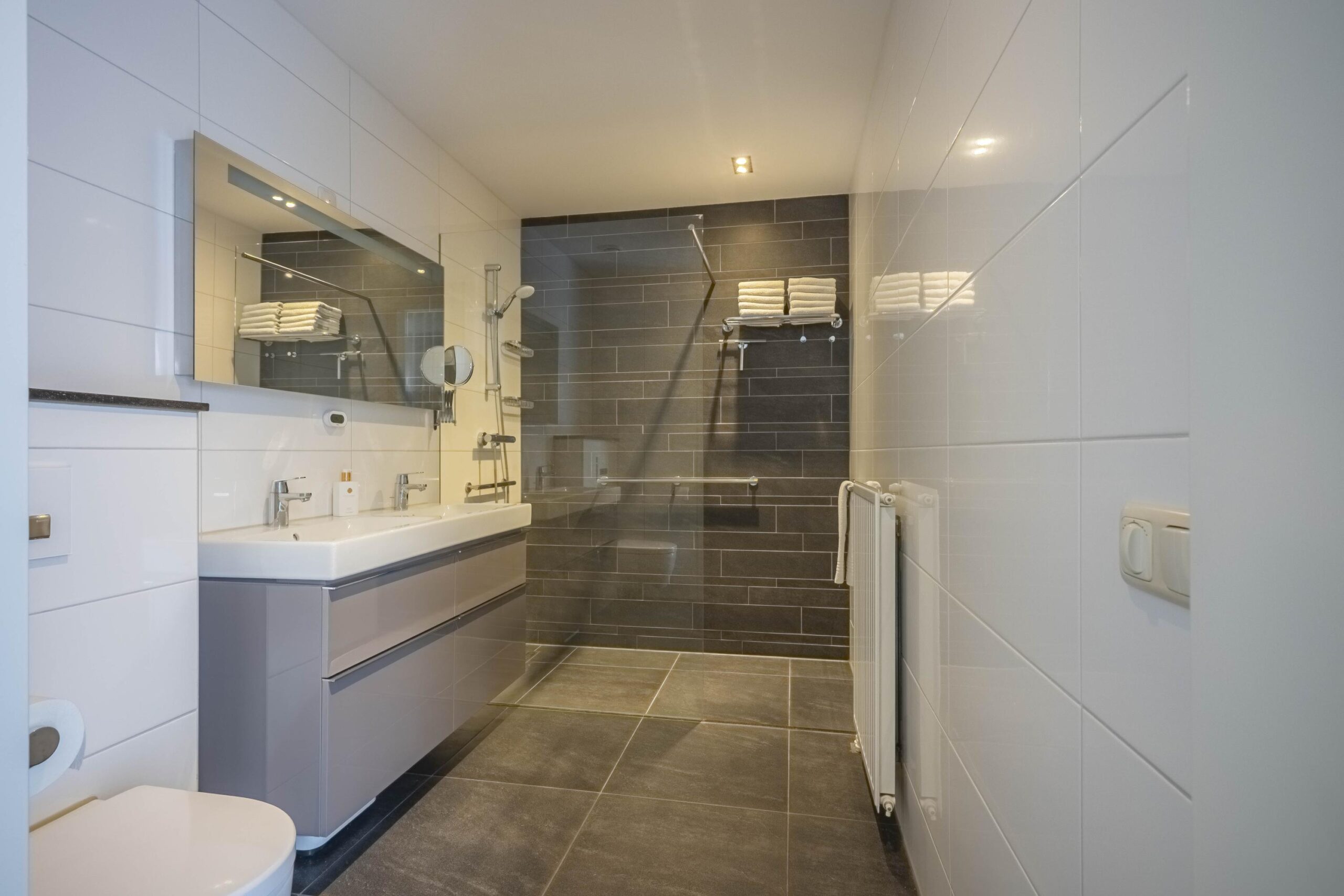 - Badkamervoorzieningen Toilet, dubbele wastafel, wastafelmeubel, inloopdouche