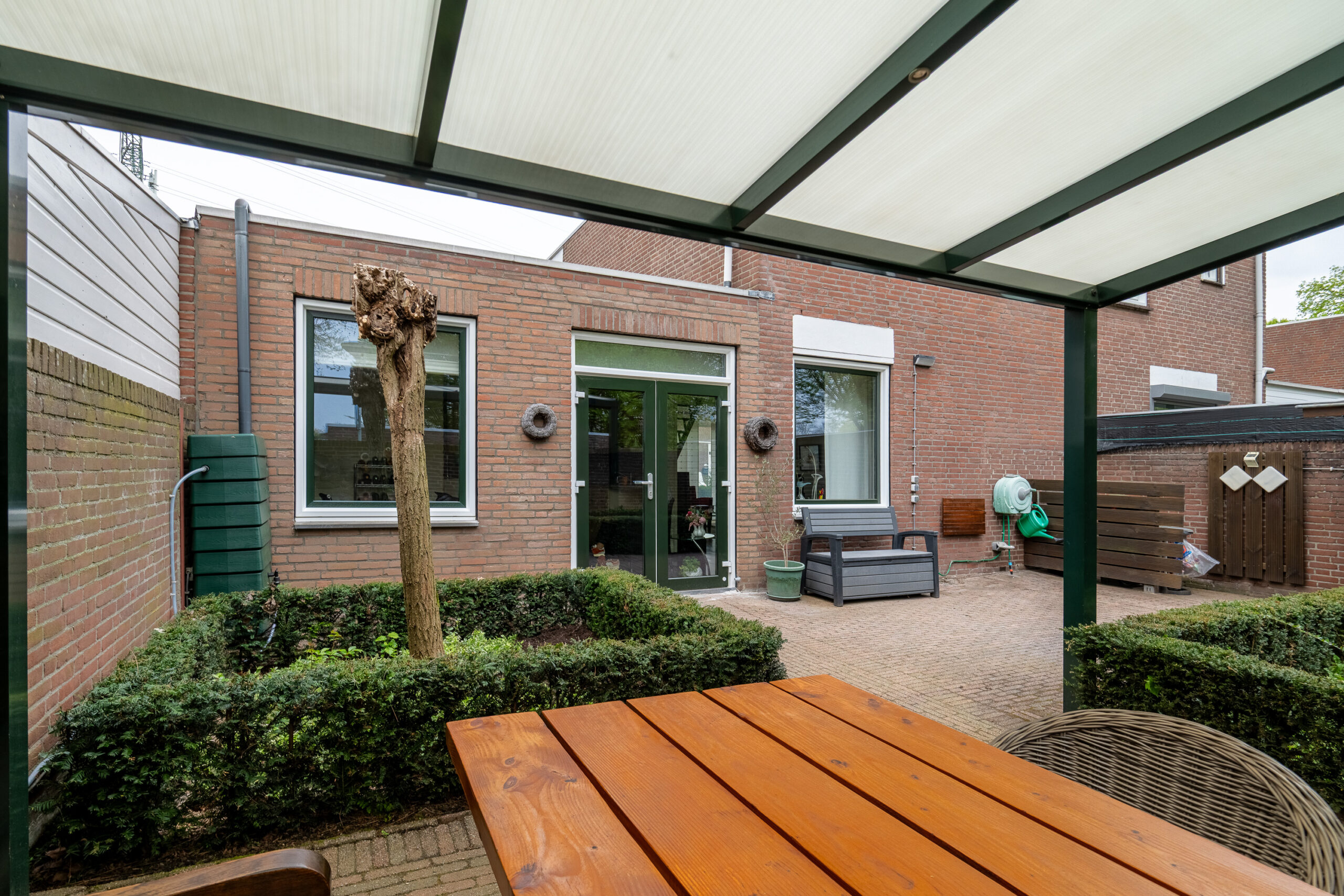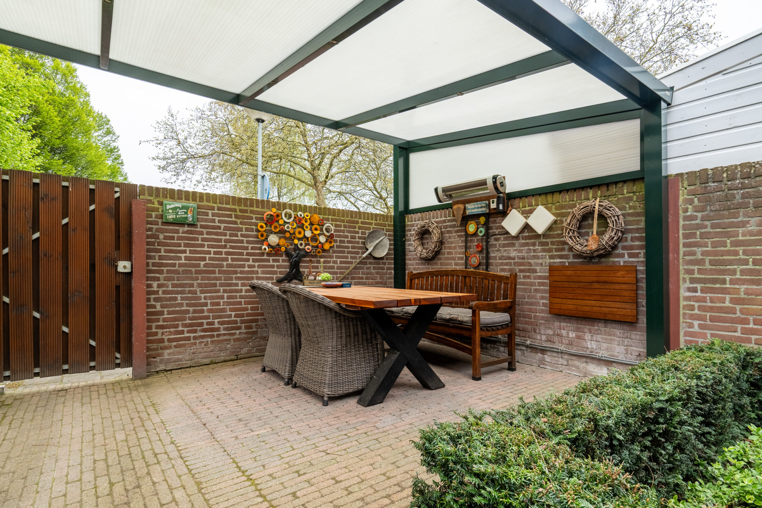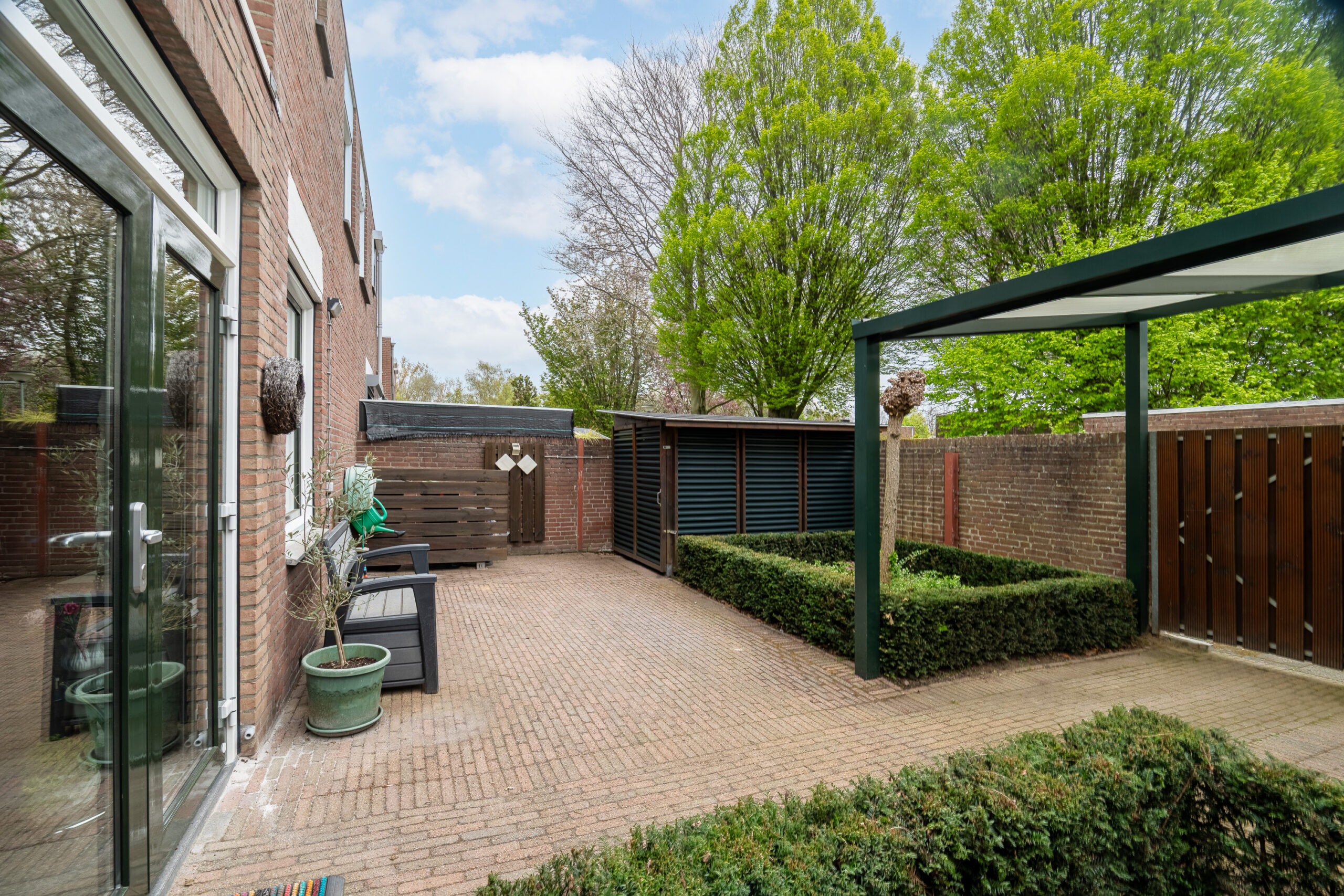 De onderhoudsvriendelijke, volledig omsloten achtertuin is bereikbaar via de achterom en de keuken. De tuin is geheel beklinkerd en beschikt over een aluminium overkapping met ingebouwde verlichting, een tuinhuis en uitstekende privacy.