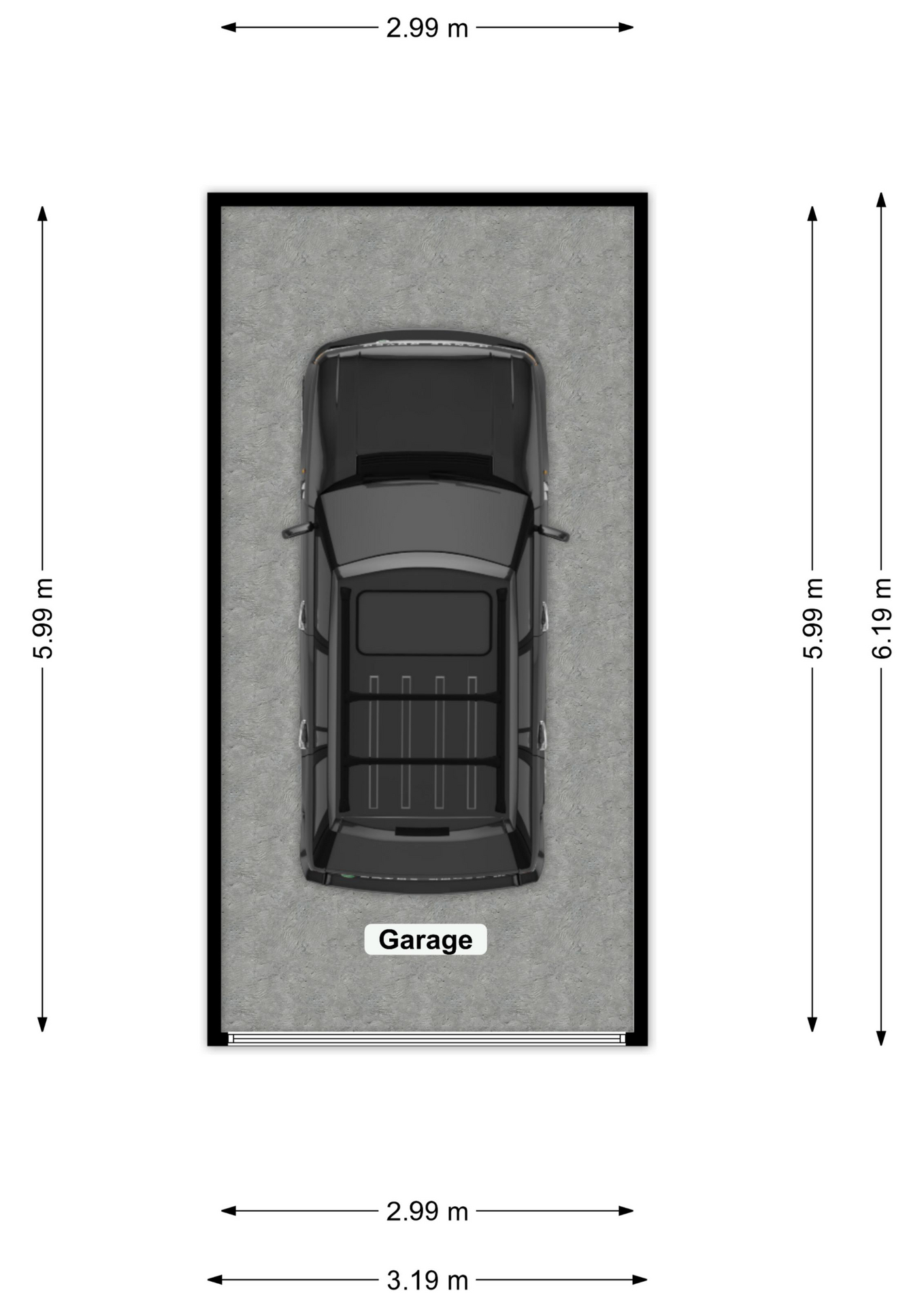 Op circa 30 meter van de woning ligt de nette, separate garage (ca. 5,99 x 2,99 m) met kantelpoort.