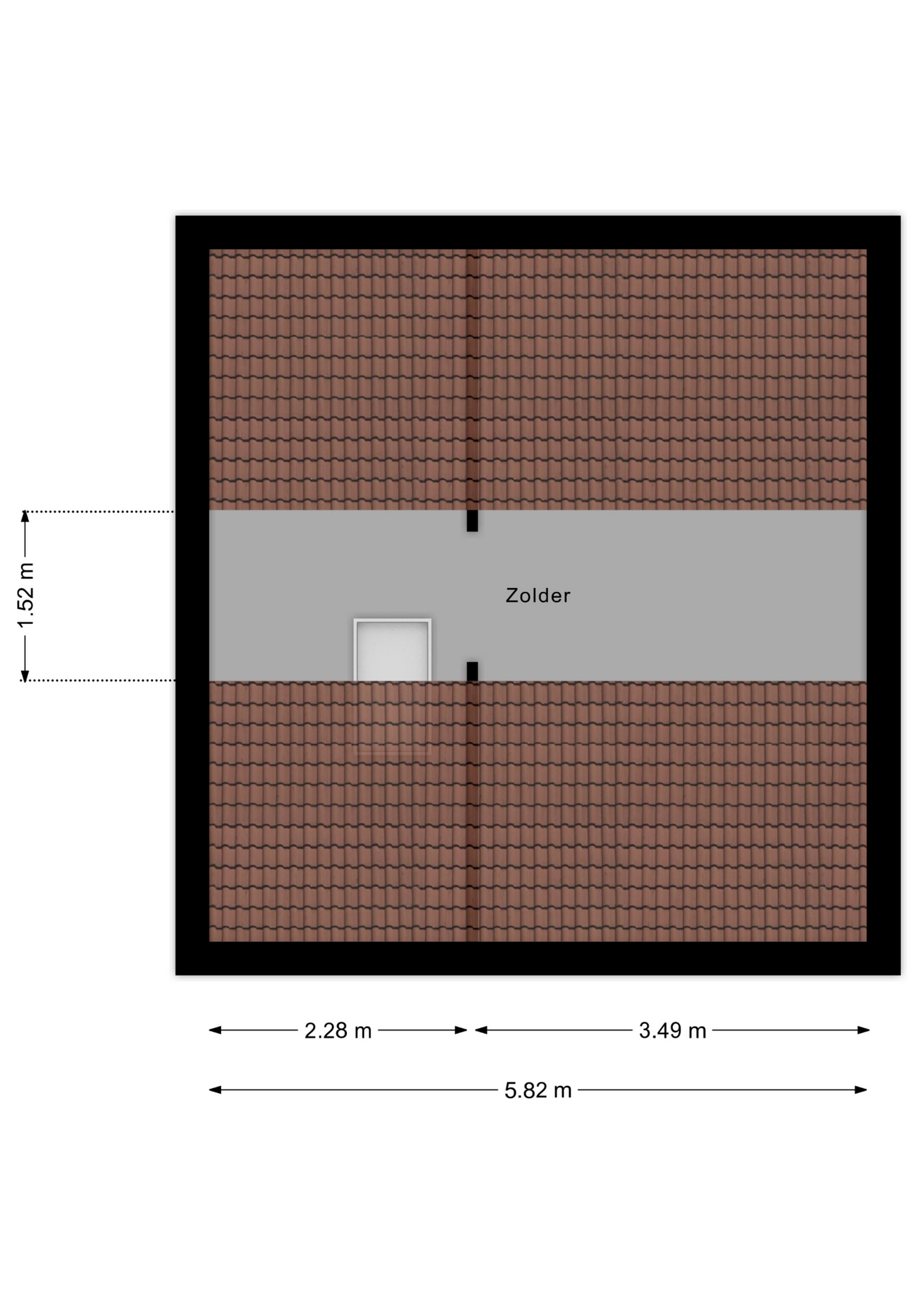 Via een vlizotrap te bereiken zolder van ca. 9 m², met de opstelling van de cv-ketel (Remeha Avanta, eigendom, 2019).