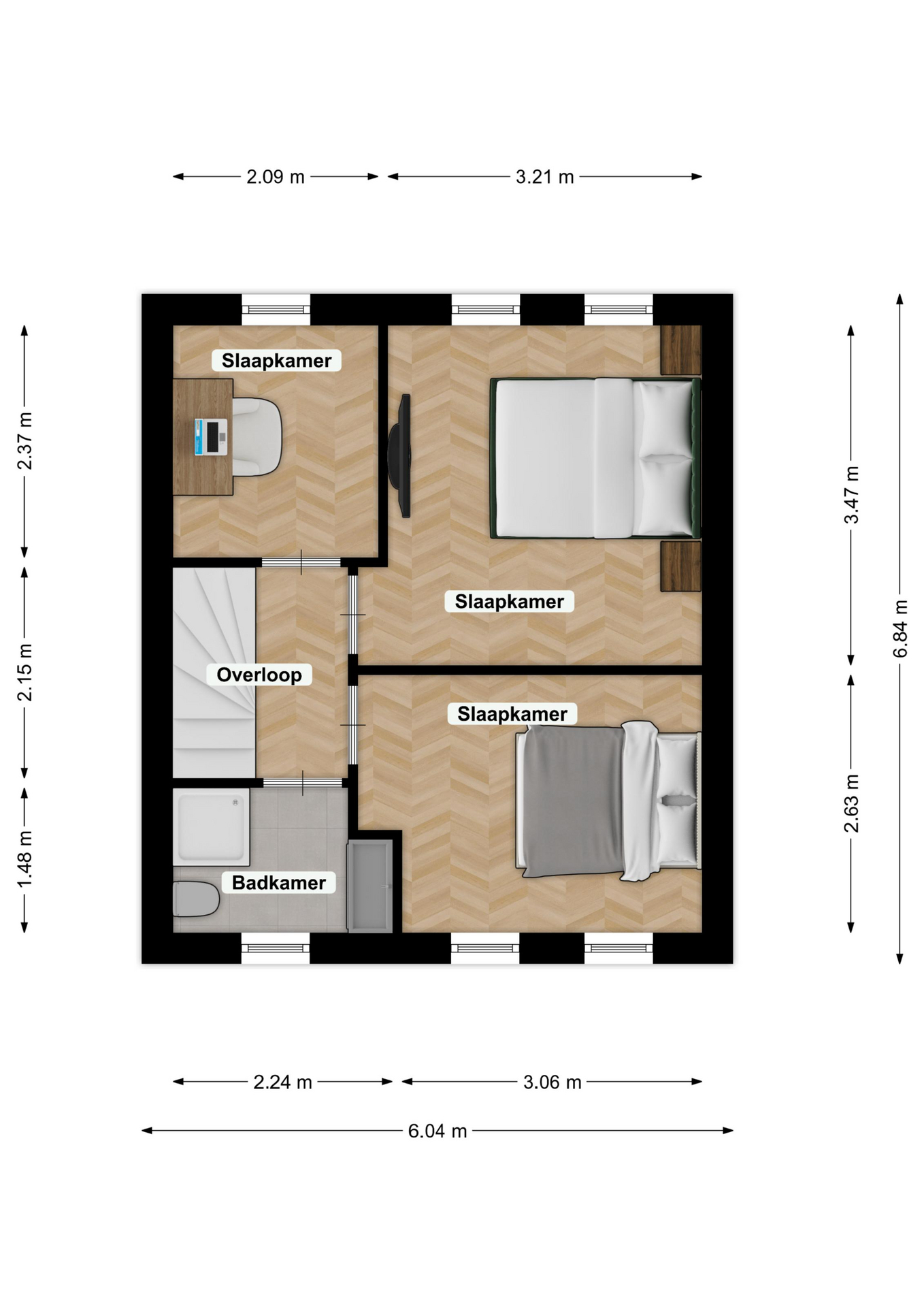 Alle kamers zijn voorzien van doorlopende laminaatvloeren, strak stucwerk en verlaagde plafonds met geïntegreerde ledverlichting. De moderne badkamer is compact maar zeer functioneel ingericht met een inloopdouche, handdoekradiator, tweede vrijhangend toilet en een wastafel met spiegelkast en bijpassend meubel. Ook hier zorgt een raam voor natuurlijke ventilatie.