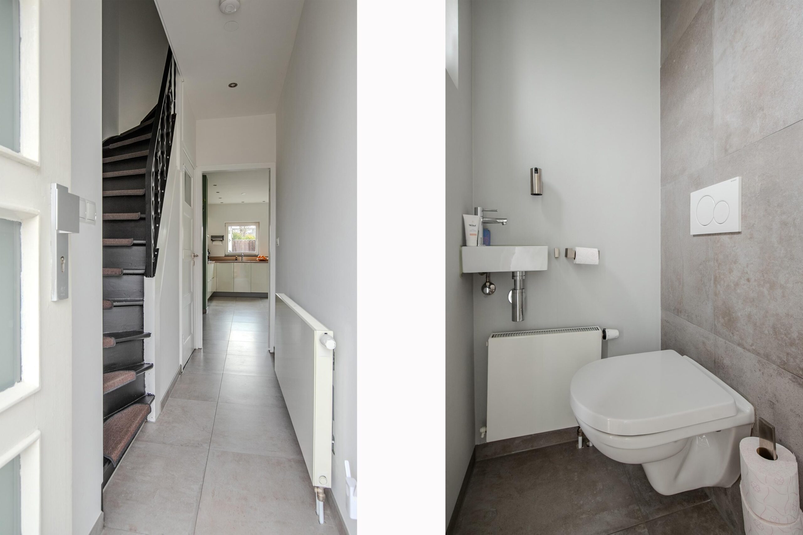 Via de onderhoudsvrije voortuin en oprit bereikt u de entree. De ontvangsthal is strak afgewerkt en voorzien van een moderne wandradiator, een volledig vernieuwde meterkast en een garderobe. Daarnaast is er een modern vrijhangend toilet met fonteintje, radiator en raam voor natuurlijke ventilatie.