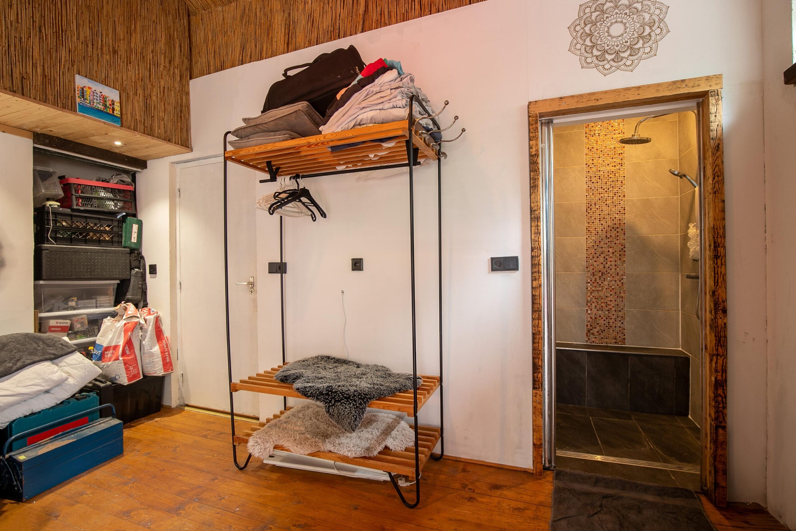 De studio bestaat uit een grote kamer die kan dienen als woon- en/of slaapkamer, een volledig betegeld toilet met wastafel en een doucheruimte, plus een extra kamer die perfect is als slaapkamer of berging. Via de achterzijde is een uitgang naar buiten aanwezig, waardoor een eigen entree eenvoudig te realiseren is. Dit maakt de studio ideaal voor gastenverblijf, mantelzorg of verhuur.