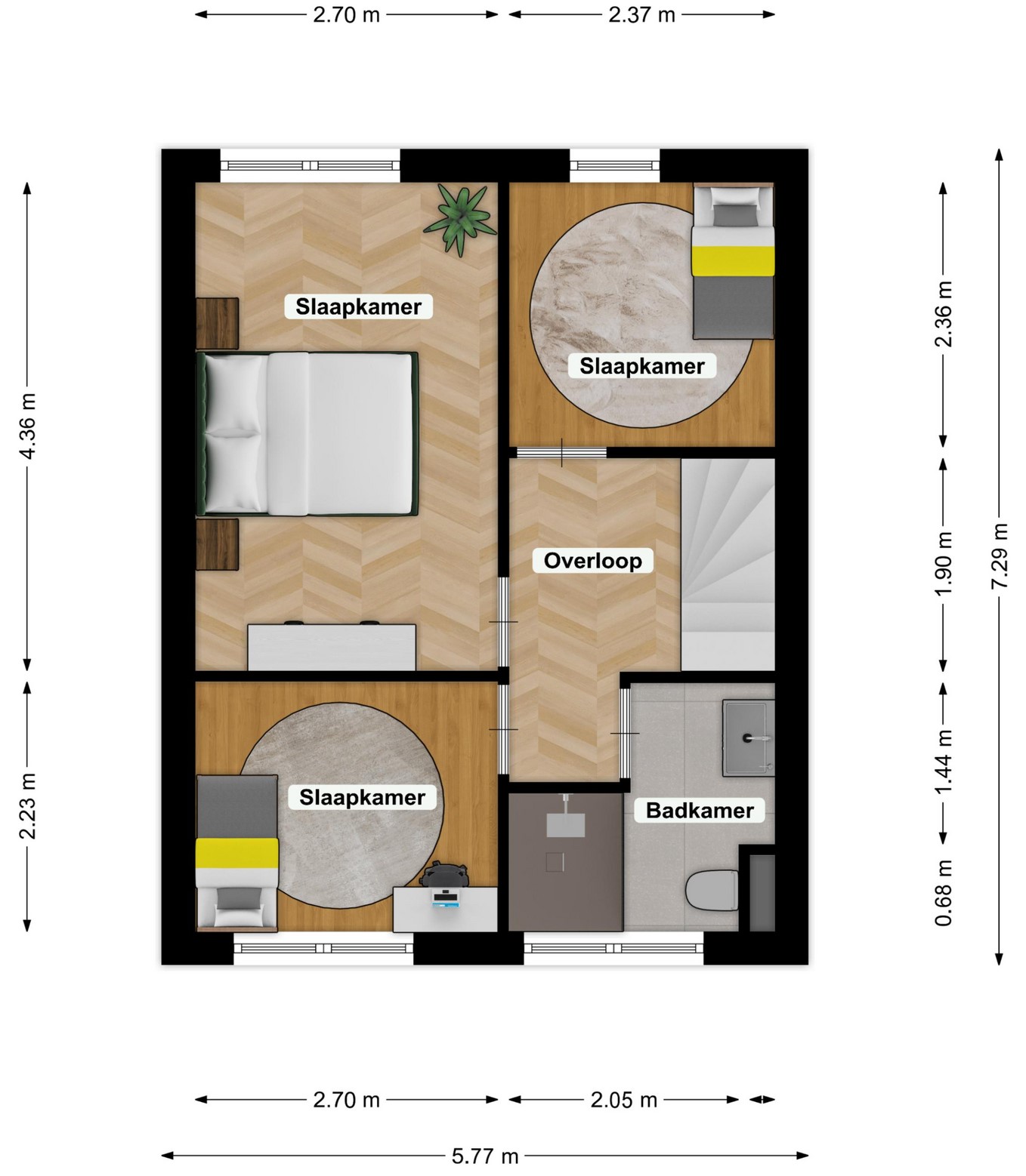 Overloop met toegang tot drie nette slaapkamers, alle voorzien van een brede laminaatvloer en welke respectievelijk groot zijn: