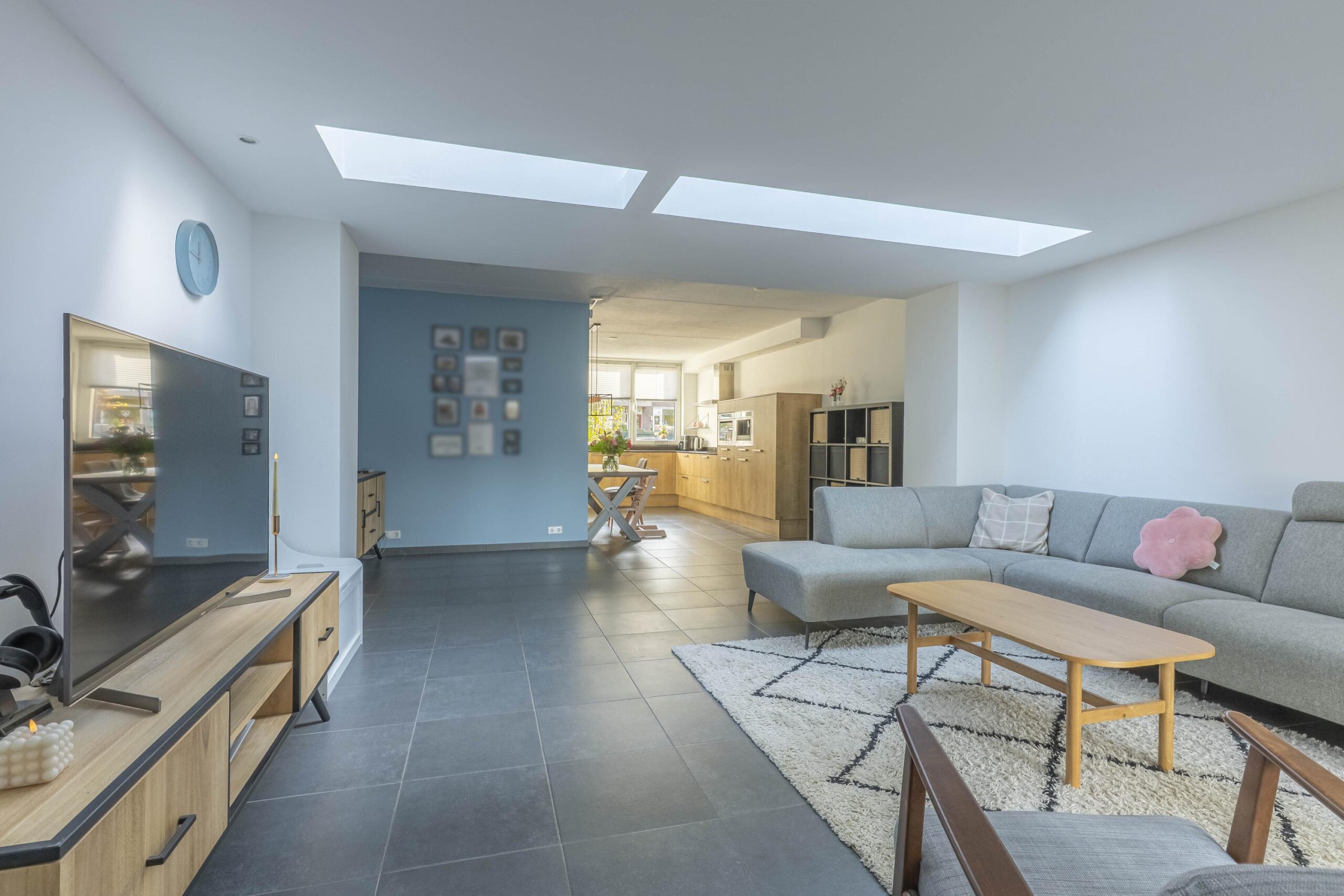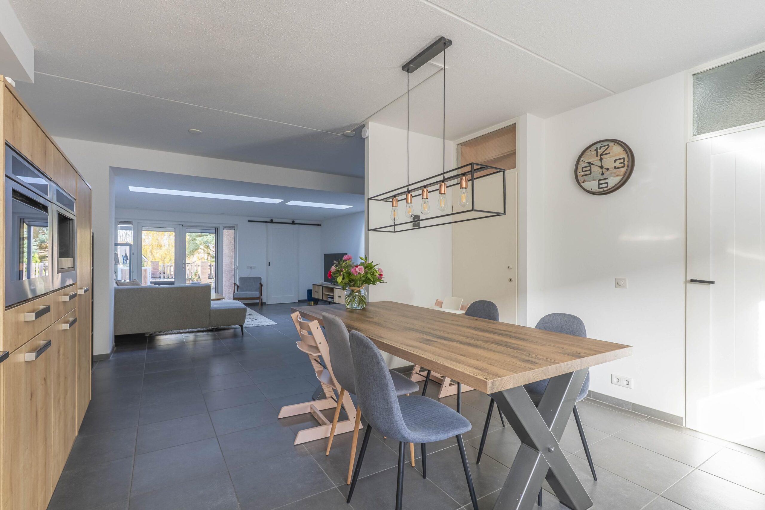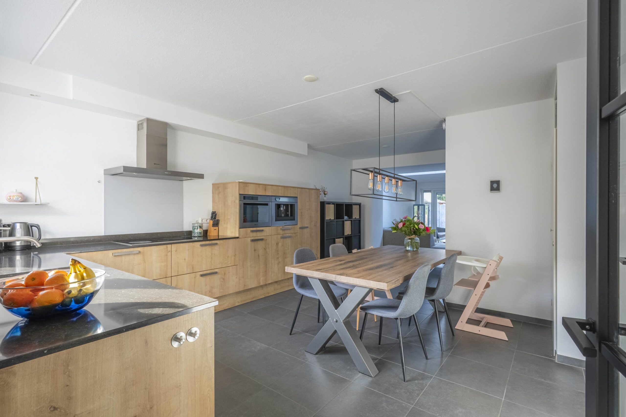 Via de onderhoudsvriendelijke voortuin en oprit bereikt u de entree/hal. De hal biedt plaats aan een garderobe en is voorzien van een moderne, uitgebreide meterkast (Hager, 2020). Vanuit de hal komt u direct in de sfeervolle open leefkeuken, een ware blikvanger van deze woning. De keuken is royaal opgezet in een hoekopstelling, met een massief aanrechtblad en voorzien van alle gewenste inbouwapparatuur: inductiekookplaat, schouwafzuigkap, vaatwasser (2022), combi-oven/magnetron, ingebouwde volautomatische koffiemachine en koelkast. Aansluitend bevindt zich de moderne toiletruimte, geheel betegeld en voorzien van een zwevend closet en mechanische ventilatie. Naast het toilet is een praktische trapkast aanwezig, ideaal voor extra bergruimte. Achter de keuken ligt de royale, uitgebouwde woonkamer. Dankzij de grote lichtstraat en de dubbele openslaande tuindeuren geniet u hier van voldoende daglicht en direct tuincontact, perfect voor lange zomeravonden of gezellige winterdagen. De woonkamer is sfeervol in te delen, beschikt over ingebouwde ledverlichting en is voorzien van vloerverwarming onder een donkere plavuizenvloer. Via de woonkamer bereikt u de praktische bijkeuken/wasruimte, met witgoedaansluitingen, de verdeler van de vloerverwarming en een raam voor natuurlijke ventilatie. De totale leefruimte op de begane grond, (woonkamer en keuken samen), bedraagt circa 50 m², wat zorgt voor een royaal en open geheel.
