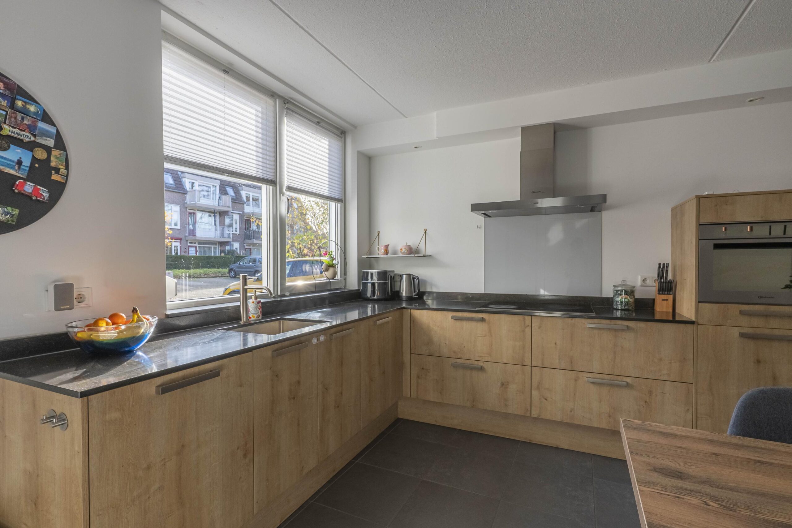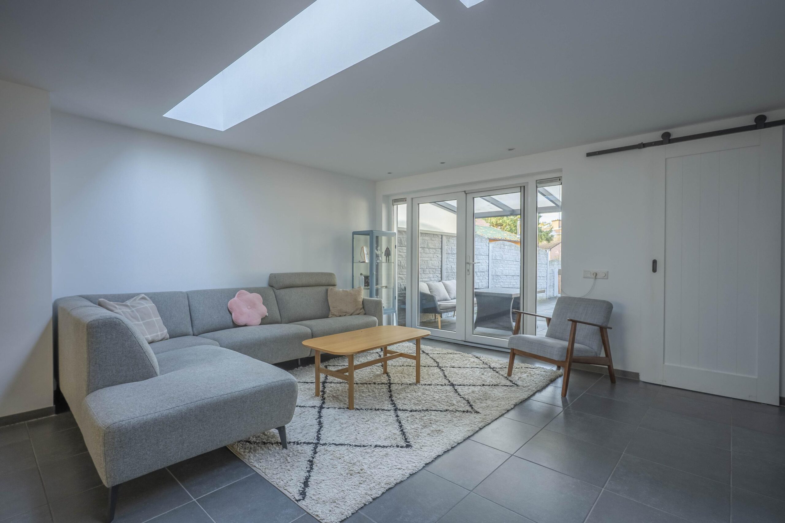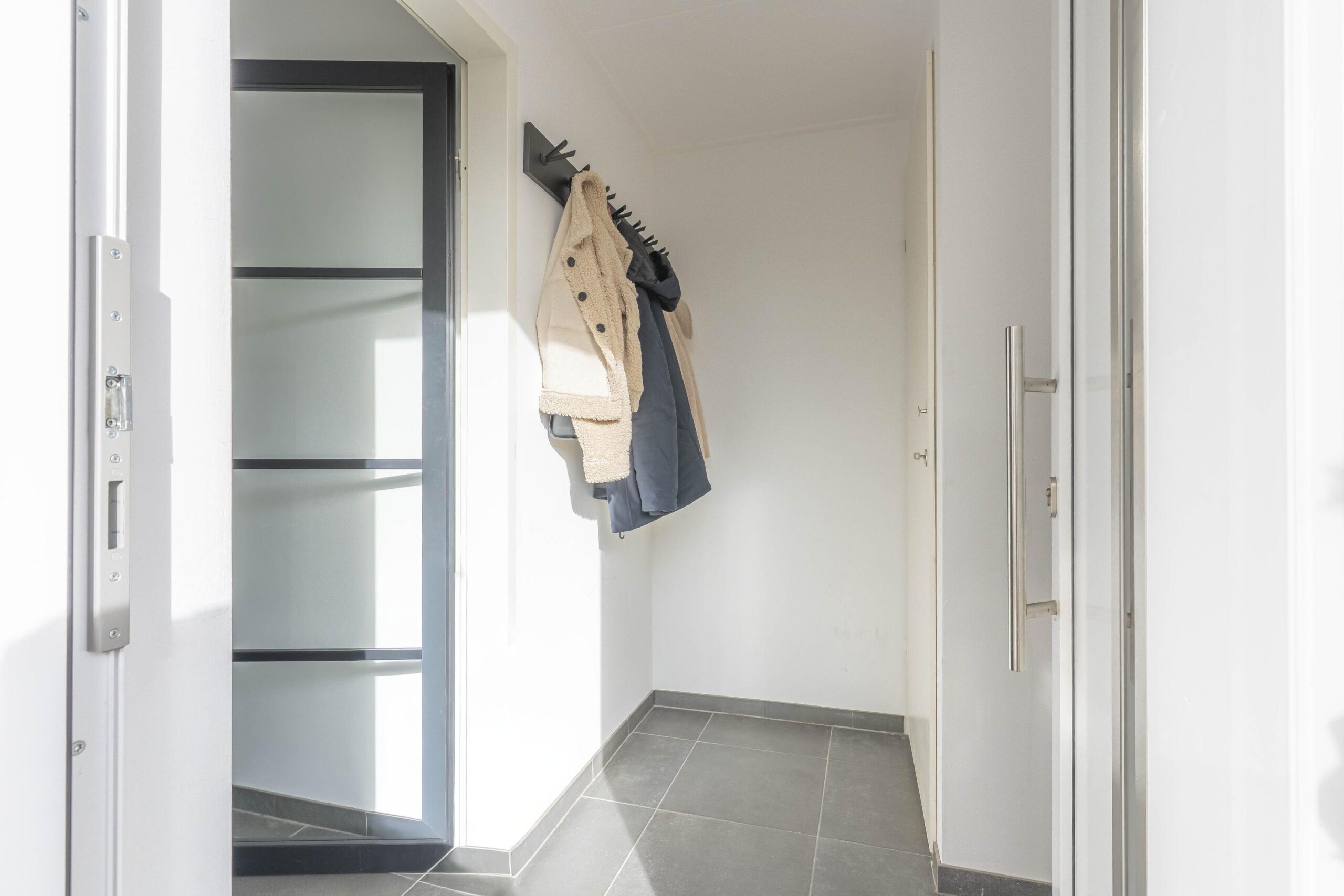 Via de onderhoudsvriendelijke voortuin en oprit bereikt u de entree/hal. De hal biedt plaats aan een garderobe en is voorzien van een moderne, uitgebreide meterkast (Hager, 2020). Vanuit de hal komt u direct in de sfeervolle open leefkeuken, een ware blikvanger van deze woning. De keuken is royaal opgezet in een hoekopstelling, met een massief aanrechtblad en voorzien van alle gewenste inbouwapparatuur: inductiekookplaat, schouwafzuigkap, vaatwasser (2022), combi-oven/magnetron, ingebouwde volautomatische koffiemachine en koelkast. Aansluitend bevindt zich de moderne toiletruimte, geheel betegeld en voorzien van een zwevend closet en mechanische ventilatie. Naast het toilet is een praktische trapkast aanwezig, ideaal voor extra bergruimte. Achter de keuken ligt de royale, uitgebouwde woonkamer. Dankzij de grote lichtstraat en de dubbele openslaande tuindeuren geniet u hier van voldoende daglicht en direct tuincontact, perfect voor lange zomeravonden of gezellige winterdagen. De woonkamer is sfeervol in te delen, beschikt over ingebouwde ledverlichting en is voorzien van vloerverwarming onder een donkere plavuizenvloer. Via de woonkamer bereikt u de praktische bijkeuken/wasruimte, met witgoedaansluitingen, de verdeler van de vloerverwarming en een raam voor natuurlijke ventilatie. De totale leefruimte op de begane grond, (woonkamer en keuken samen), bedraagt circa 50 m², wat zorgt voor een royaal en open geheel.