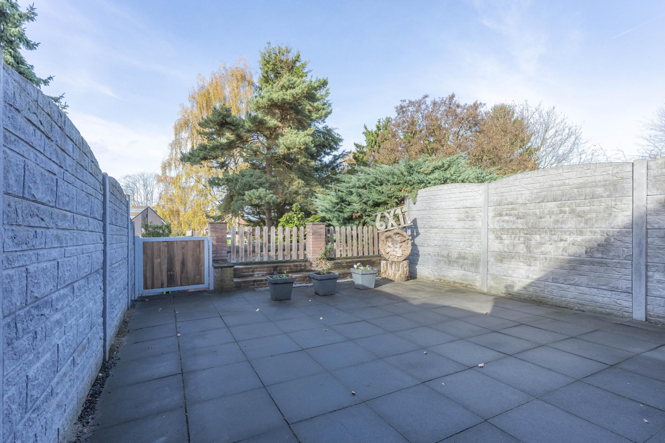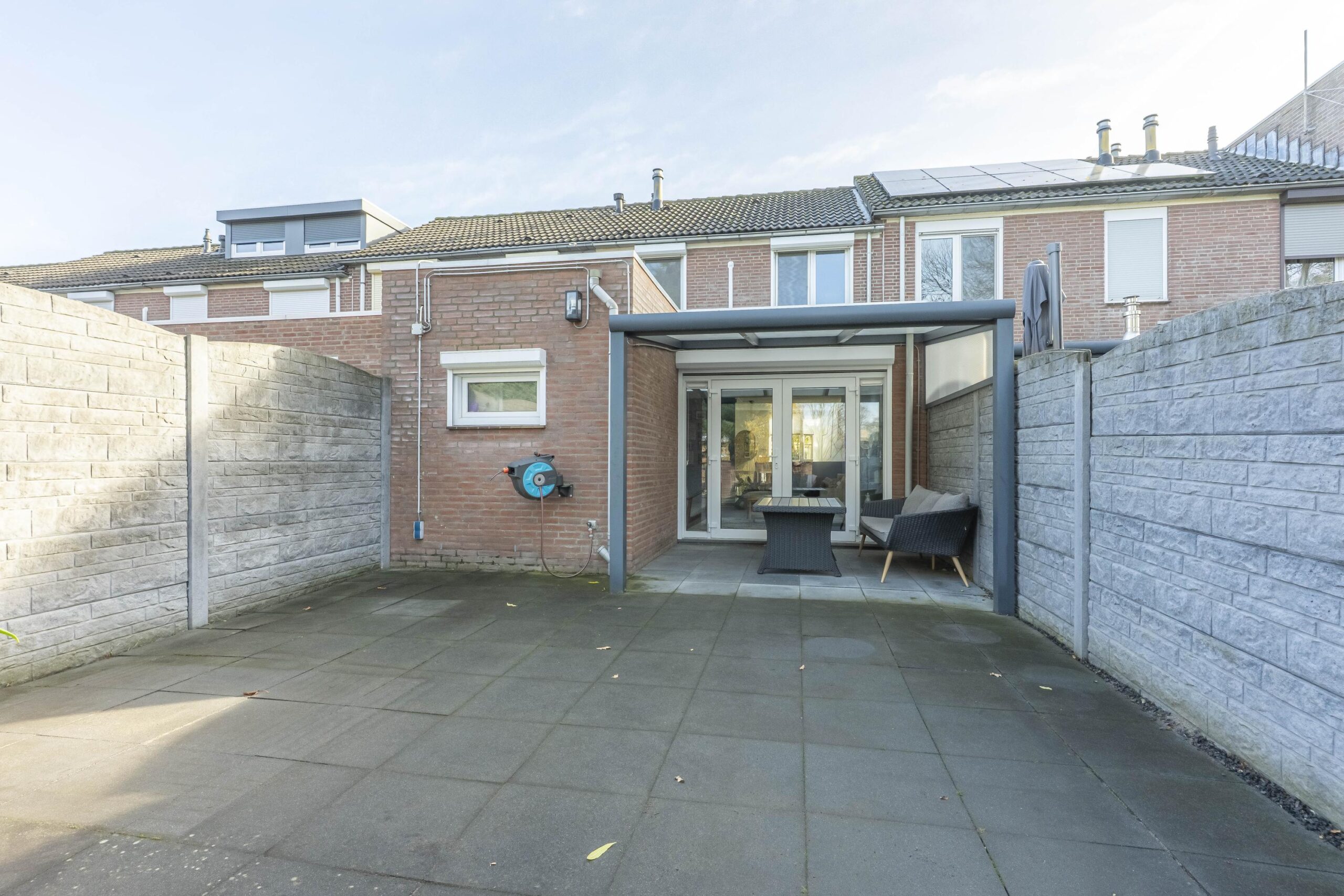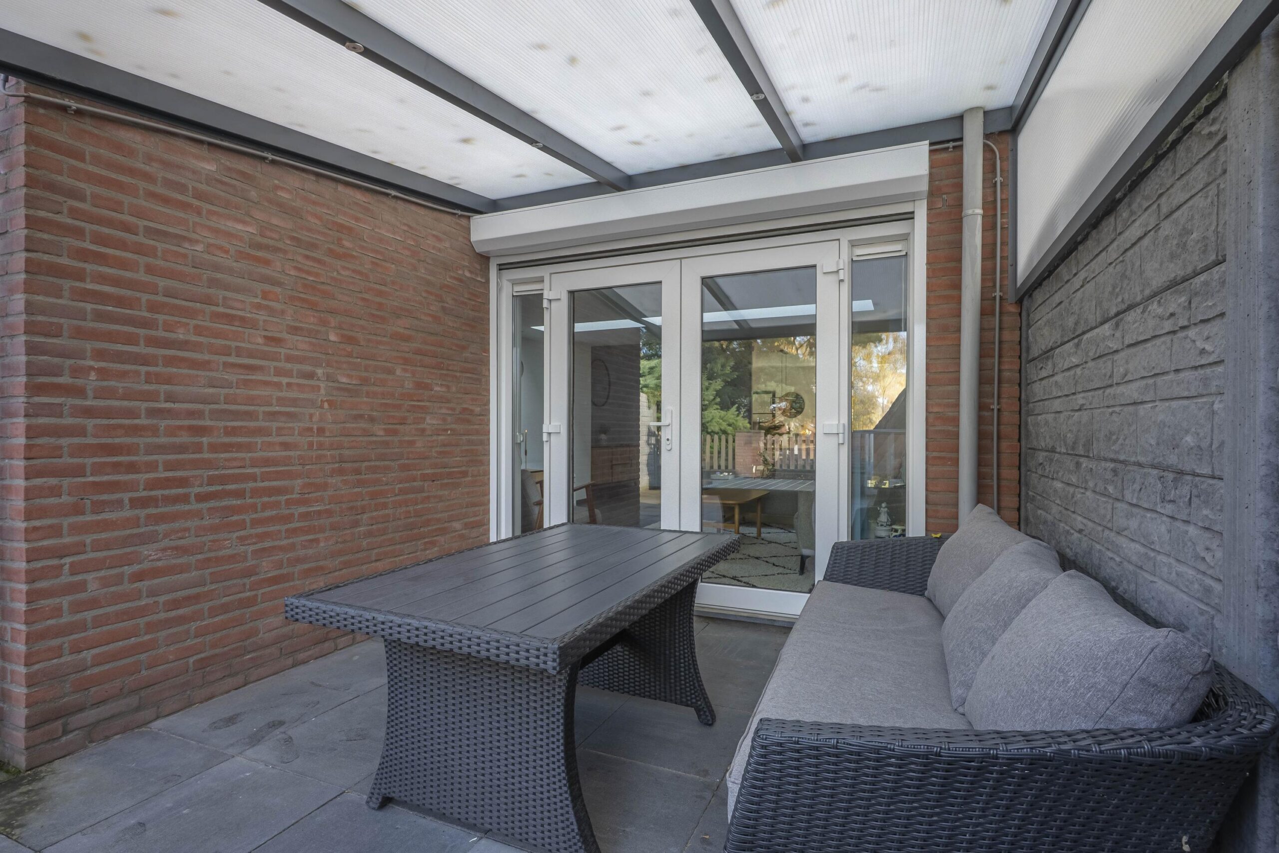 Via de openslaande tuindeuren of de achteringang bereikt u de ruime, geheel omsloten en zonnige achtertuin. Hier ervaart u volop rust en privacy. De tuin heeft een speels niveauverschil, wat het geheel een eigentijdse uitstraling geeft. Het gedeelte direct grenzend aan de woonkamer is volledig bestraat en voorzien van een aluminium terrasoverkapping met ingebouwde verlichting, een heerlijke plek om het hele jaar door buiten te zitten. Achterin de tuin bevindt zich een ruime, stenen berging, ideaal voor het stallen van fietsen, brommers of tuinmeubilair. Een tuin met voor ieder wat wils.