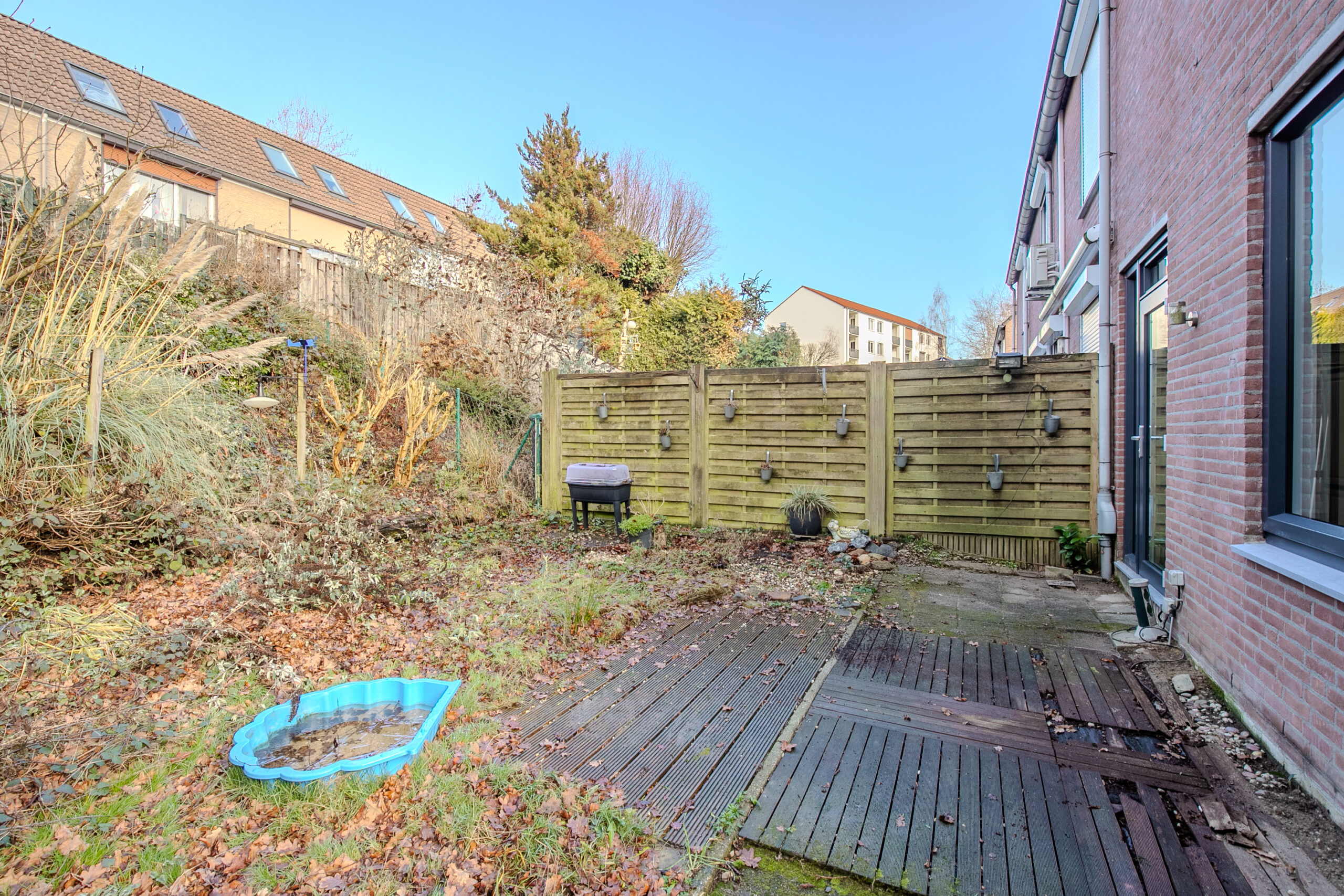 De achterzijde van de woning is eveneens via een achterliggend pad te bereiken.