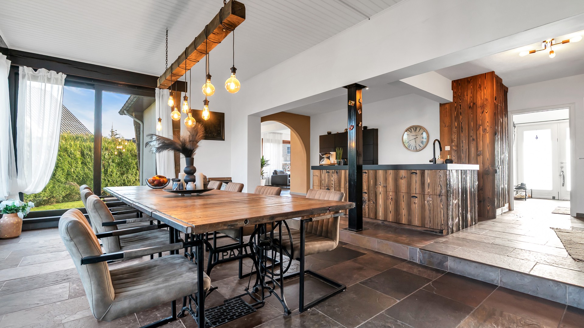 Bij het binnenkomen valt meteen de warme en lichtrijke sfeer op. De royale leefruimte met twee zithoeken baadt in natuurlijk licht dankzij grote raampartijen en vormt een uitnodigende plek voor ontspanning en gezellig samenzijn. De open, volledig uitgeruste keuken met eetruimte is het kloppend hart van de woning en leent zich perfect voor etentjes met familie en vrienden.