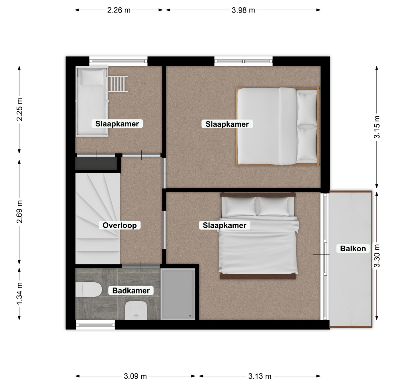 Alle maten zijn indicatief en kunnen afwijken van de werkelijkheid.