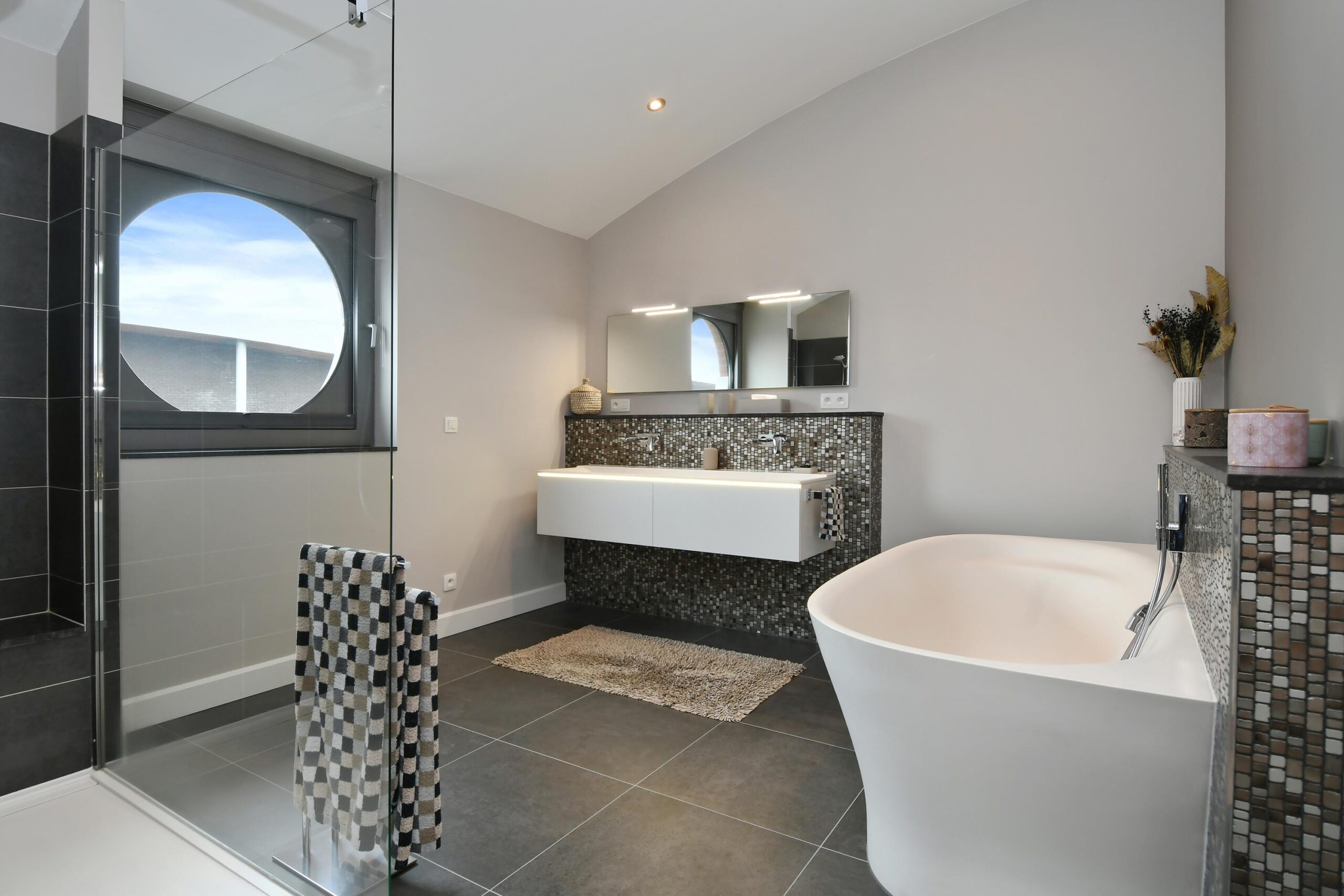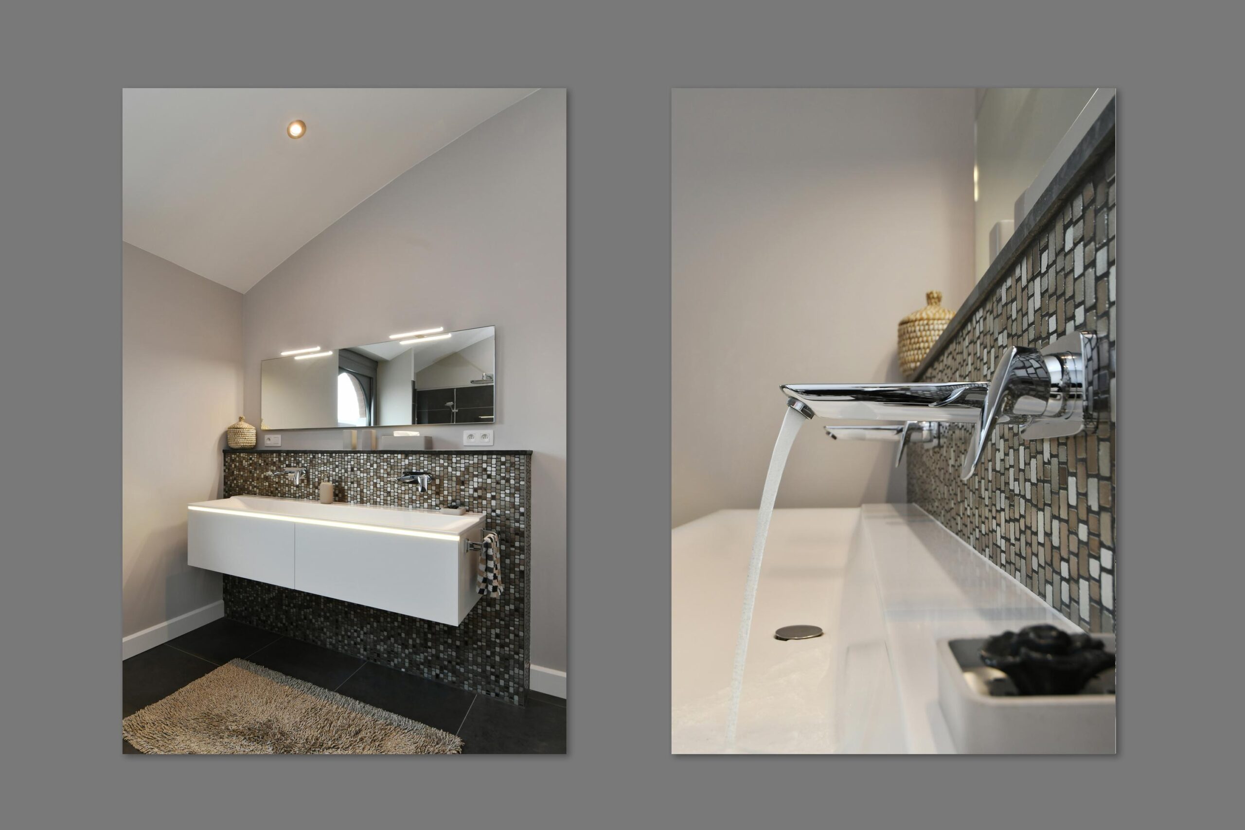 – Deze badkamer is voorzien van een dubbele wastafel, toilet, inloopdouche en ligbad