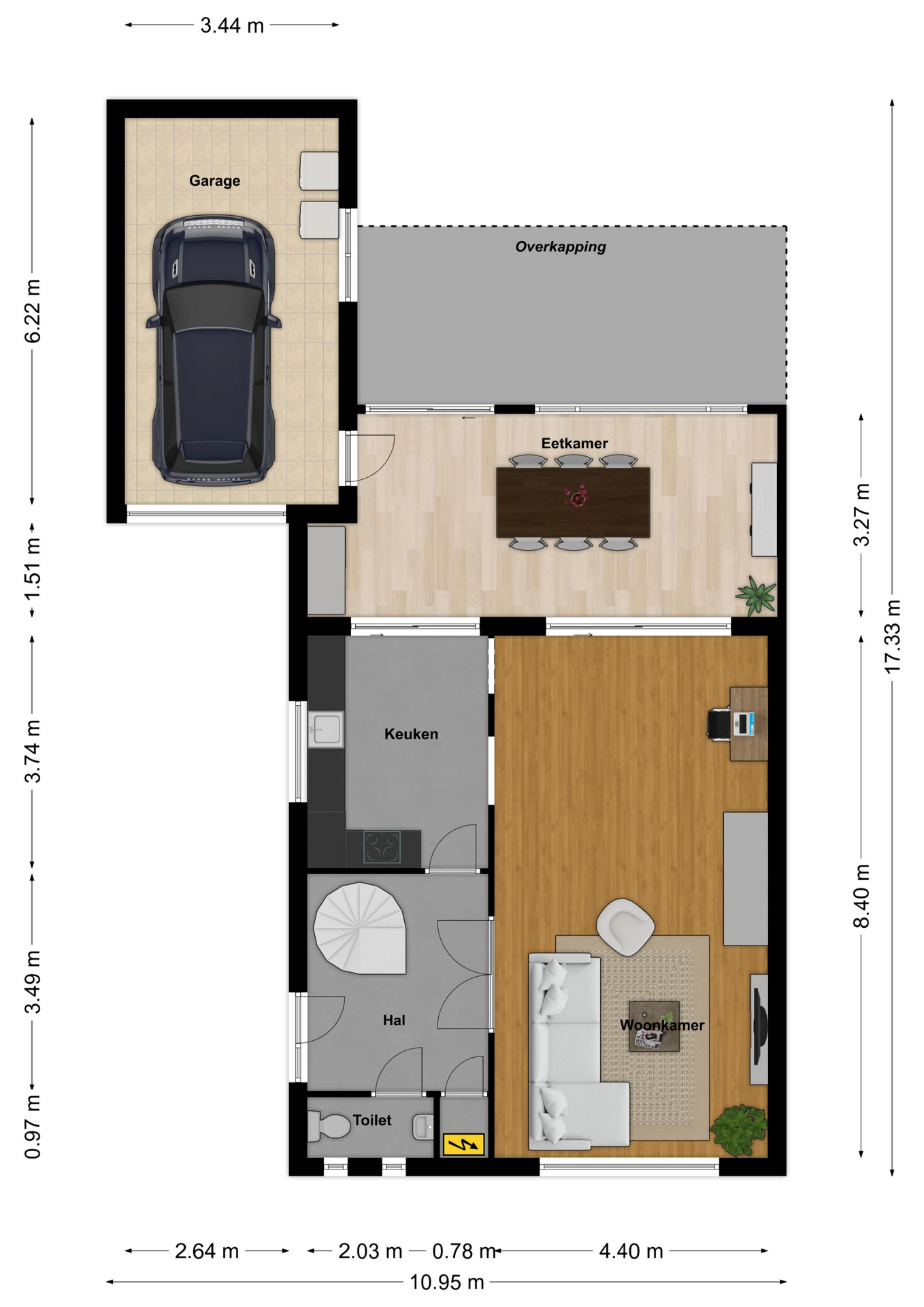 - Garage Aangebouwd steen, vrijstaand hout