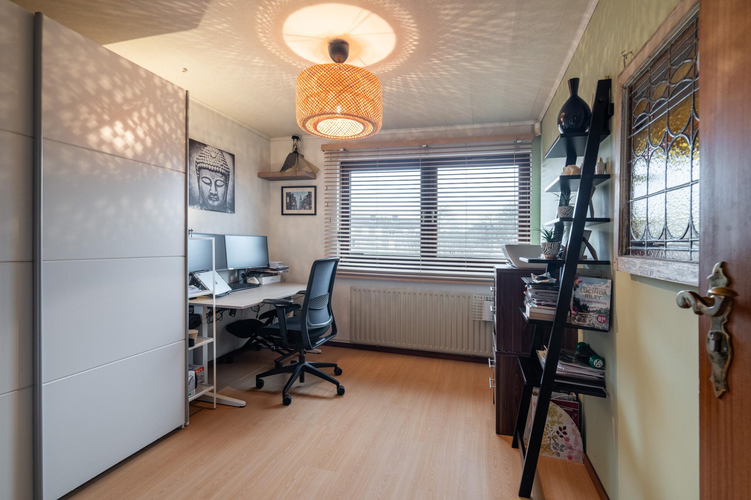 2) slaapkamer achterzijde 3.73m x 2.89 momenteel in gebruik als werkkamer.