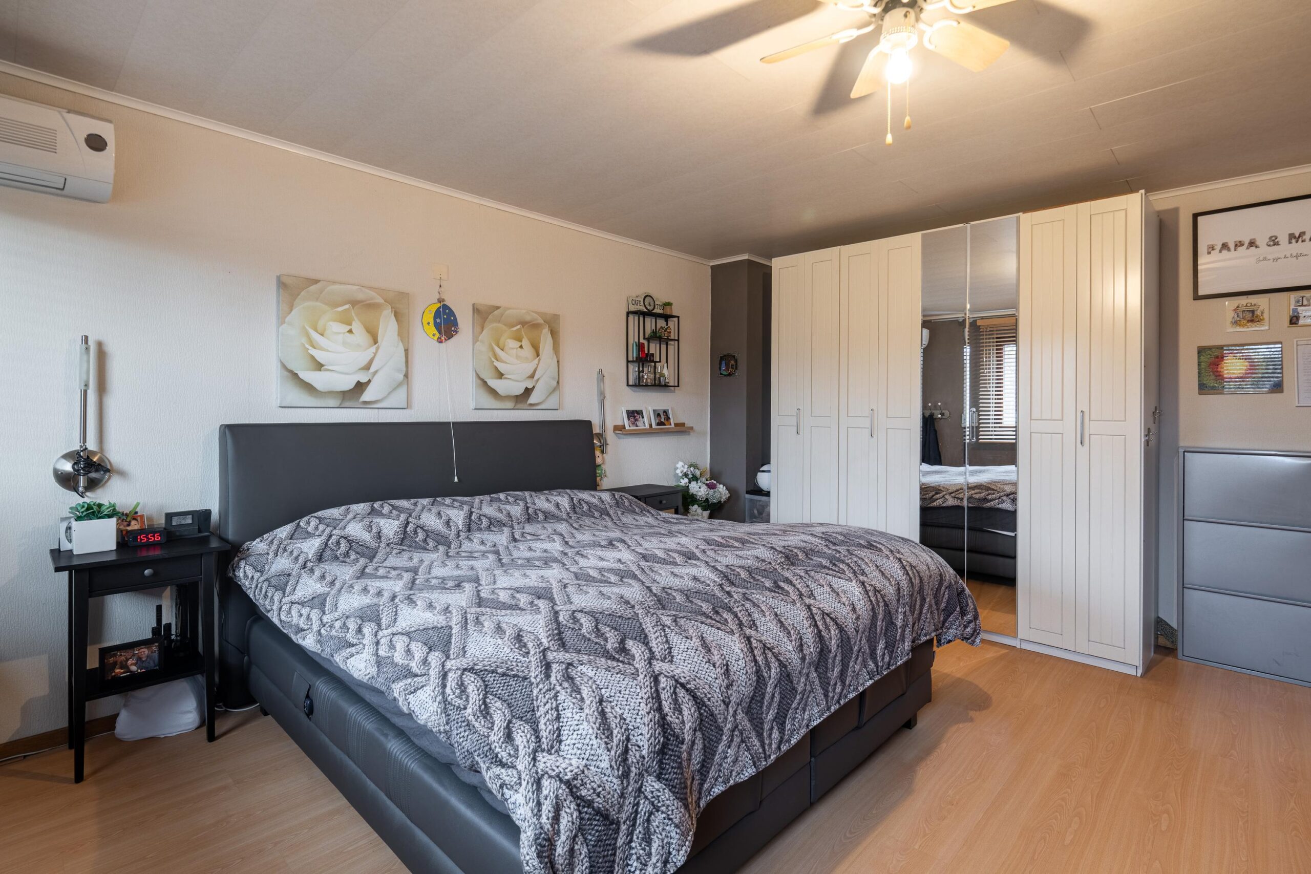 1) zeer riante slaapkamer achterzijde 4.40m x 4.82m voorzien van airco.