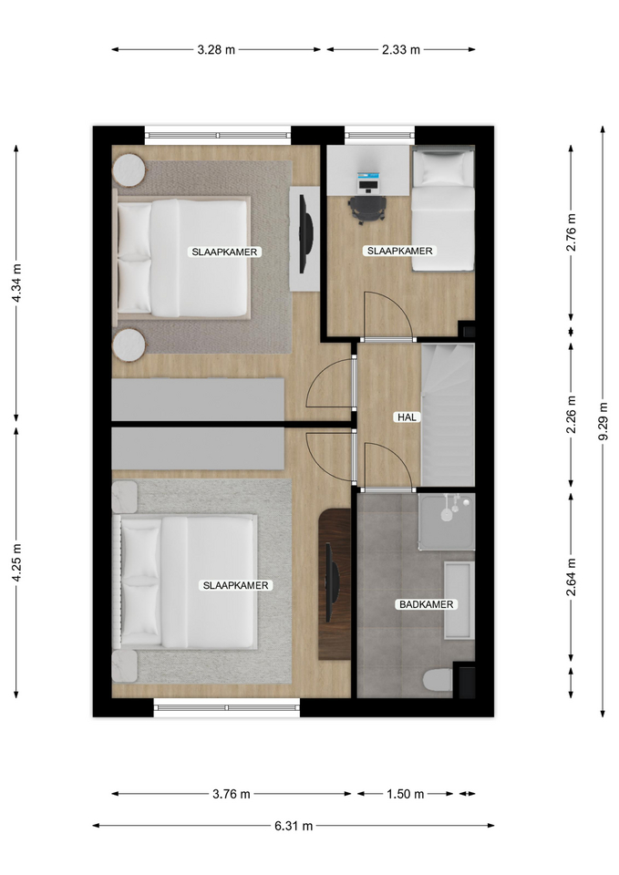 Slaapkamer achterzijde 2.76m x 2.33m, tevens voorzien van laminaatvloer.