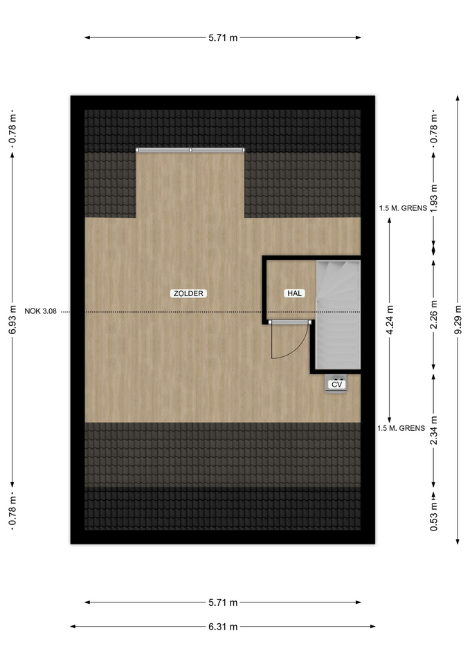 Via vaste trap te bereiken, ruime zolder. Door het plaatsen van een dakkapel biedt deze ruimte de mogelijkheid voor een 4e slaapkamer. Hier is de c.v.-ketel geplaatst (huurtoestel via Feenstra, € 24,67 p.m.).