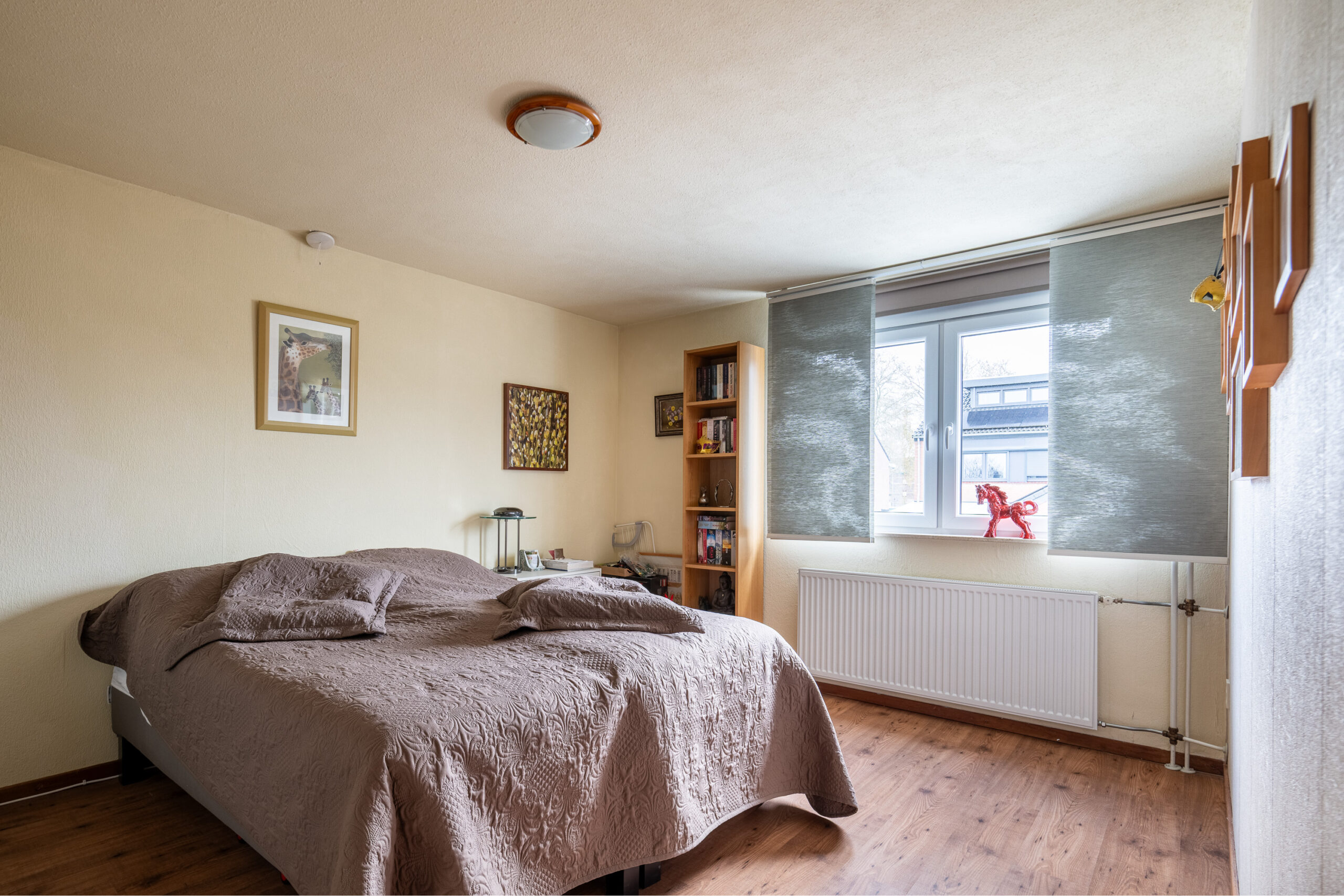 Ruime slaapkamer voorzijde 4.25m x 3.76m voorzien van laminaatvloer en elektrisch bedienbaar rolluik.