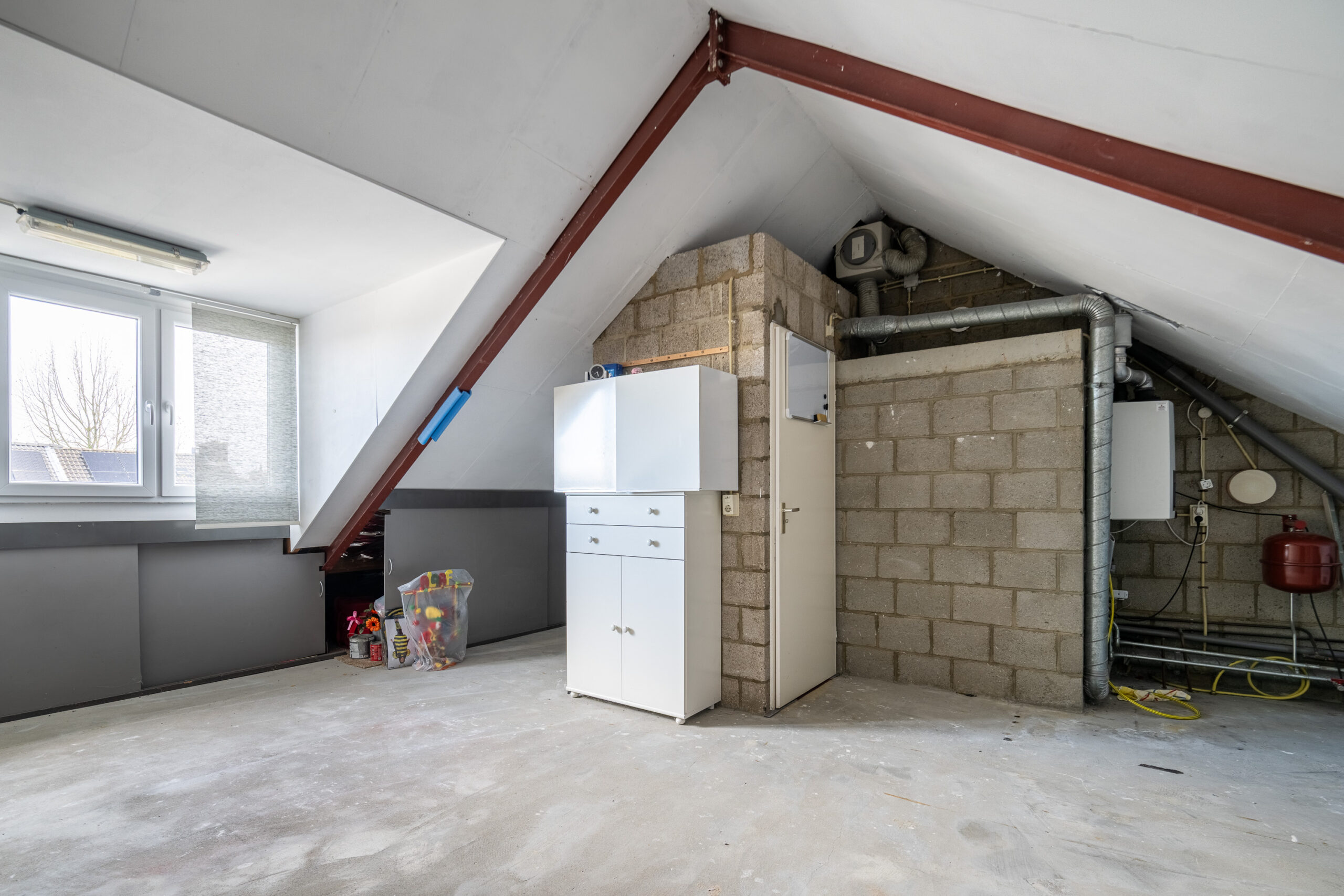 Garage met vliering voor extra opslag, voorzien van elektrische sectionaal poort. De garage is tevens voorzien van wateraansluiting, aansluitpunten witgoed en standplaats thuisbatterij.
