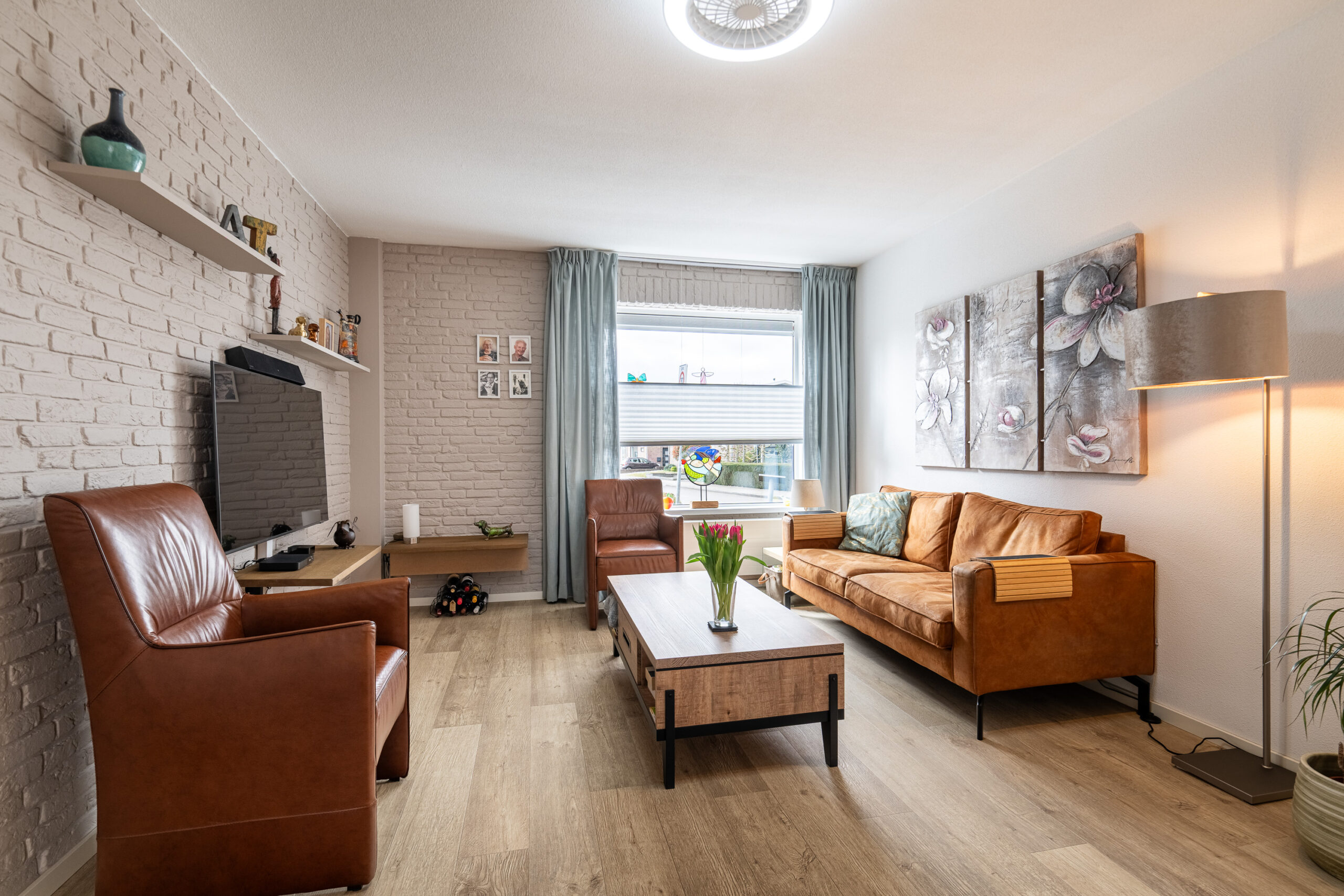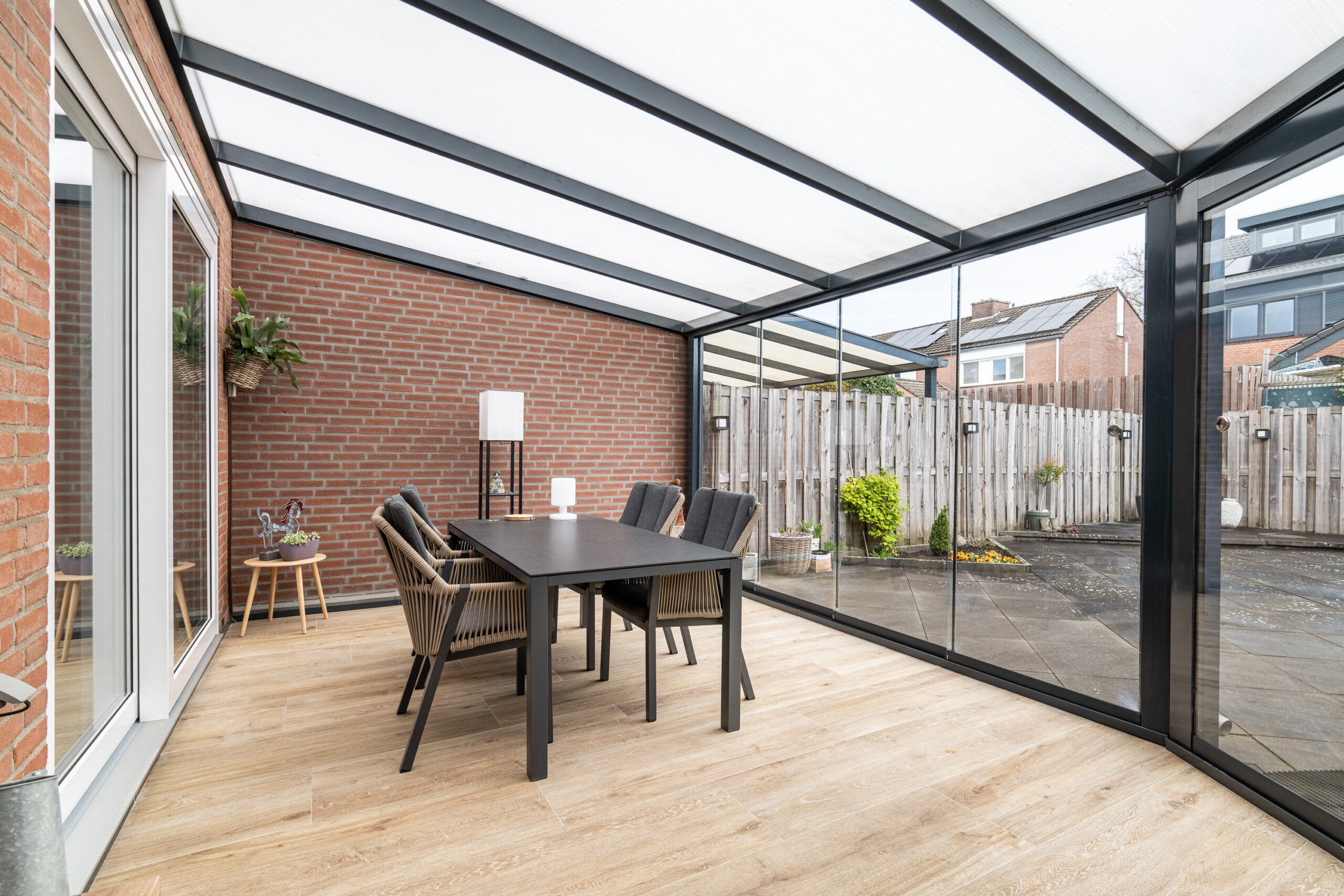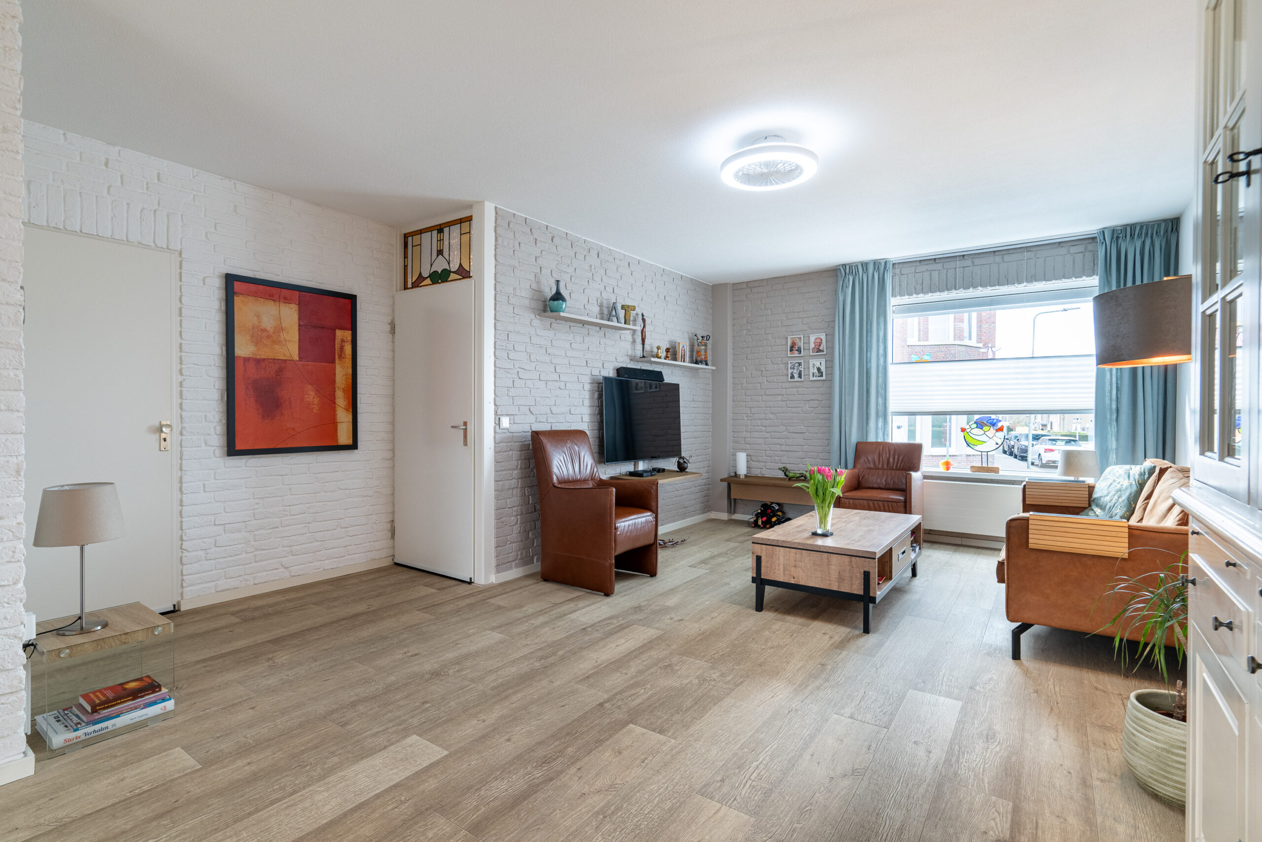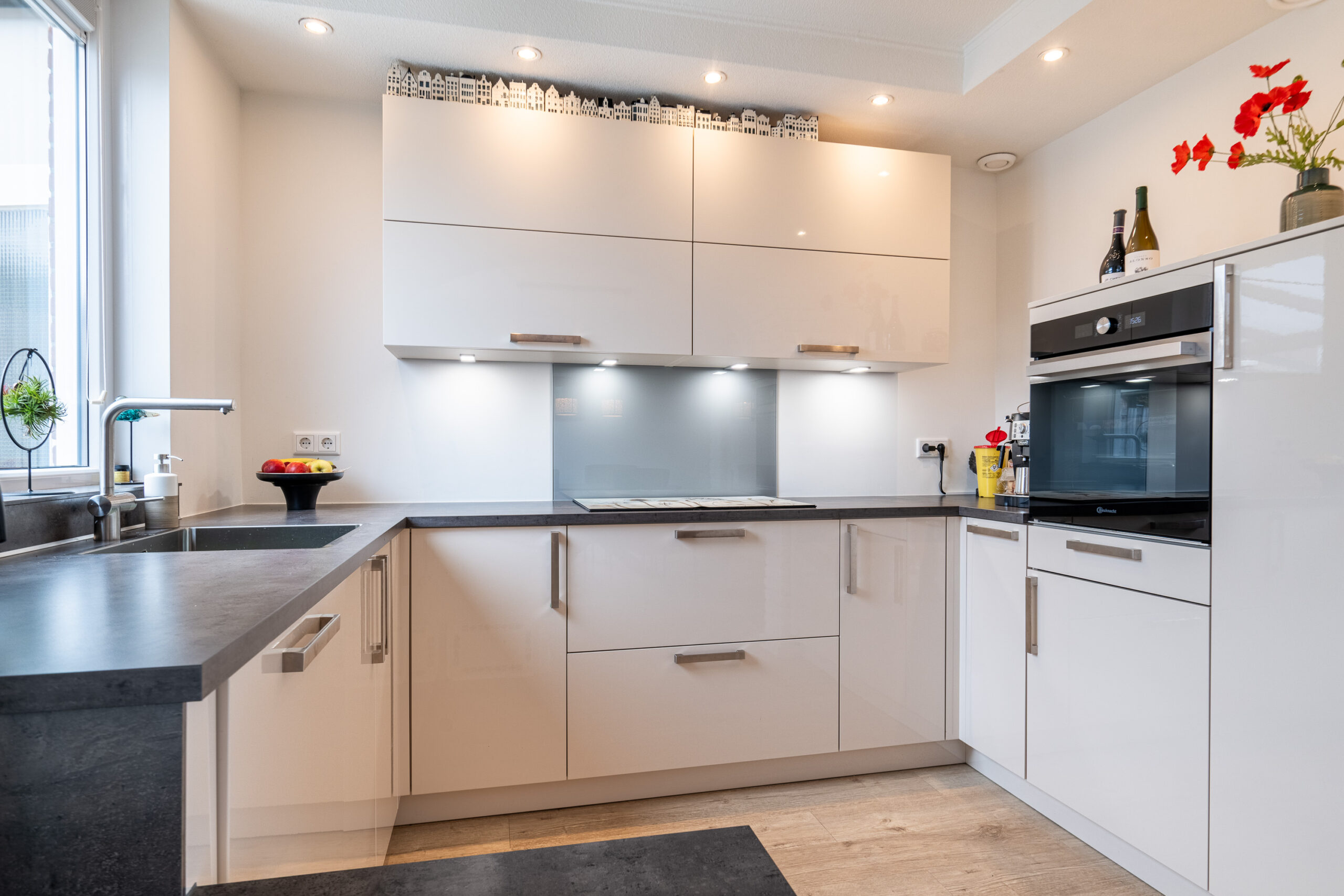 Hal/entree alwaar meterkast (vernieuwd). Betegeld toilet met vrijhangend toilet en fonteintje. Ruime woonkamer met veel lichtinval wat zorgt voor een prettige woonsfeer. bergkast onder de trap. Aansluitend de open keuken, welke in 2022 geheel is vernieuwd en voorzien van de navolgende apparatuur: inductiekookplaat Bora met geïntegreerde afzuiging, vaatwasser en koelkast. Vanuit de keuken is middels schuifpui de fraaie serre bereikbaar, welke is voorzien van tegelvloer en airconditioning voor zowel koelen als verwarmen.