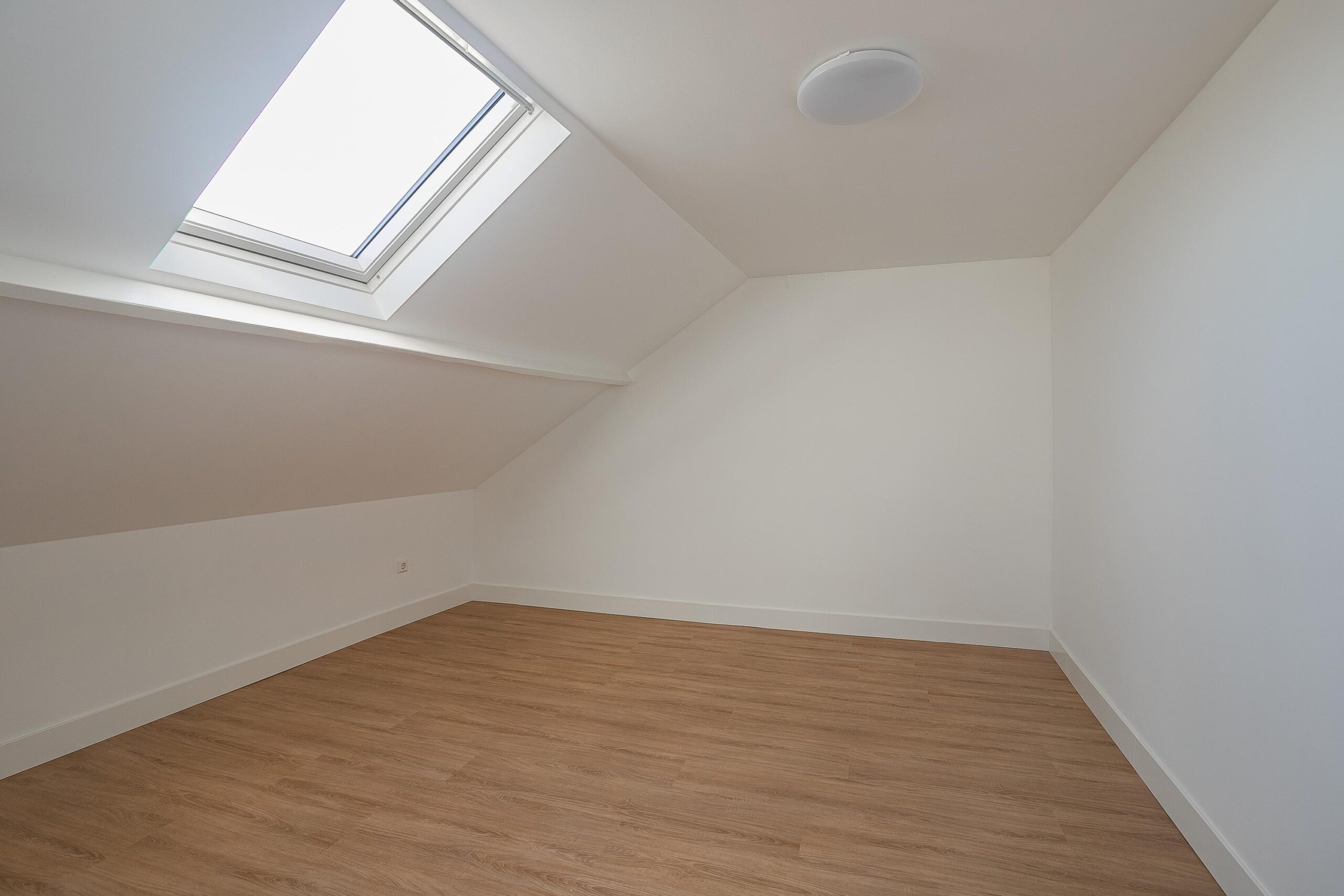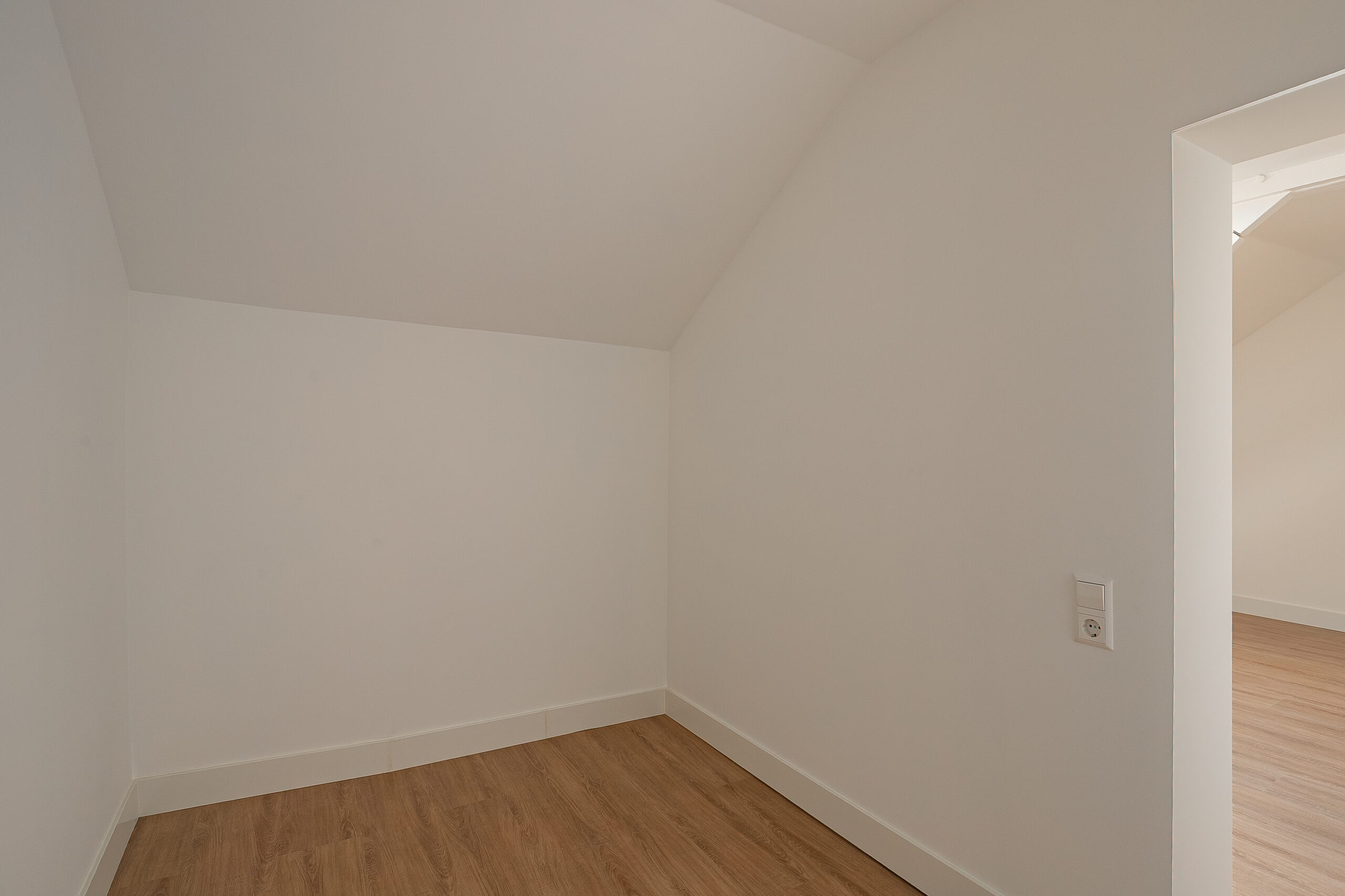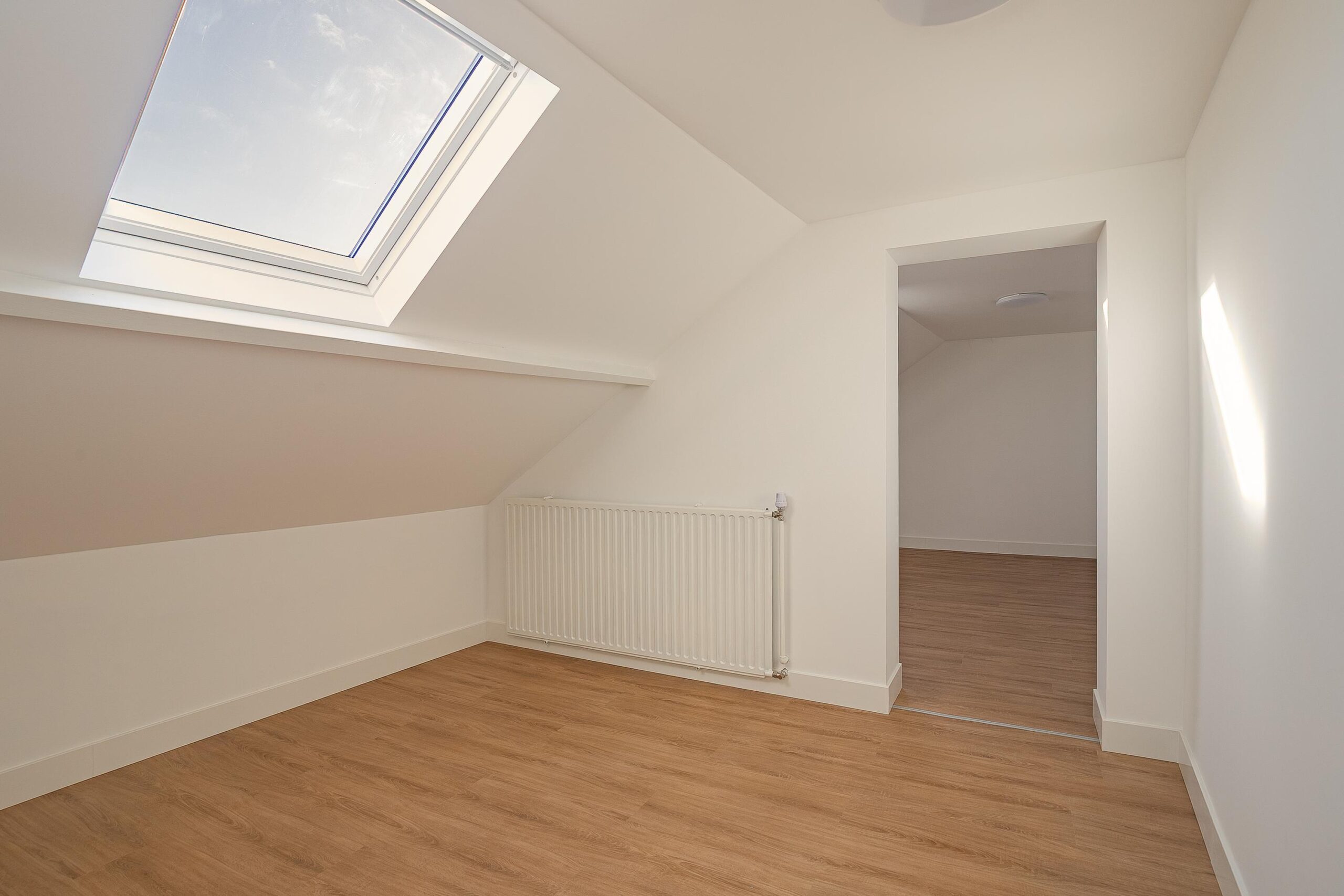 De tweede verdieping beschikt over drie slaapkamers. Alle slaapkamers zijn voorzien van laminaatvloeren, strak gestucte wanden en een Velux dakraam. De slaapkamer aan de voorzijde gelegen biedt directe toegang tot een walk in closet.