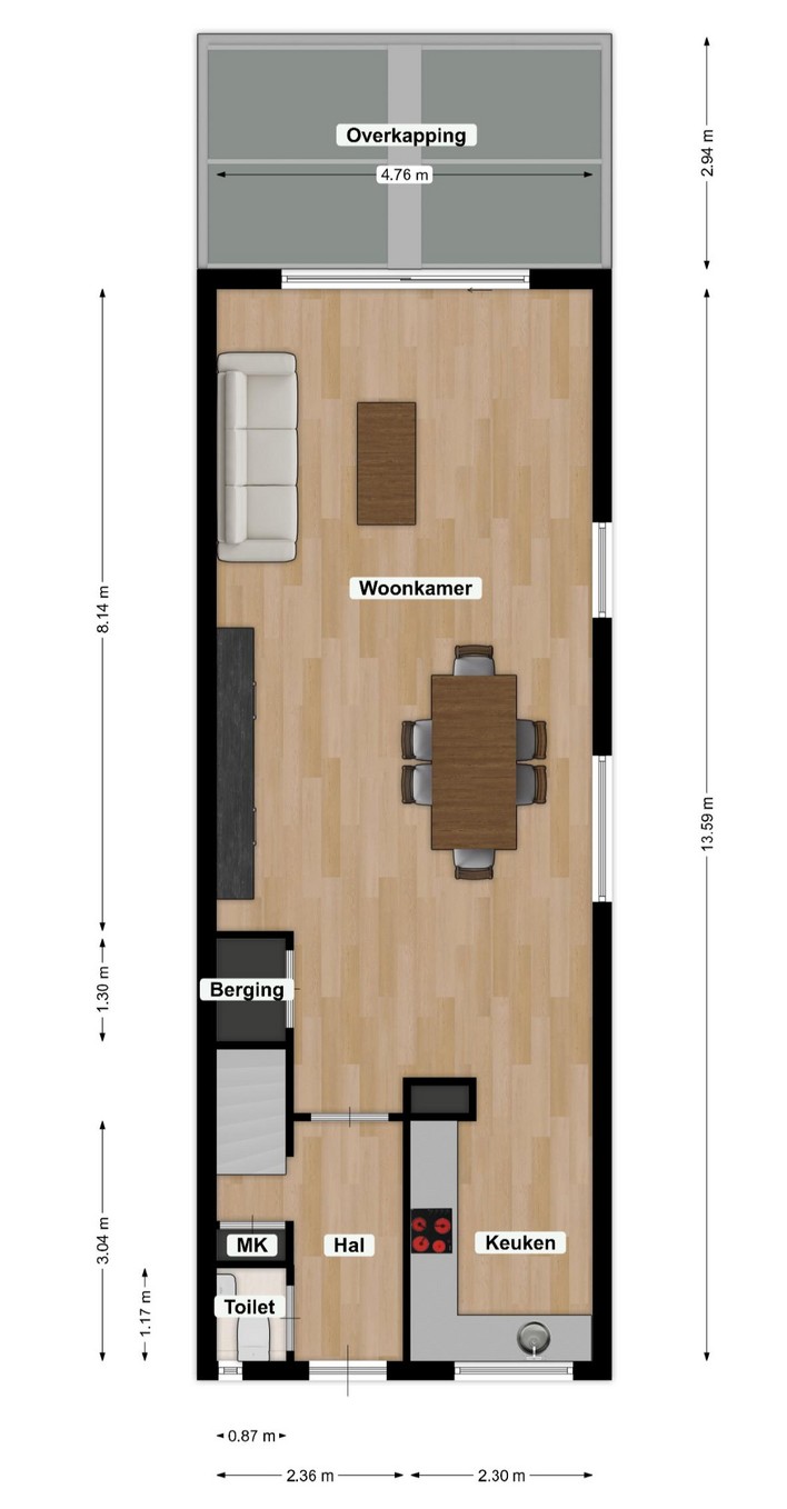 Alle afmetingen zijn indicatief en kunnen afwijken van de werkelijkheid. Aanvaarding in overleg.