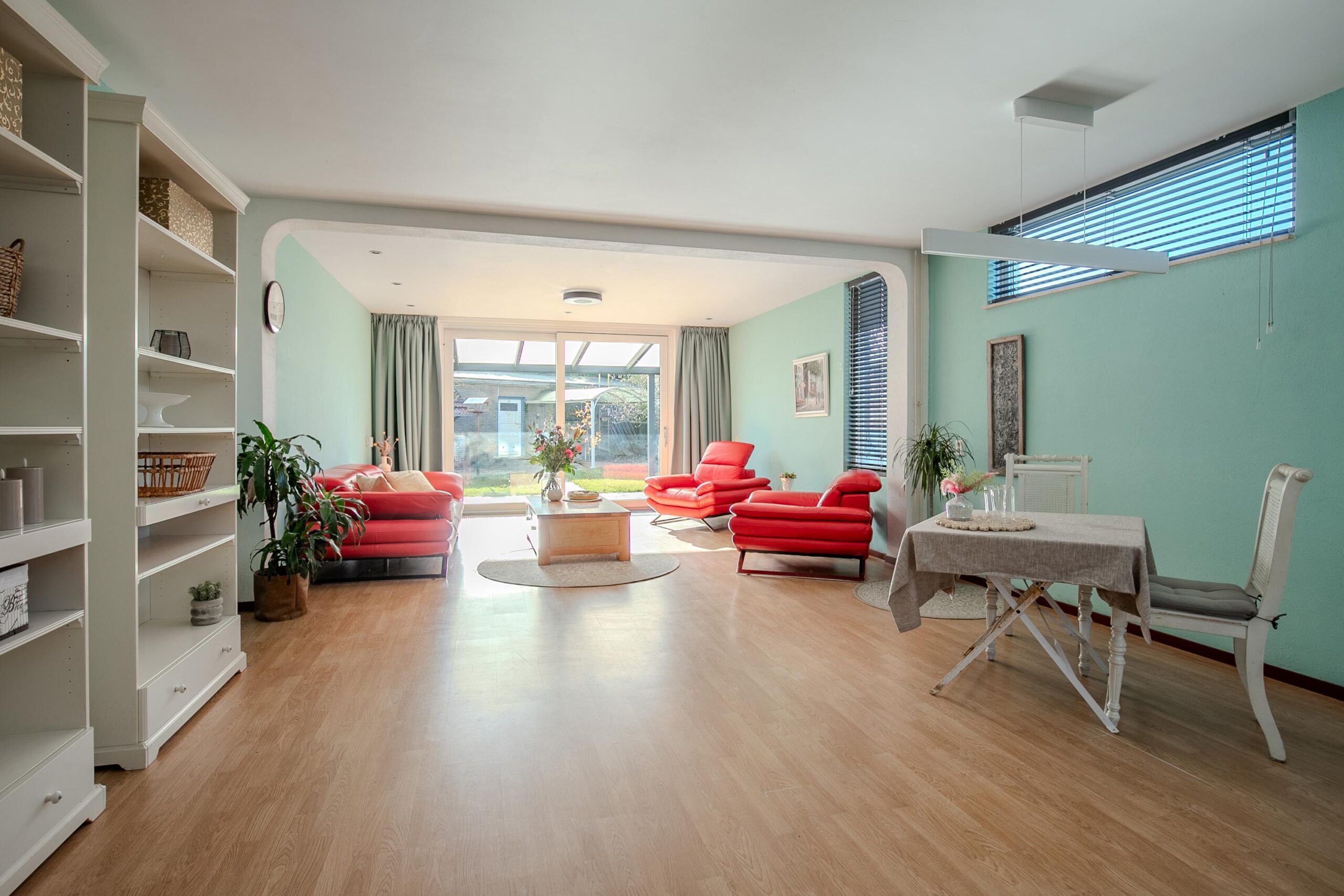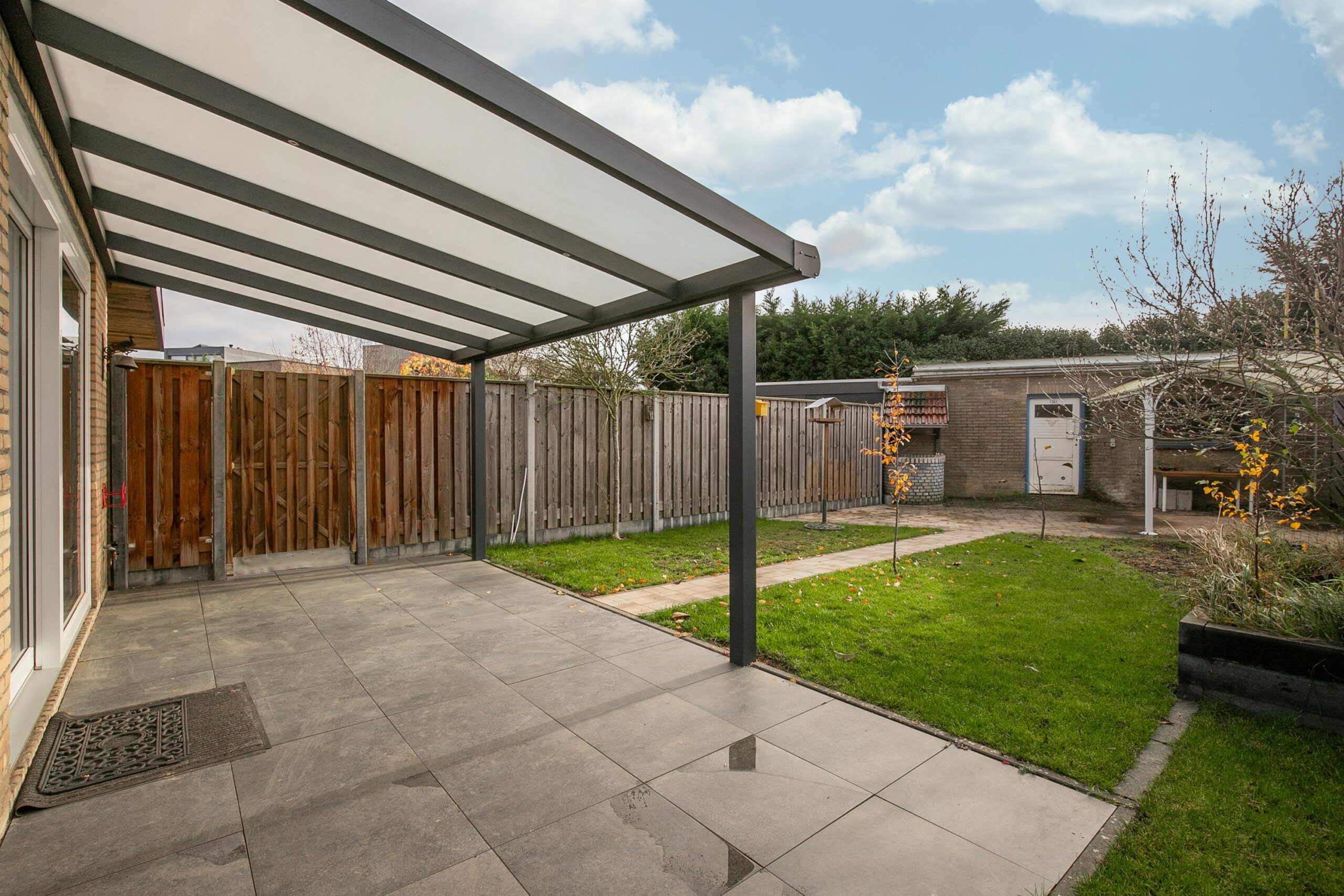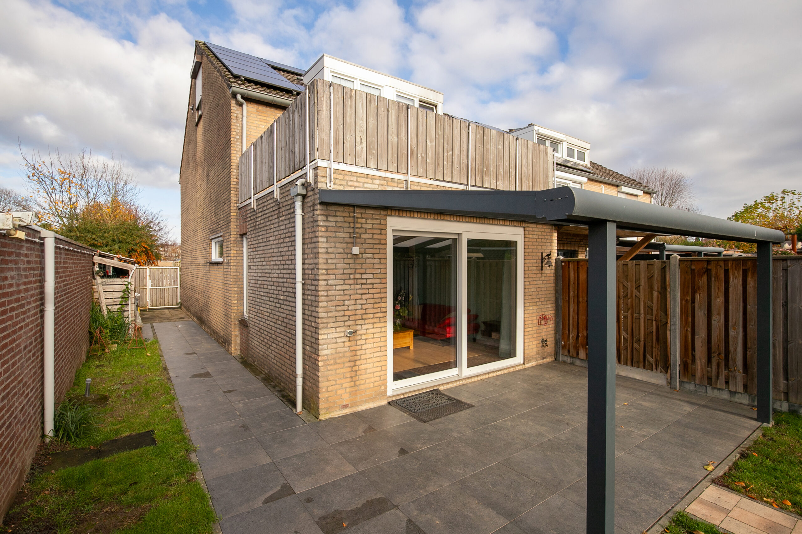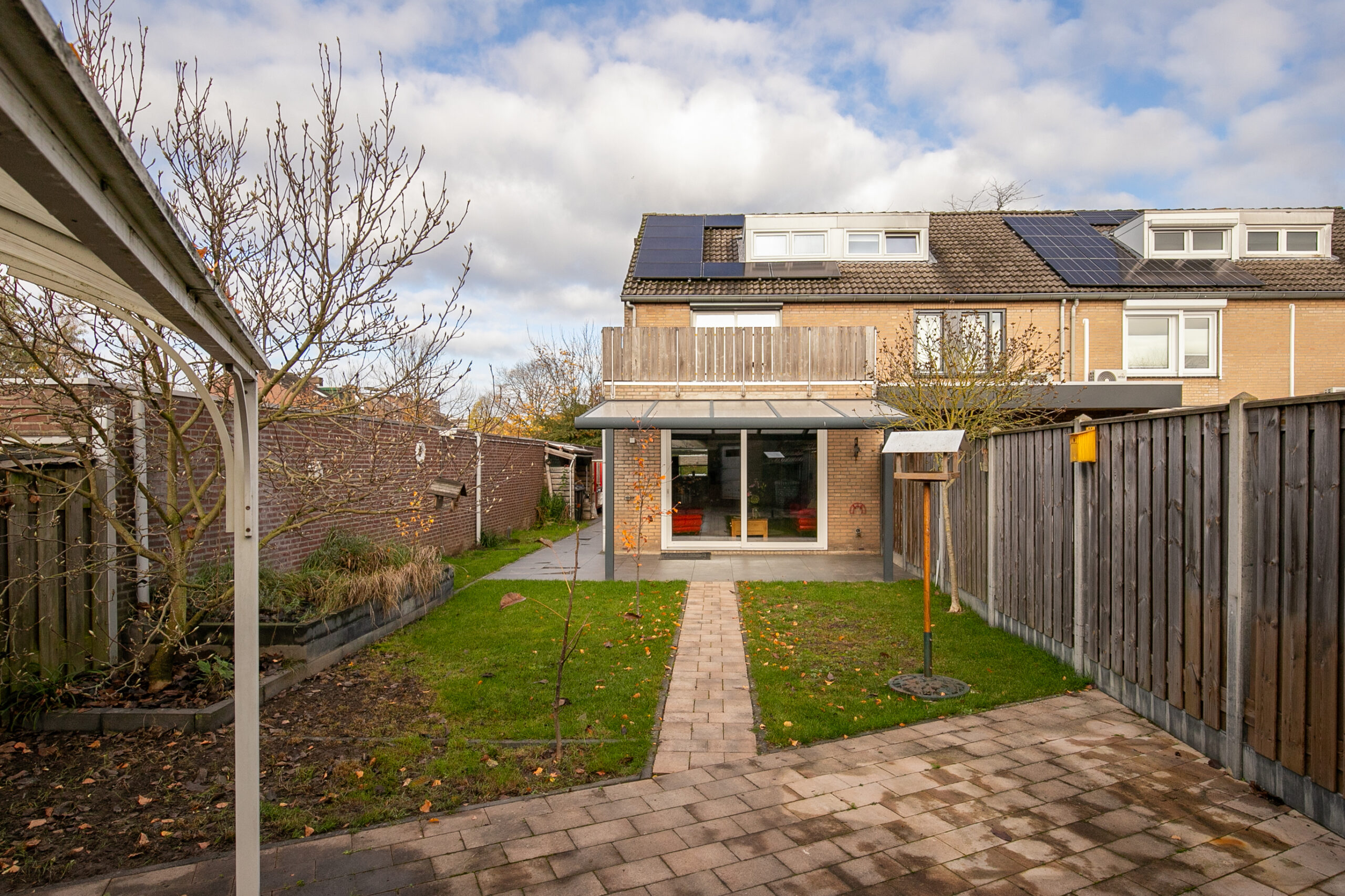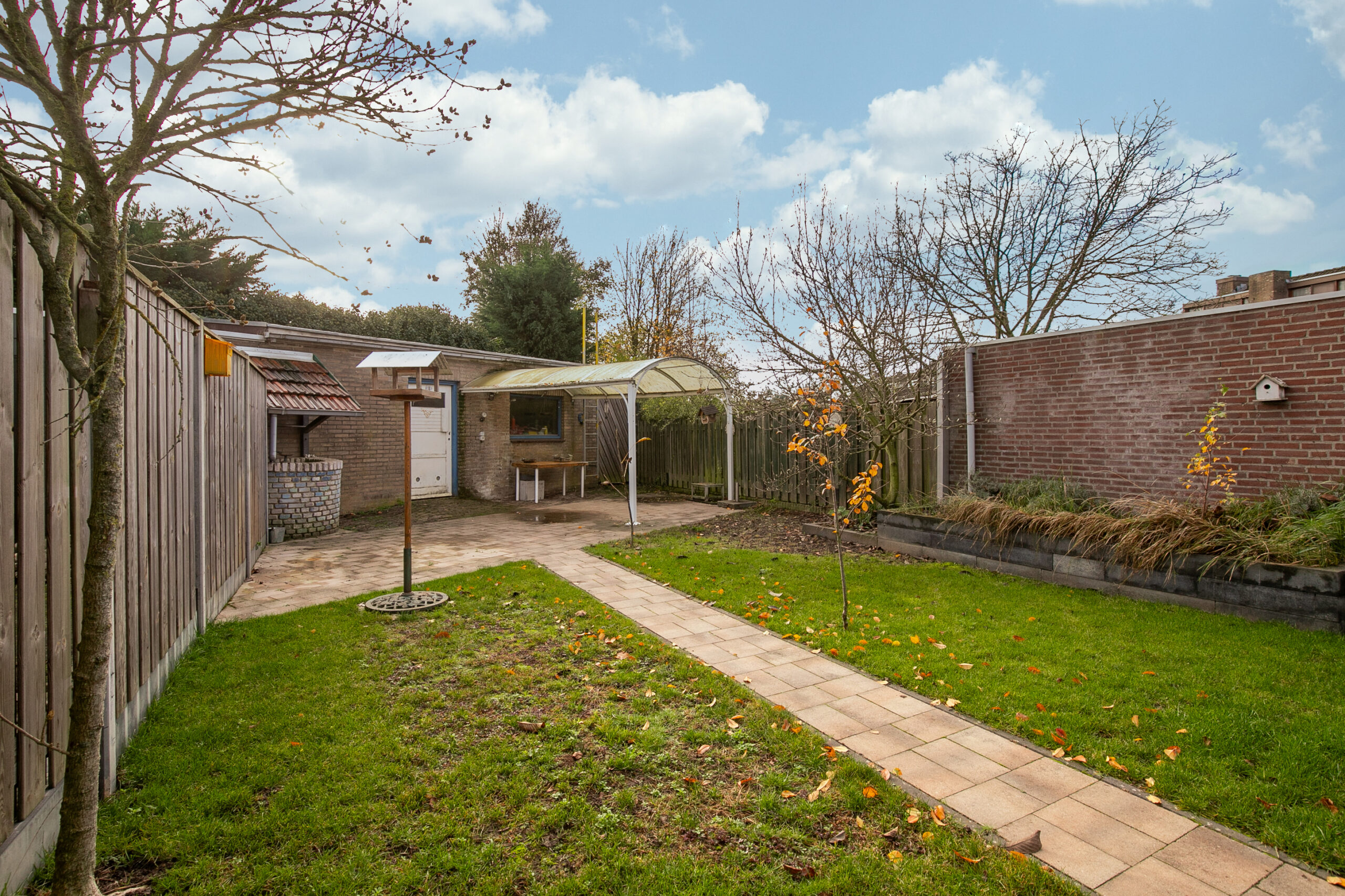 Vanuit de voortuin met carport bereikt u de entree van de woning en de zijingang richting de achtertuin. In de hal bevindt zich de trapopgang, toiletruimte, de vernieuwde meterkast en vanuit hier bereikt u de woonkamer. De woonkamer is ruim van opzet door de gerealiseerde aanbouw en geniet een goede mate van daglichttoetreding. De open keuken in L-opstelling bevindt zich aan de voorzijde van de woning. Vanuit de woonkamer kijkt u uit over de achtertuin met ruime overdekte zit. De achtertuin geniet een goede mate van privacy en is gesitueerd op het zuiden. De achtertuin is eveneens via de zijkant van de woning te bereiken. De stenen berging achterin de tuin is ca. 29m2 groot en voorzien van elektra. Naast de stenen berging bevindt zich een tweede bergruimte welke ca 7m2 groot is.