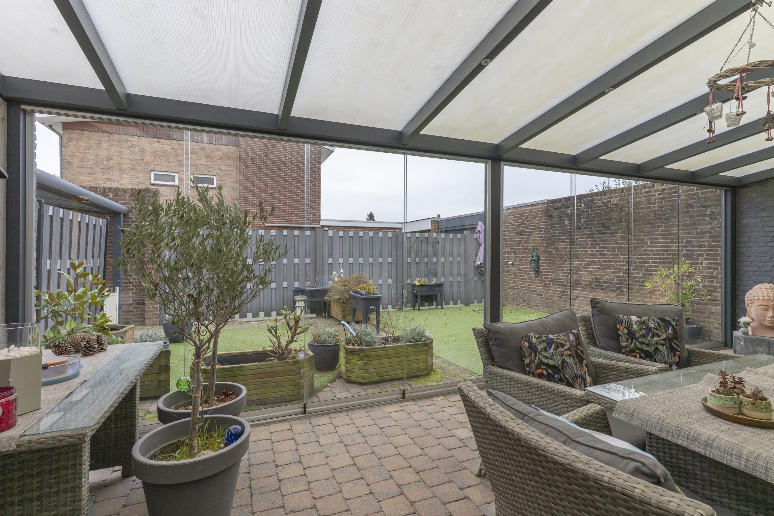 -De woning is volledig voorzien van kunststof kozijnen met dubbel glas;