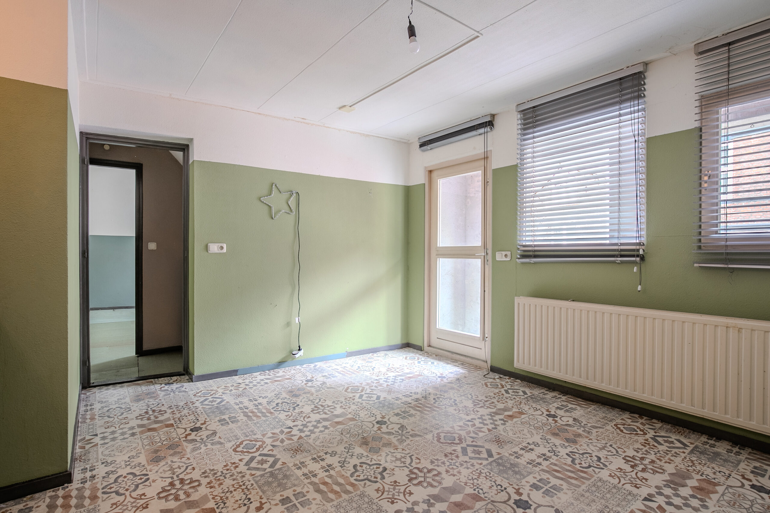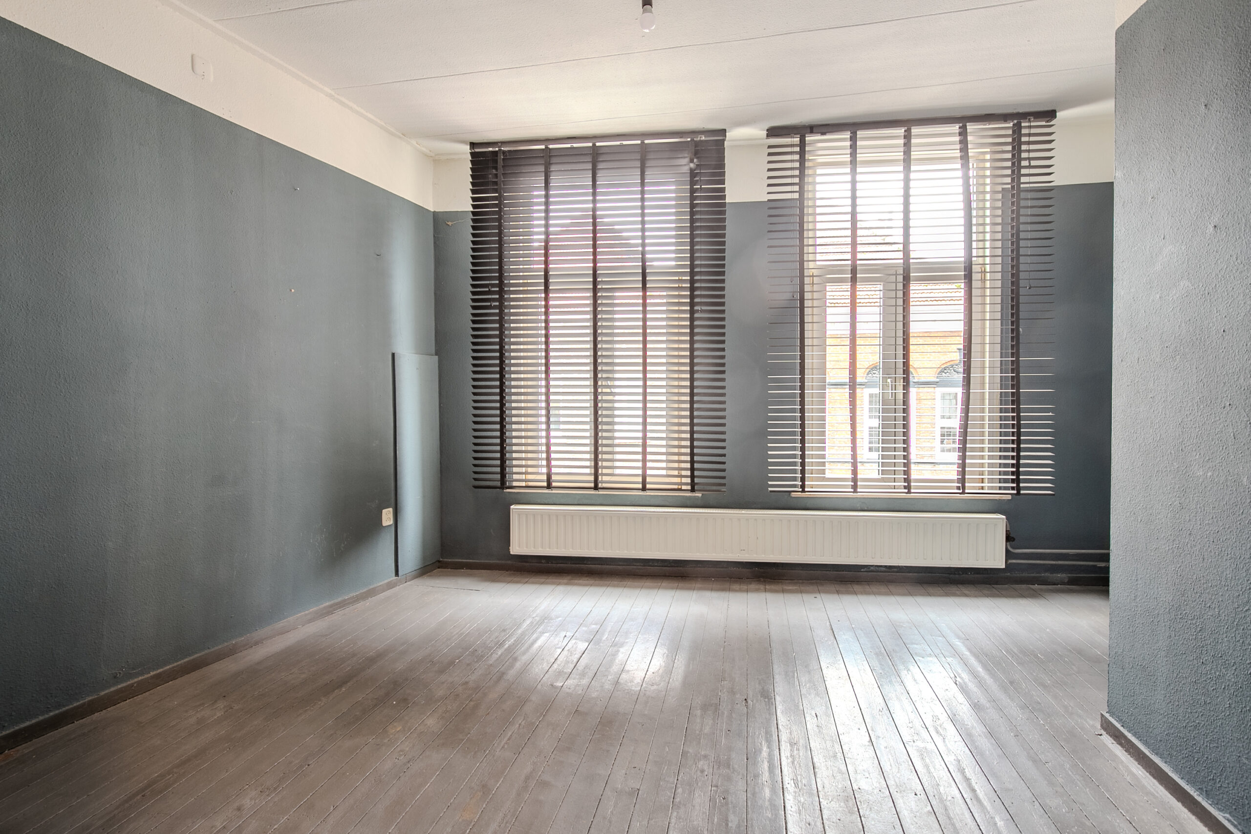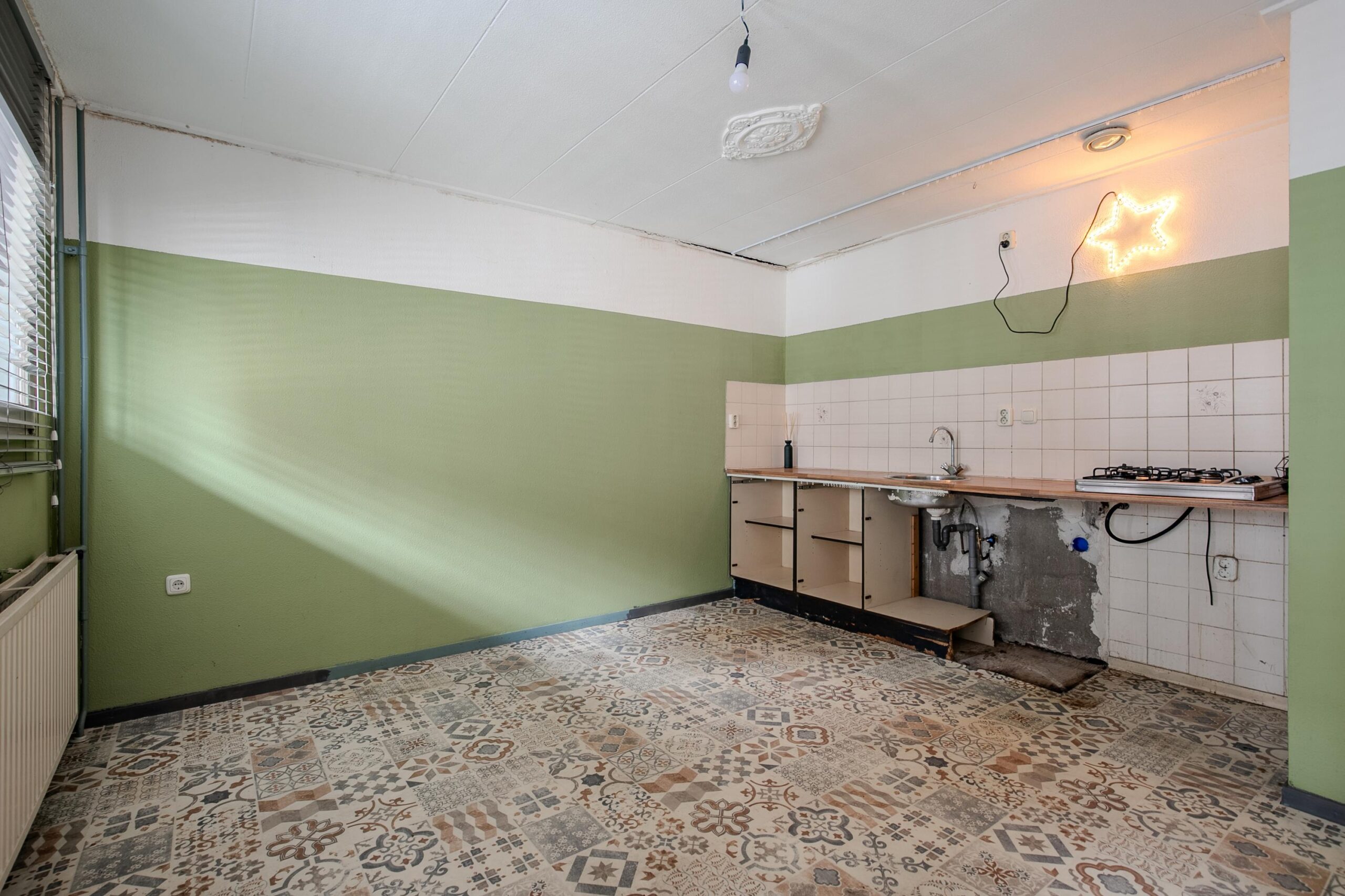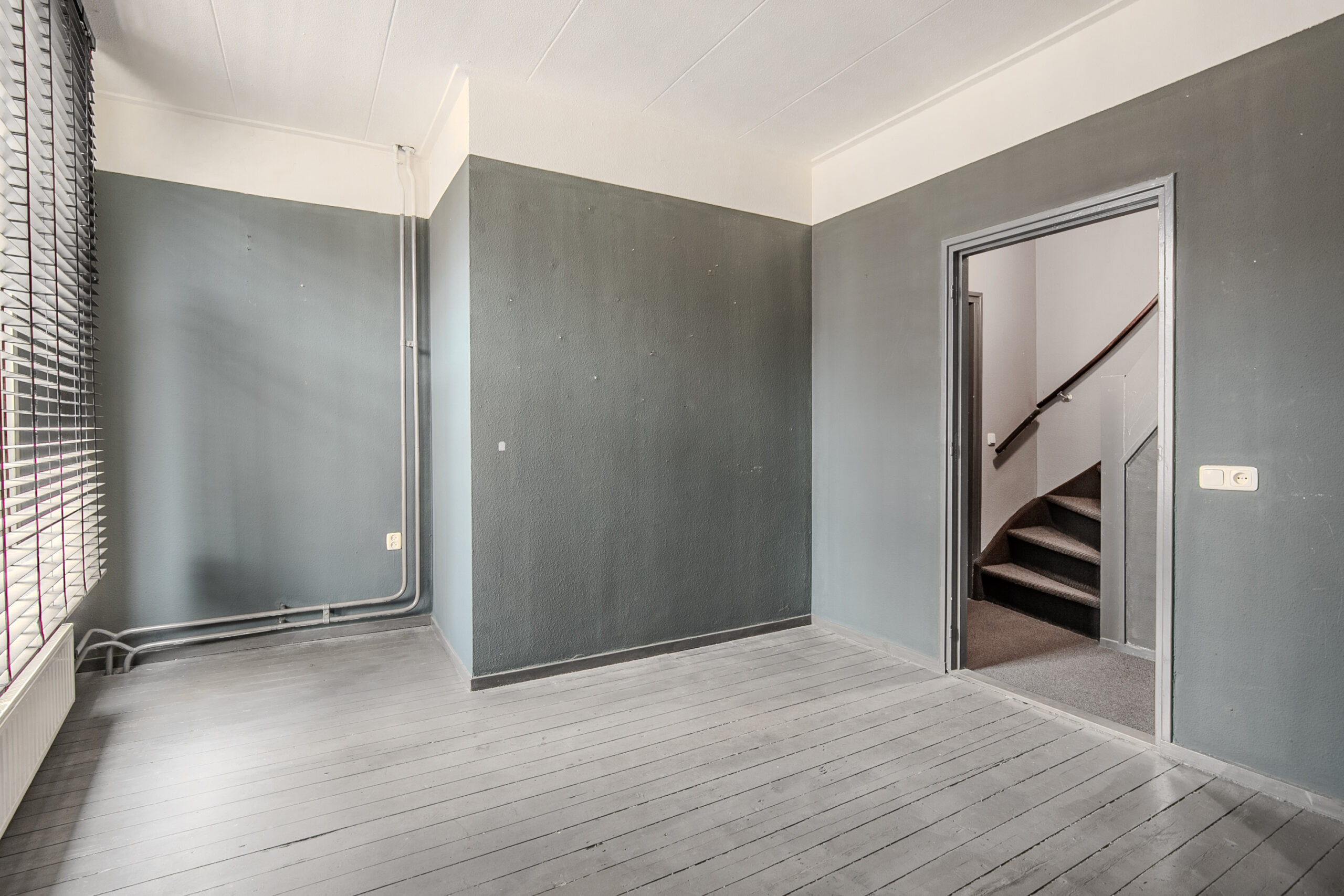 Via de trap in de entree bereiken we de eerste verdieping. Hier vind je de woonkamer en een aparte dichte keuken. De keuken vraagt nog om realisatie, wat jou de kans geeft om precies jouw stijl en indeling te kiezen om deze ruimte naar eigen wens en behoefte aan te passen. Of je nu droomt van een moderne leefkeuken of juist een functionele kookruimte, hier heb je alle vrijheid om jouw ideale keuken te realiseren.