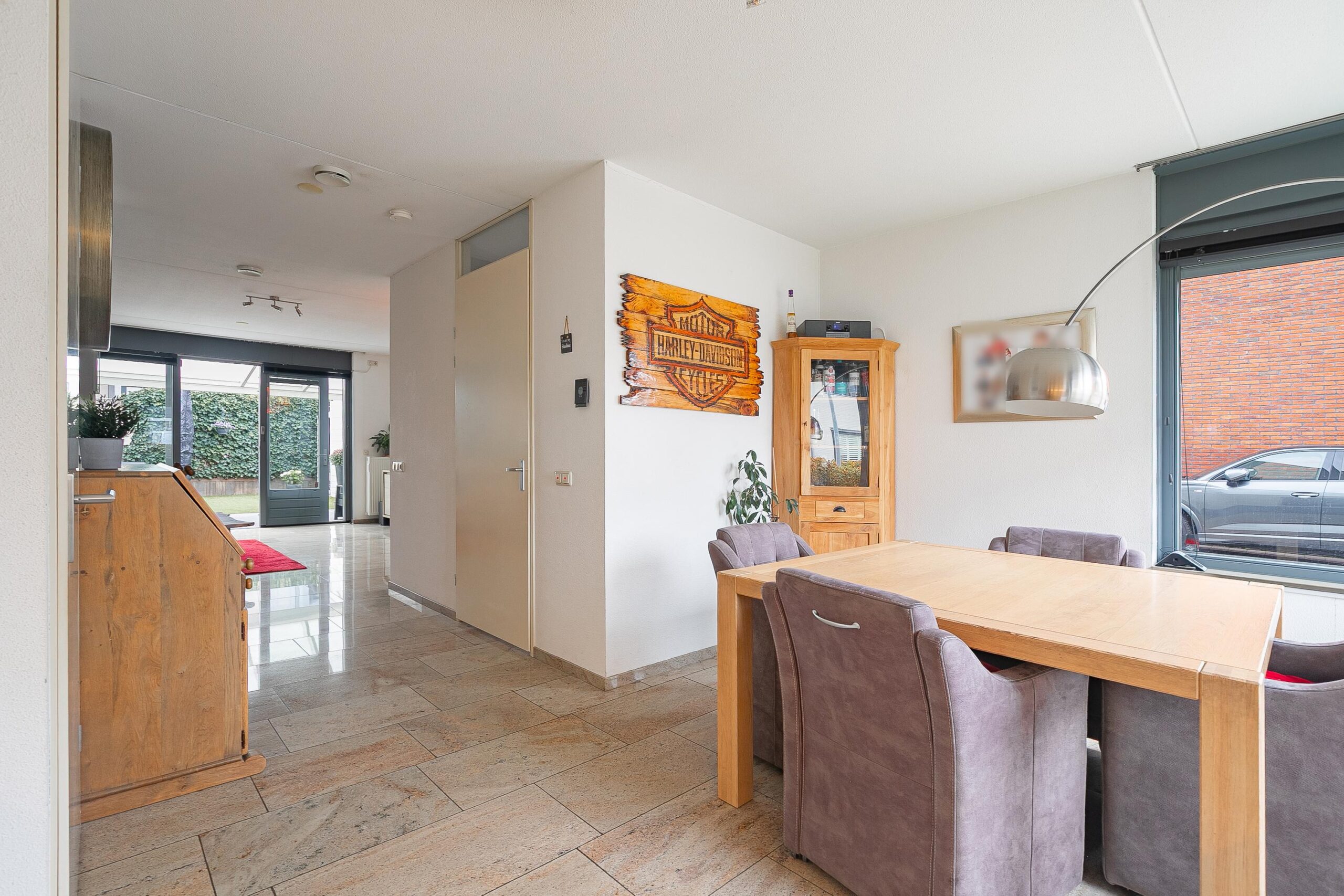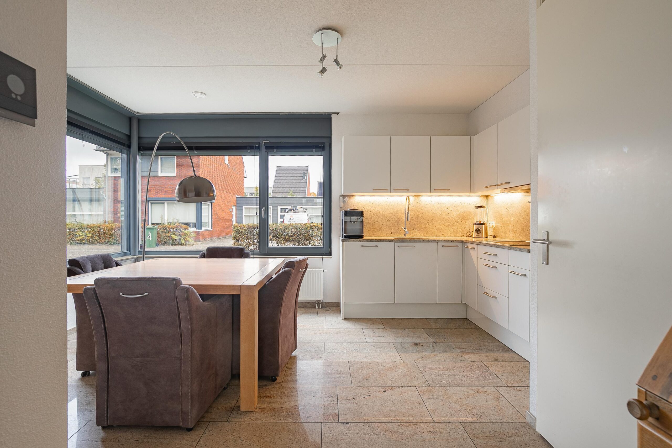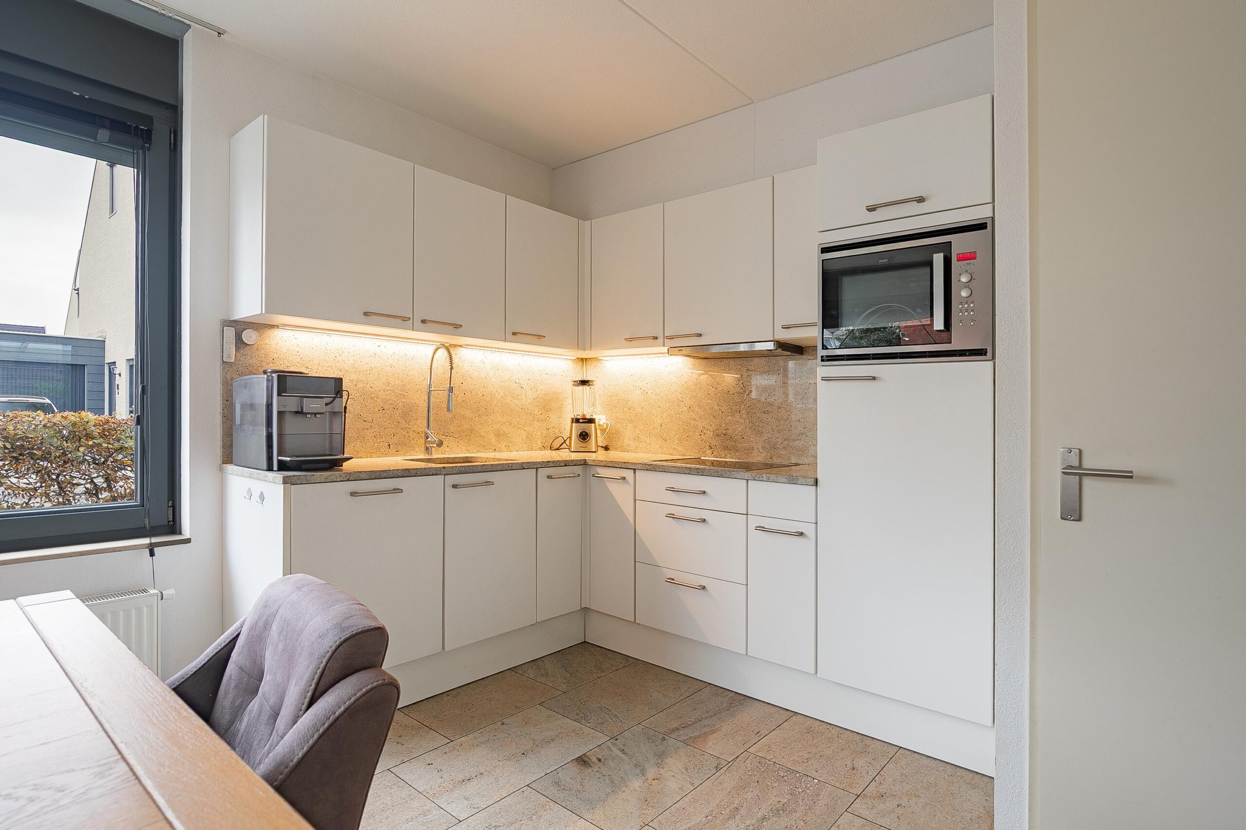 Via de ruime oprit bereikt men de entree van de woning. De hal biedt toegang tot de meterkast, het toilet en de leefruimte. De toiletruimte is volledig betegeld en voorzien van een wandcloset en een fonteintje. De uitgebouwde woonkamer (ca. 27m²) is royaal van opzet en staat in open verbinding met de keuken. De begane grond is voorzien van een tegelvloer en vloerverwarming. Dankzij de grote raampartijen geniet deze ruimte veel daglicht. De open keuken (ca. 17m²) in hoekopstelling beschikt over diverse inbouwapparatuur, waaronder een 4-pits inductiekookplaat, combi-oven, spoelbak, koelkast, vaatwasser en afzuigkap. Aan de achterzijde van de woning geeft de woonkamer toegang tot de tuin.