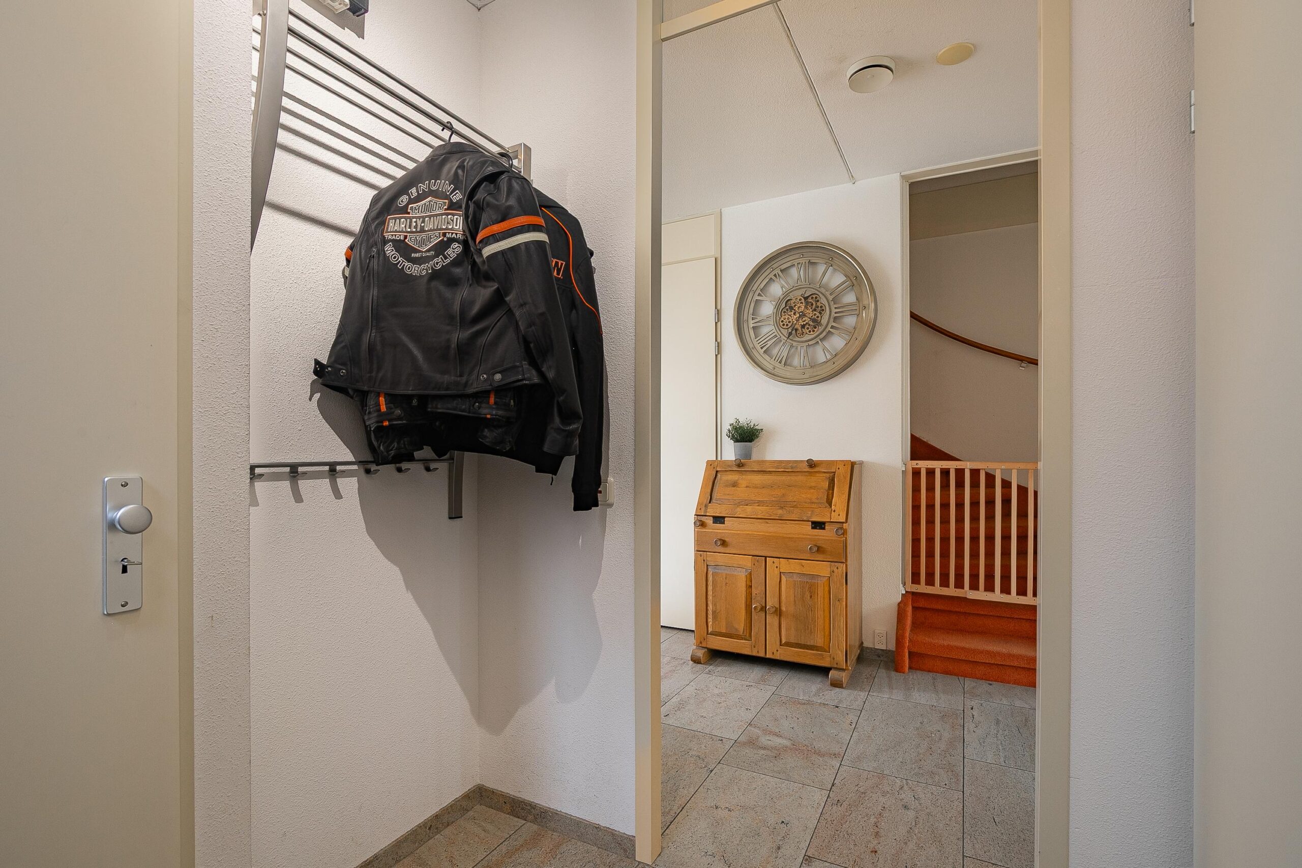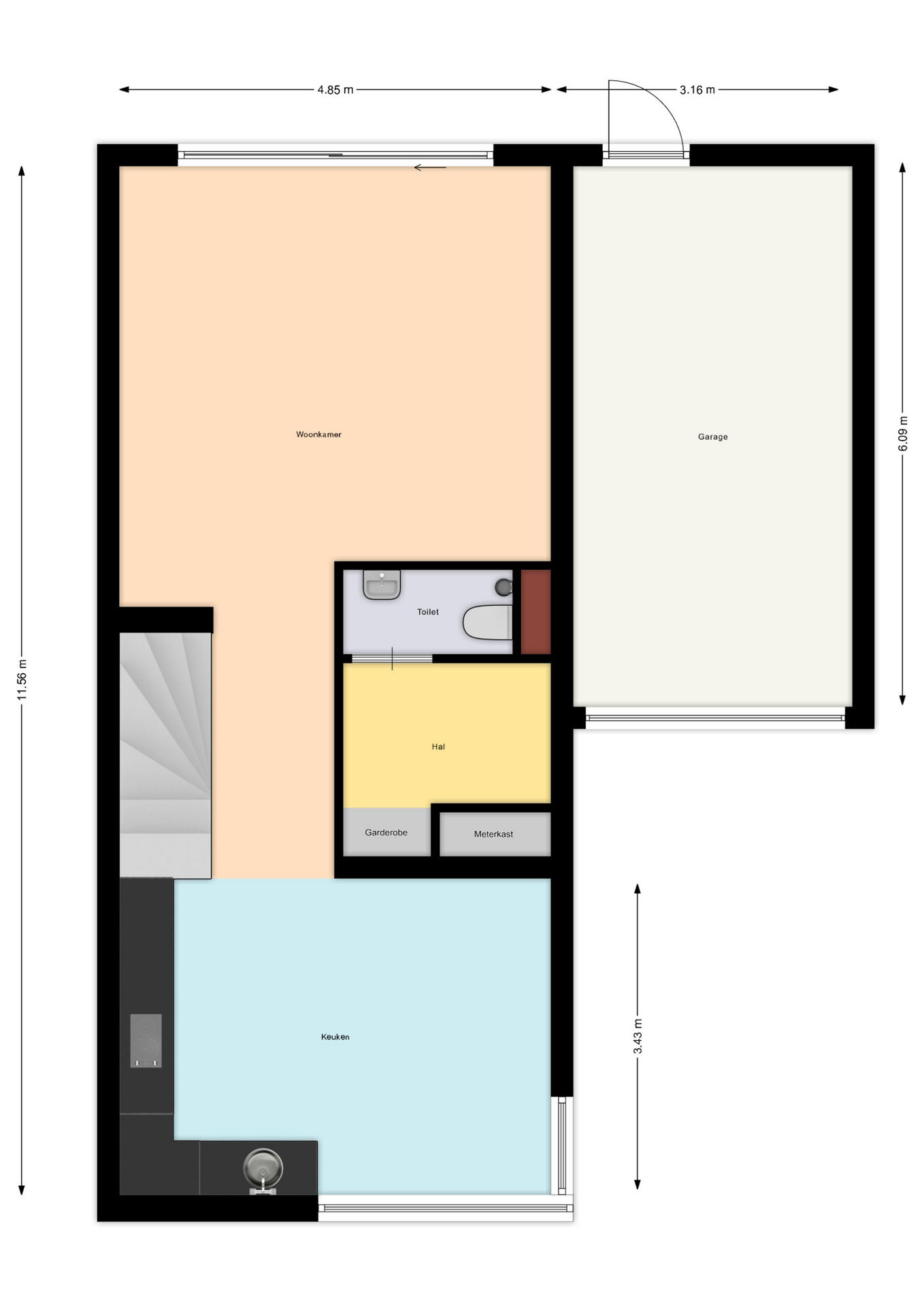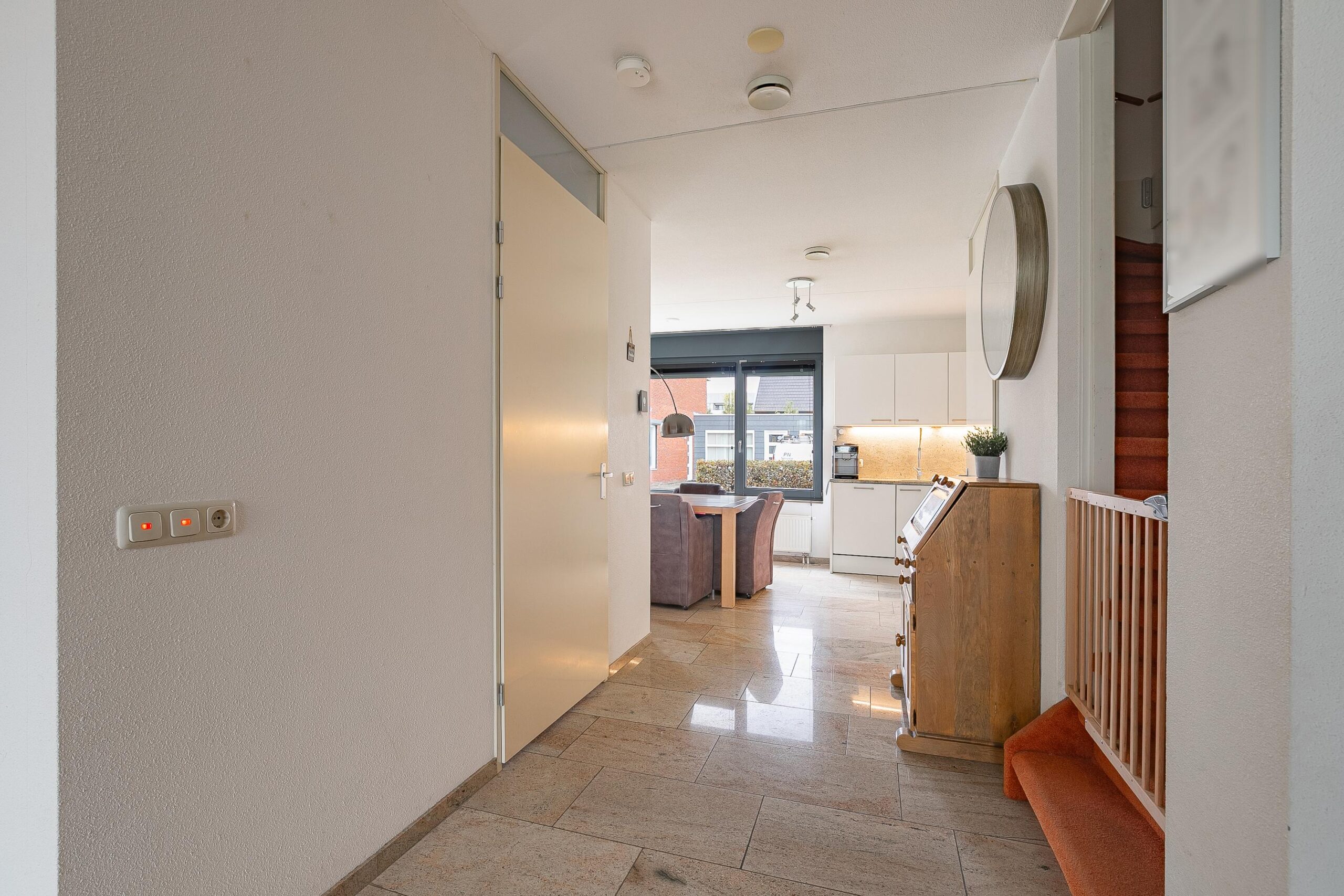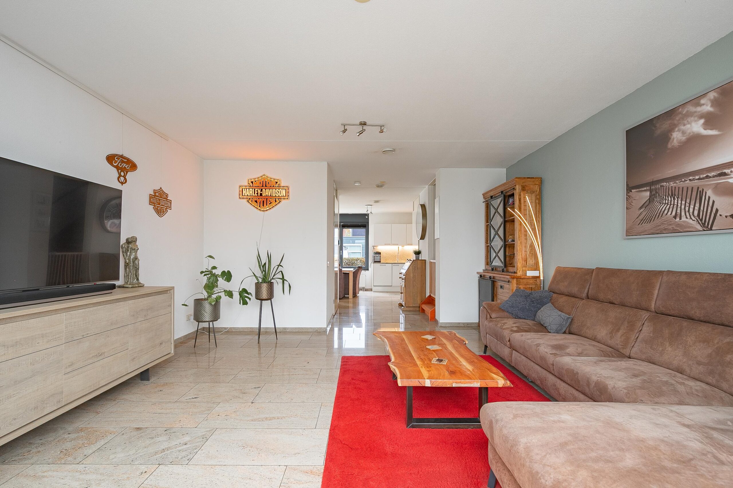 Via de ruime oprit bereikt men de entree van de woning. De hal biedt toegang tot de meterkast, het toilet en de leefruimte. De toiletruimte is volledig betegeld en voorzien van een wandcloset en een fonteintje. De uitgebouwde woonkamer (ca. 27m²) is royaal van opzet en staat in open verbinding met de keuken. De begane grond is voorzien van een tegelvloer en vloerverwarming. Dankzij de grote raampartijen geniet deze ruimte veel daglicht. De open keuken (ca. 17m²) in hoekopstelling beschikt over diverse inbouwapparatuur, waaronder een 4-pits inductiekookplaat, combi-oven, spoelbak, koelkast, vaatwasser en afzuigkap. Aan de achterzijde van de woning geeft de woonkamer toegang tot de tuin.
