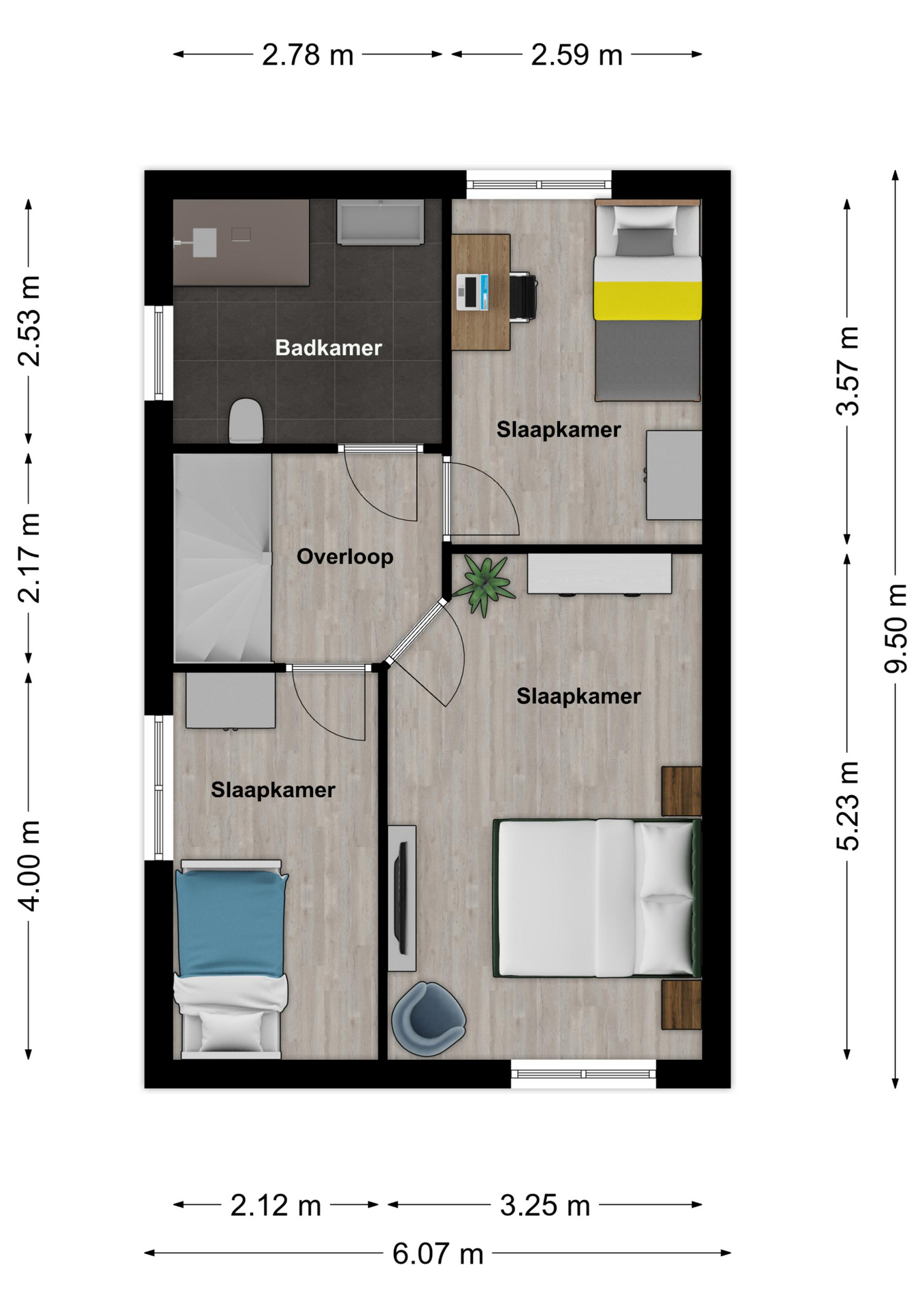 3 Slaapkamers allen voorzien van laminaatvloer.