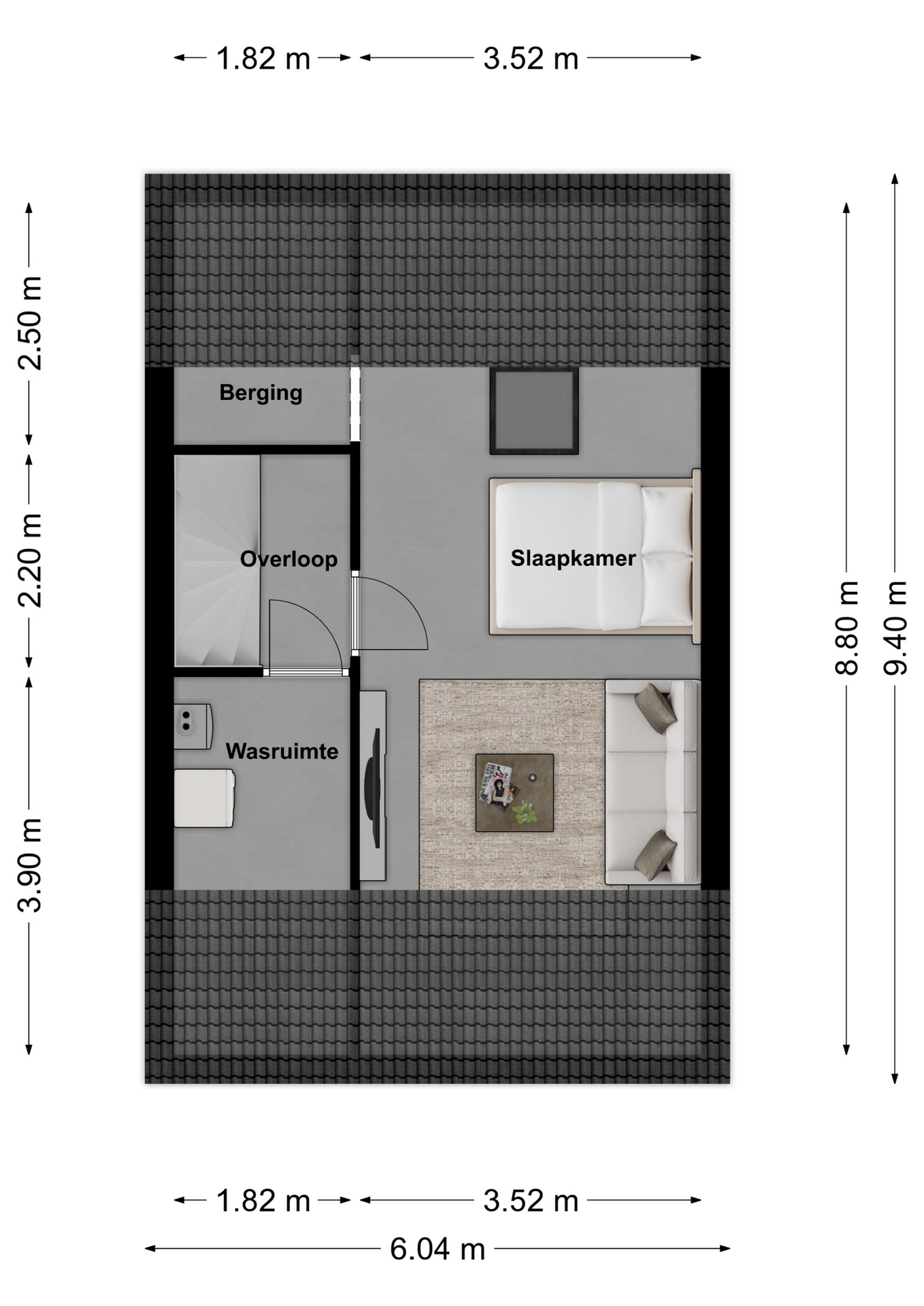 Ruime 4e slaap,- hobbykamer met Velux dakraam.